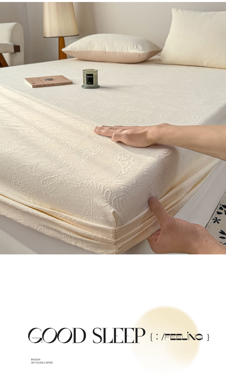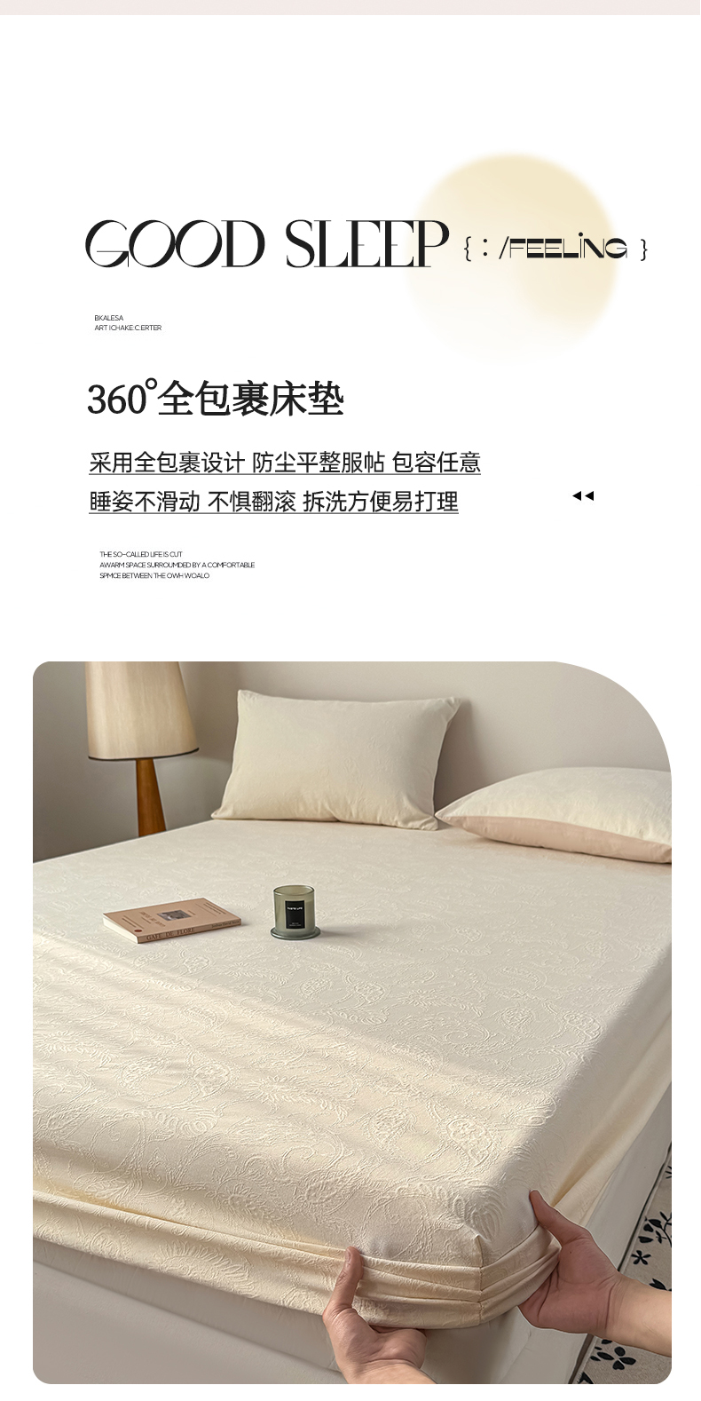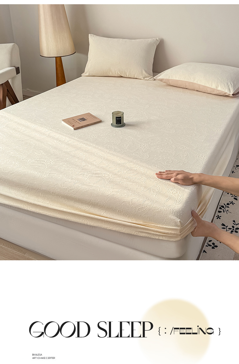 • 91家纺网 家纺一手货源 找家纺 灰鲸 2026新款全棉纯棉厚织三层水洗色织提花床笠单品床笠床笠单件 罗格西亚-杏仁奶霜