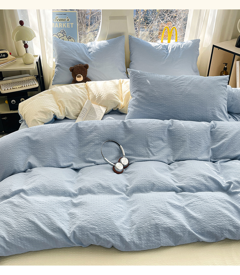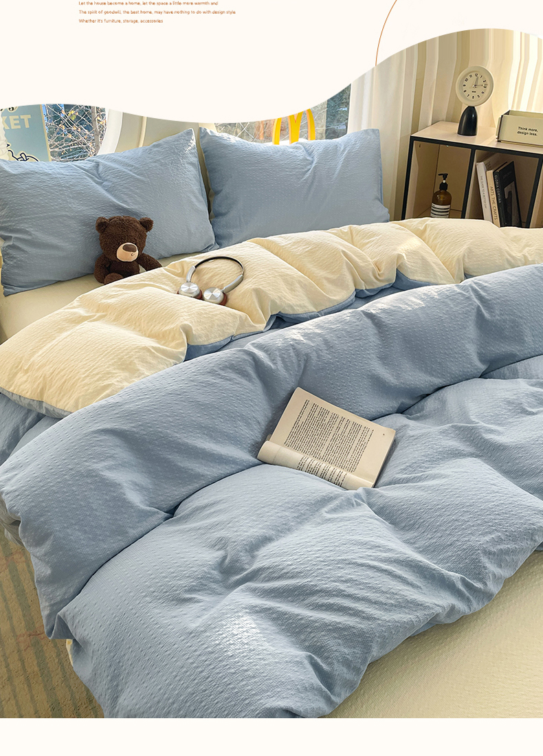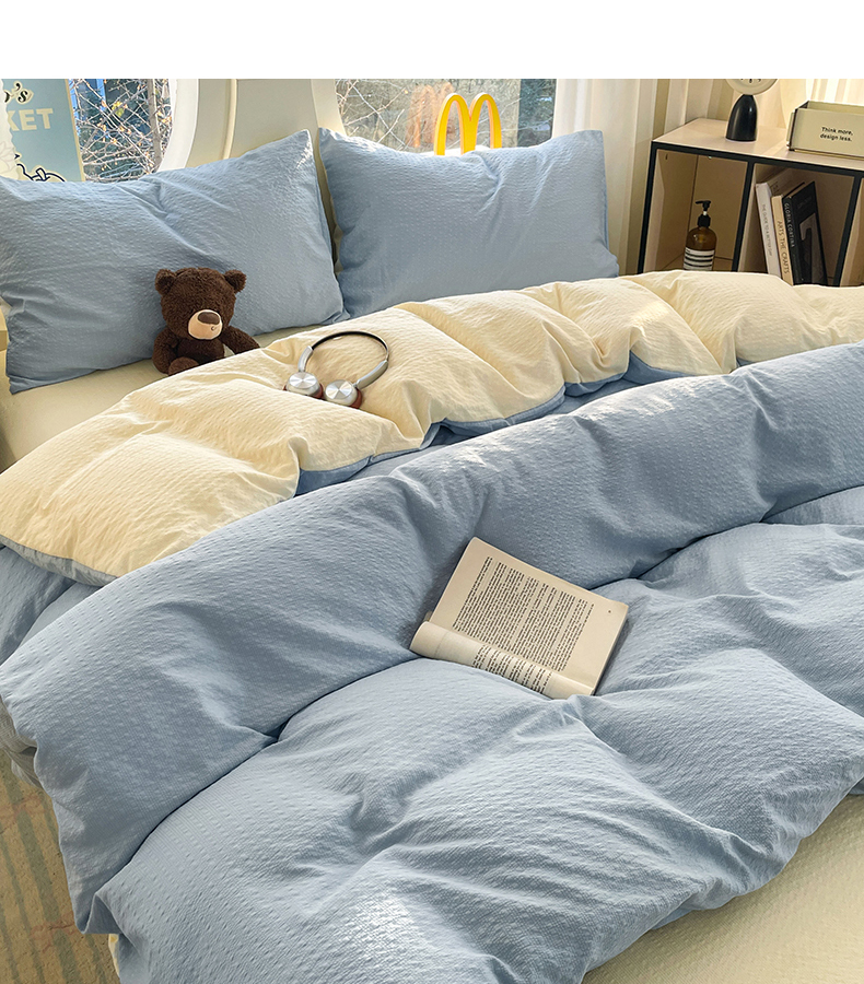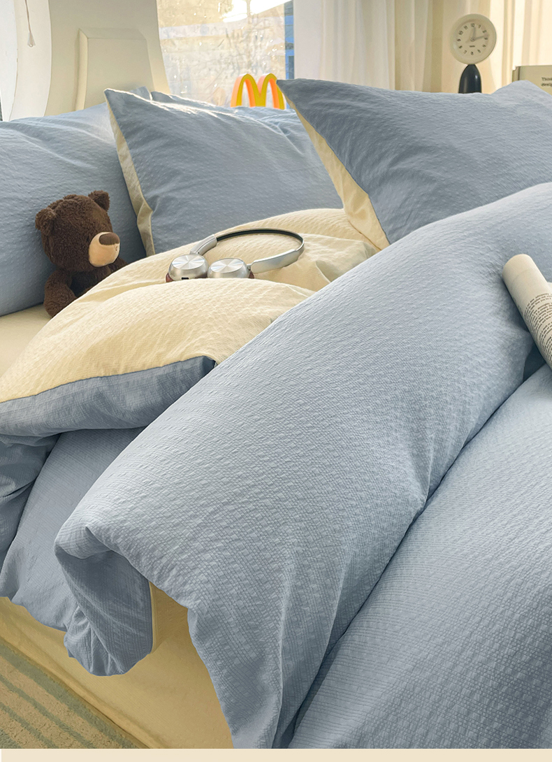 当前位置: 91家纺网 > 商品网购 > 床品套件 > 四件套 > 双层纱四件套 > 优承佳生活馆 2026新款软糯双拼泡芙纱四件套 天空蓝+奶油黄