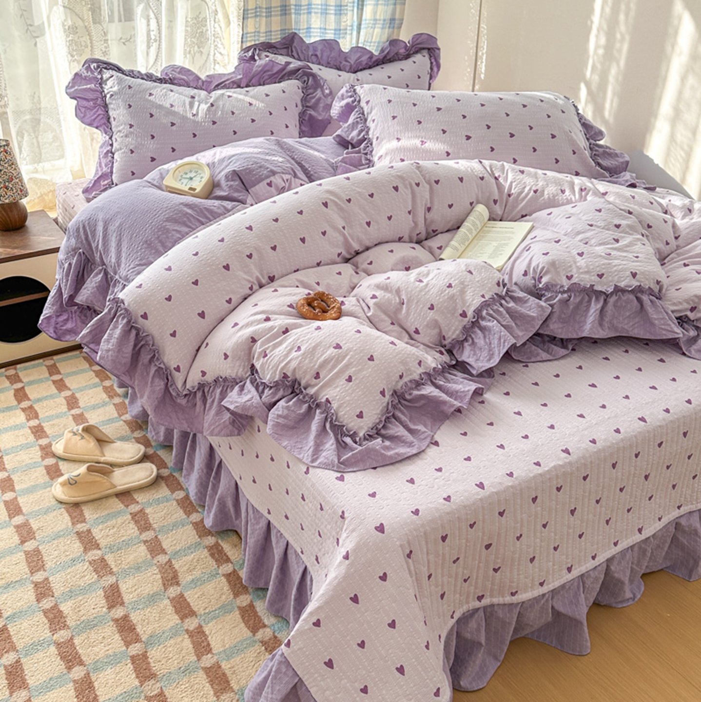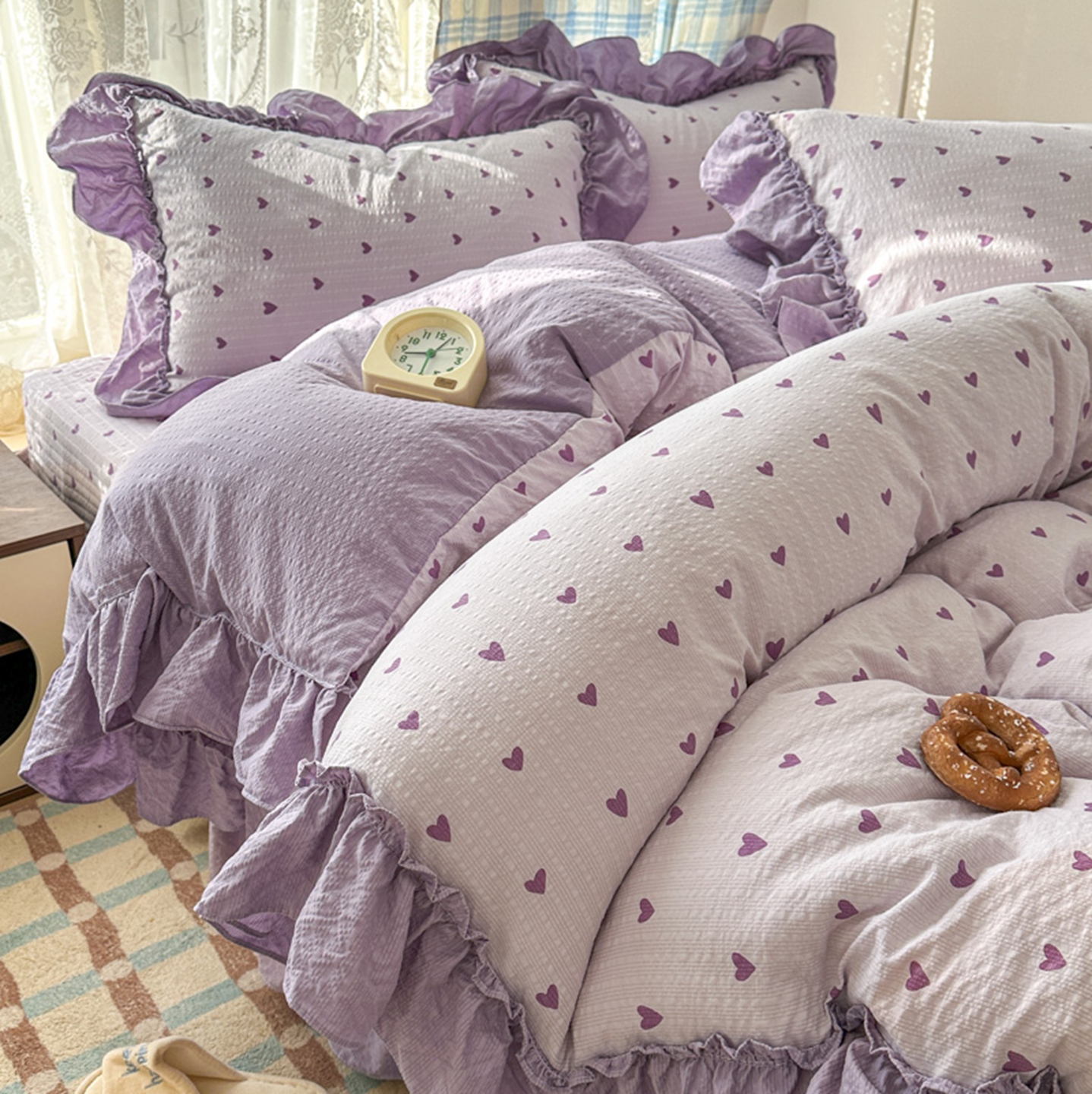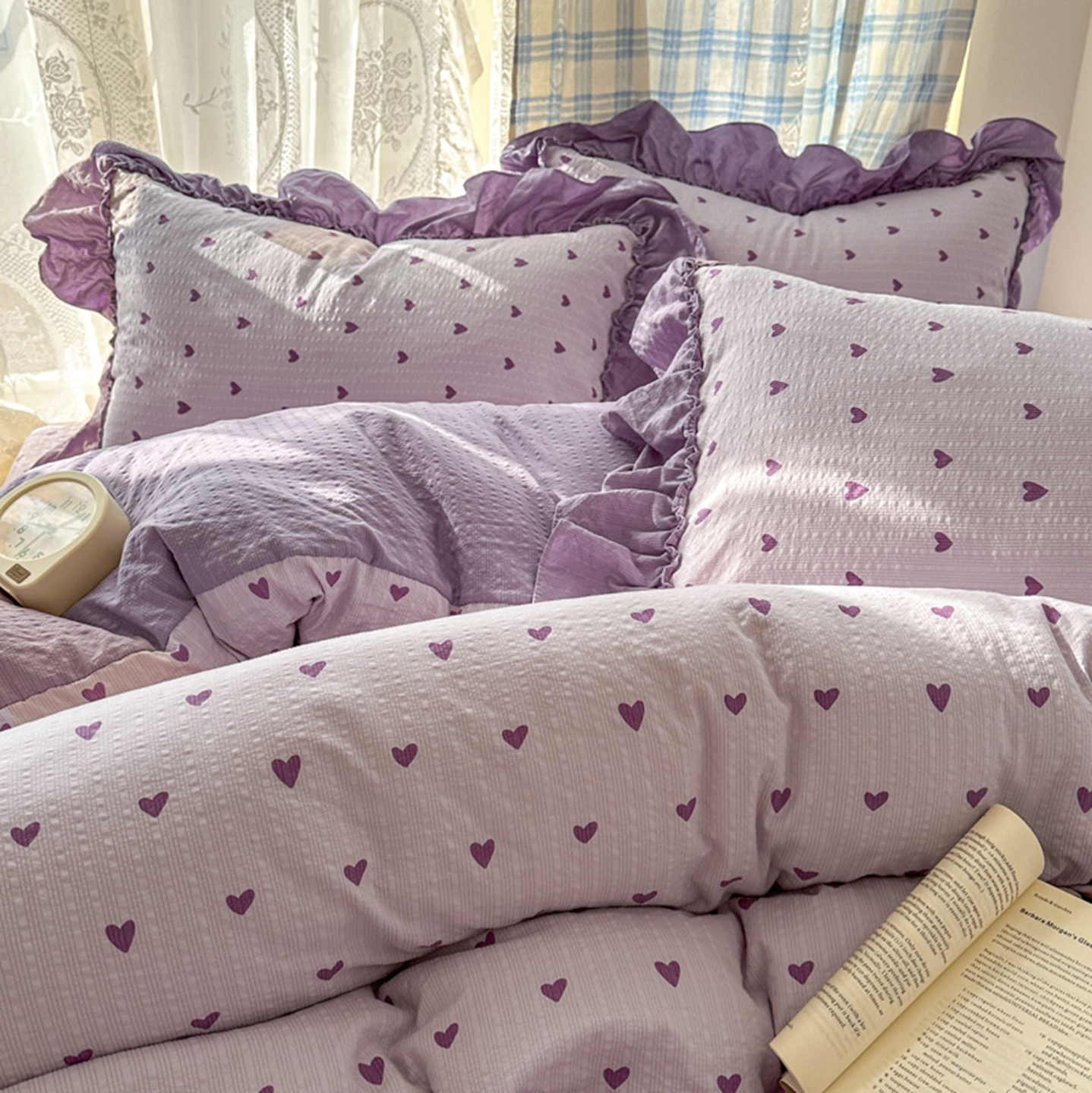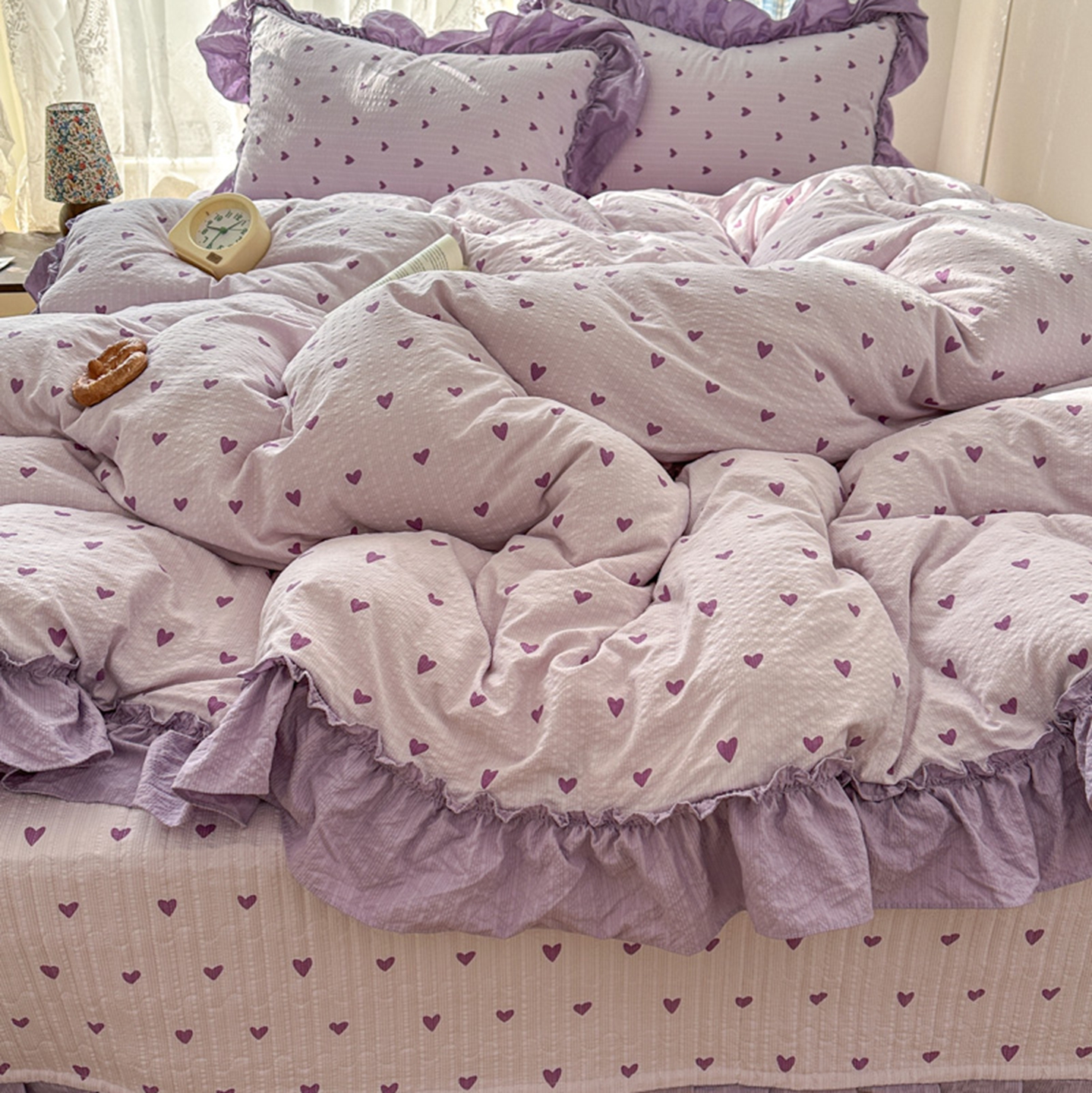 商品名称:欧尚 2026新款花边床盖四件套 紫爱心
