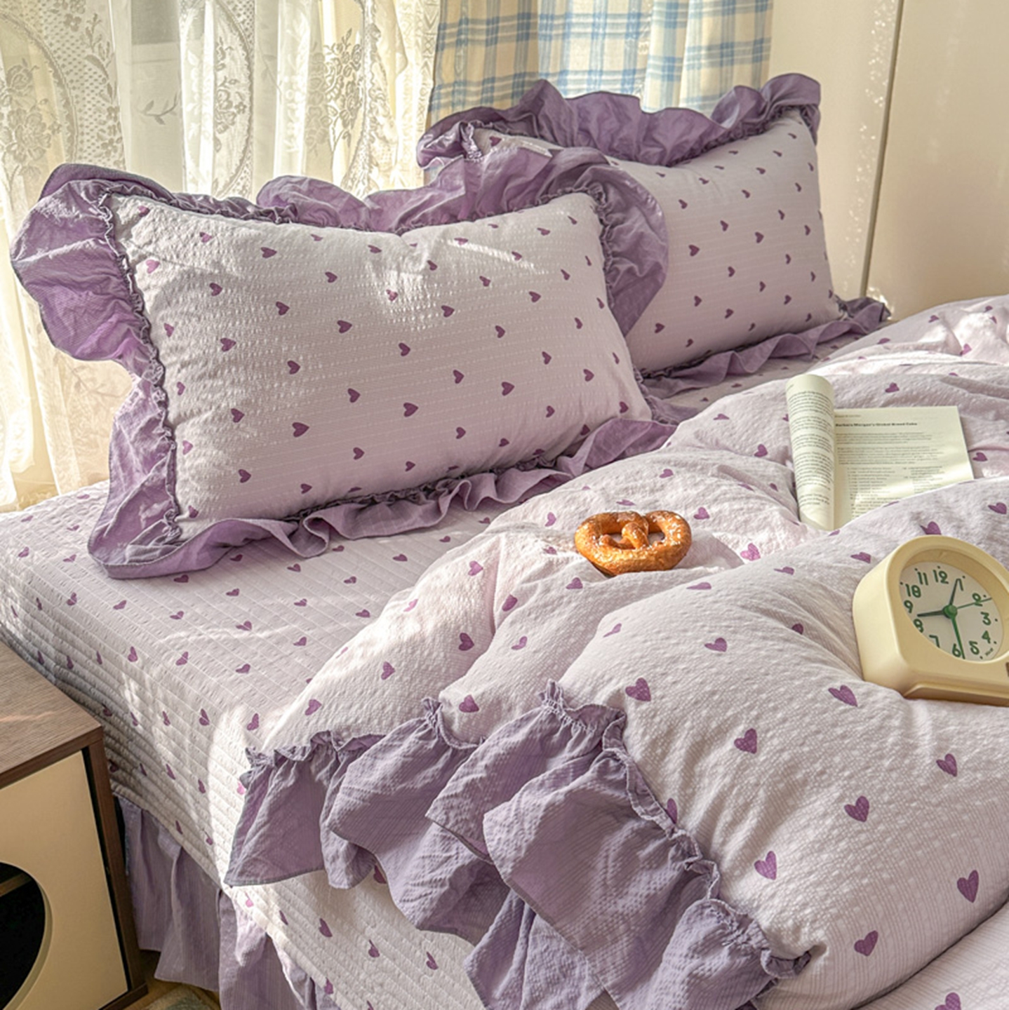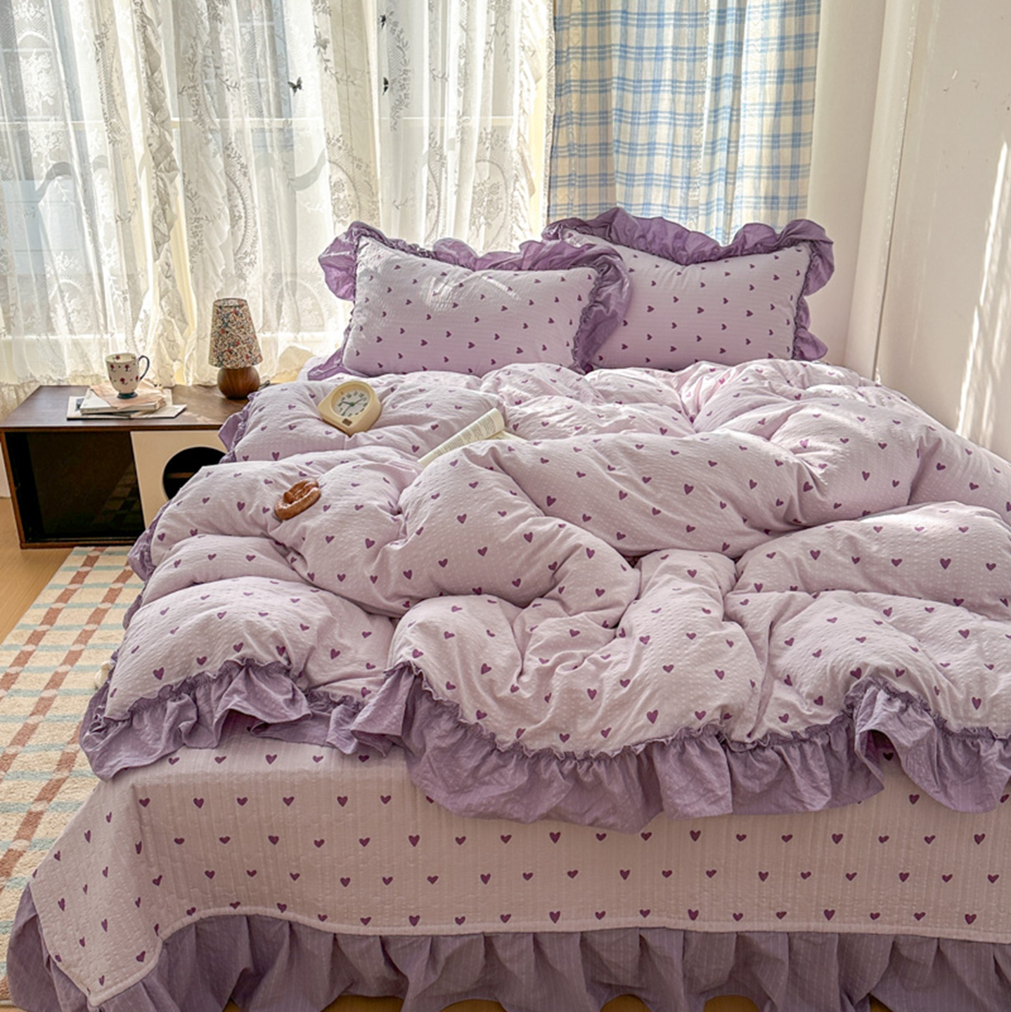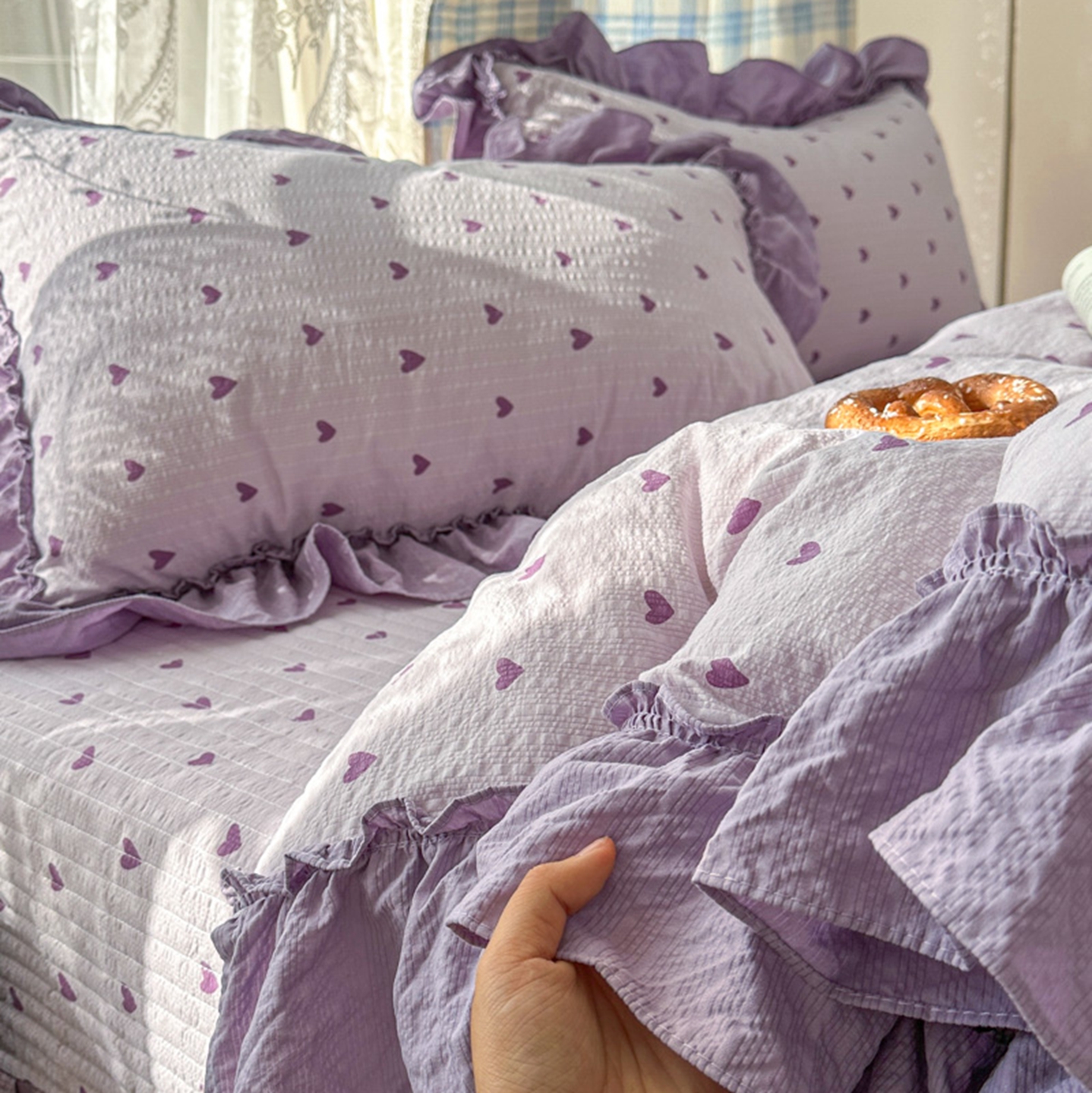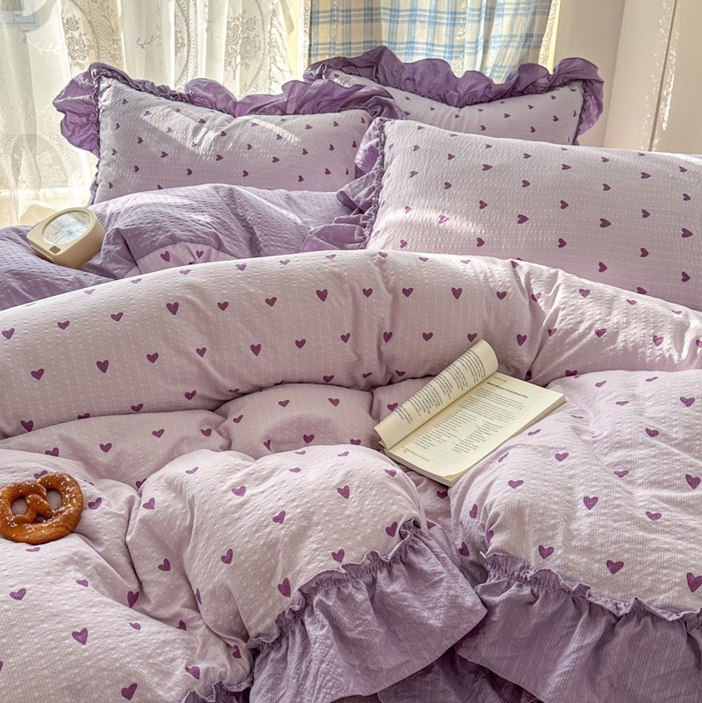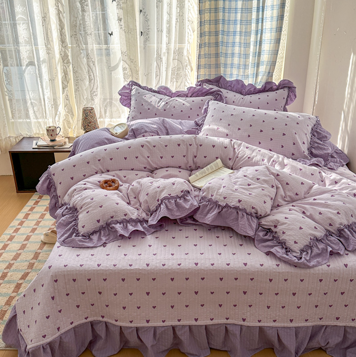 商品名称:欧尚 2026新款花边床盖四件套 紫爱心