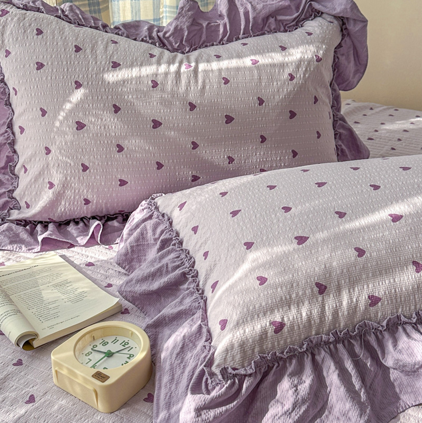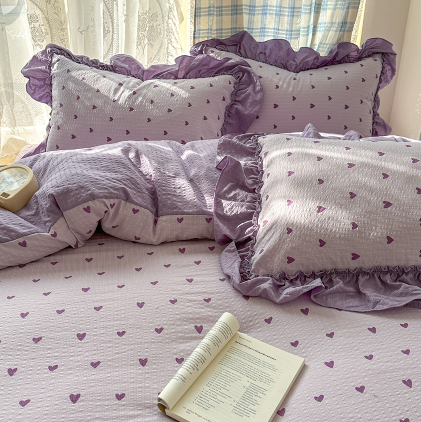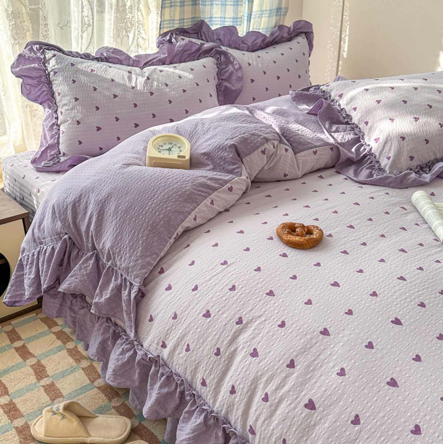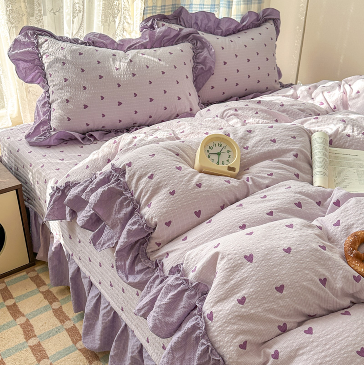 商品名称:欧尚 2026新款花边床盖四件套 紫爱心