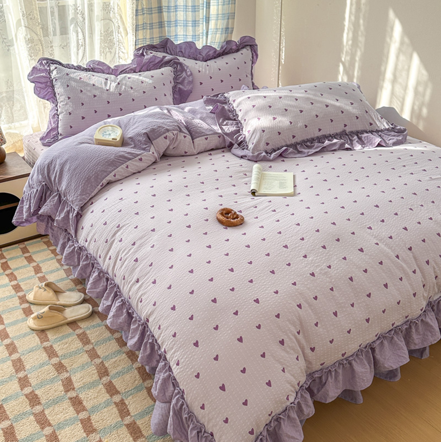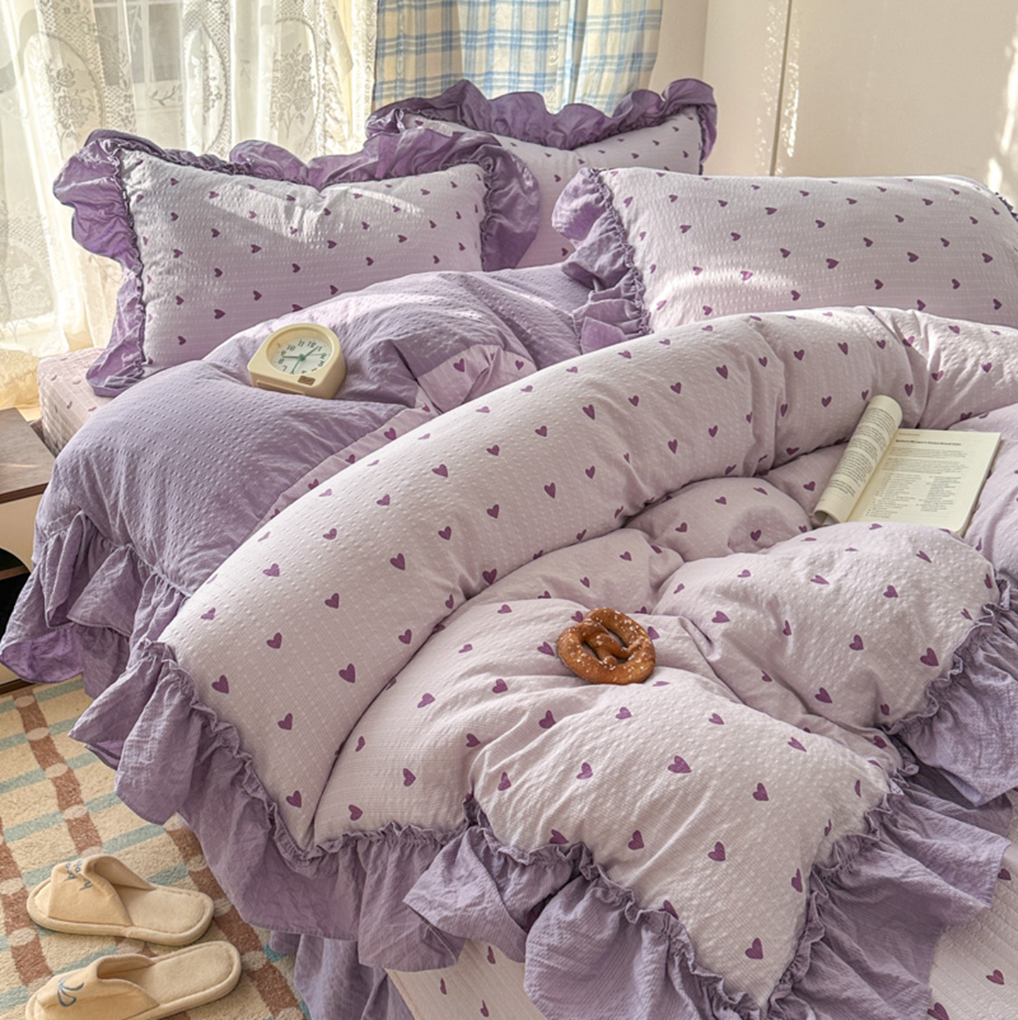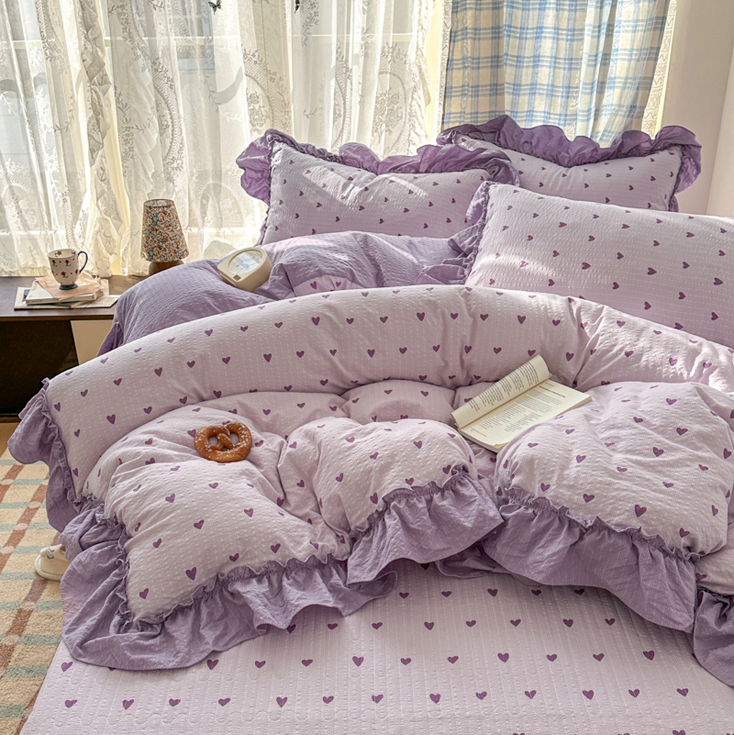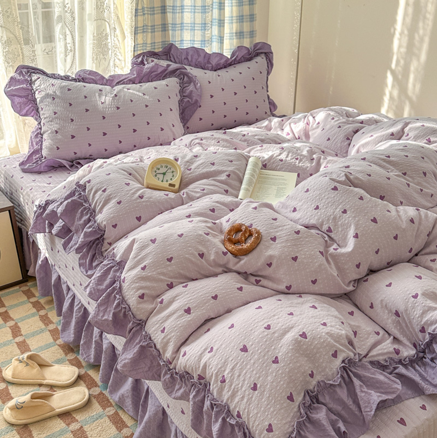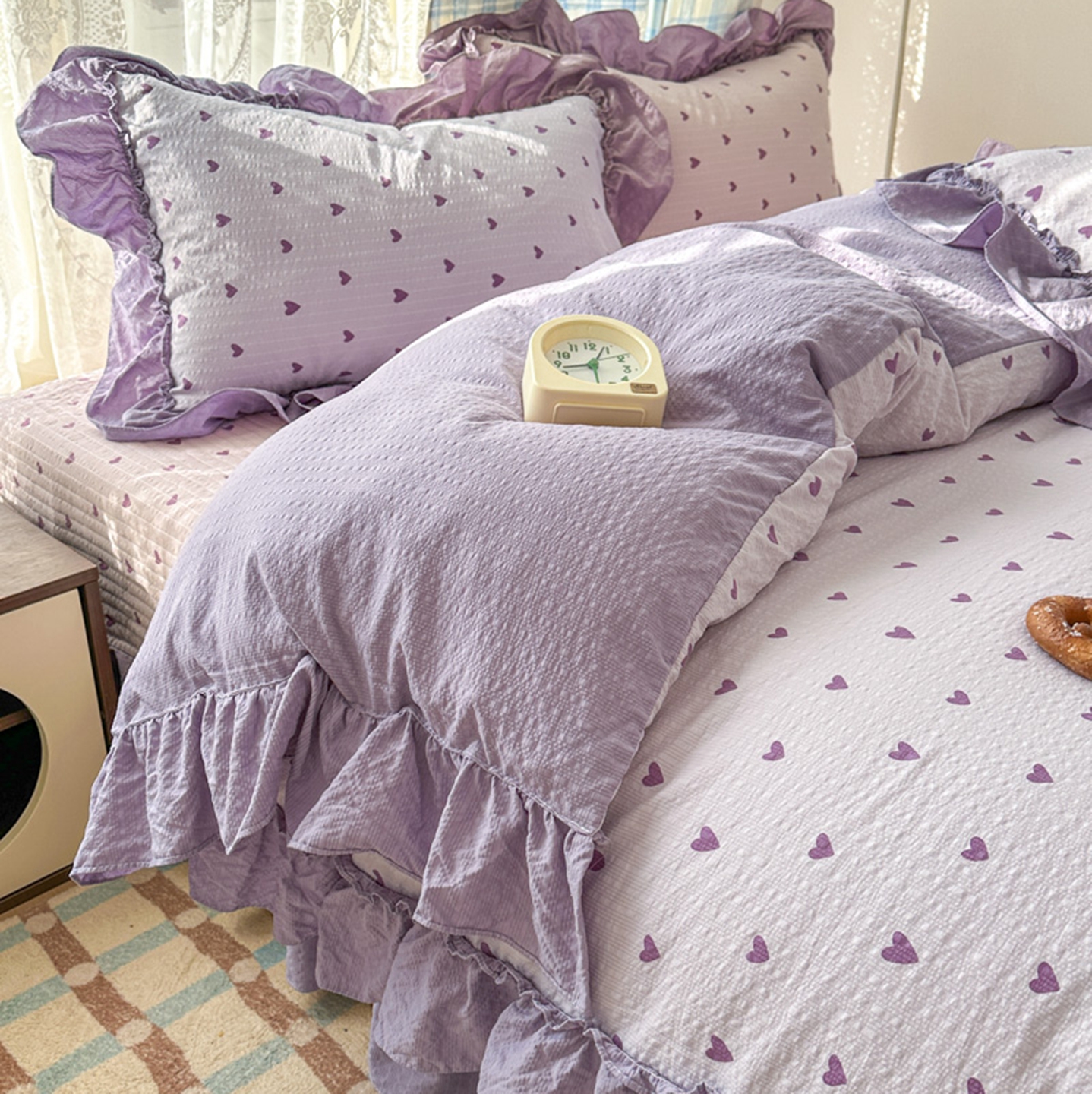 商品名称:欧尚 2026新款花边床盖四件套 紫爱心
