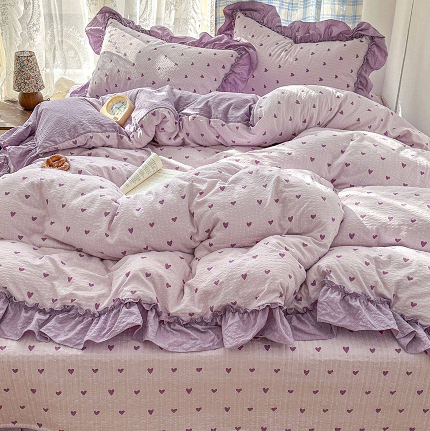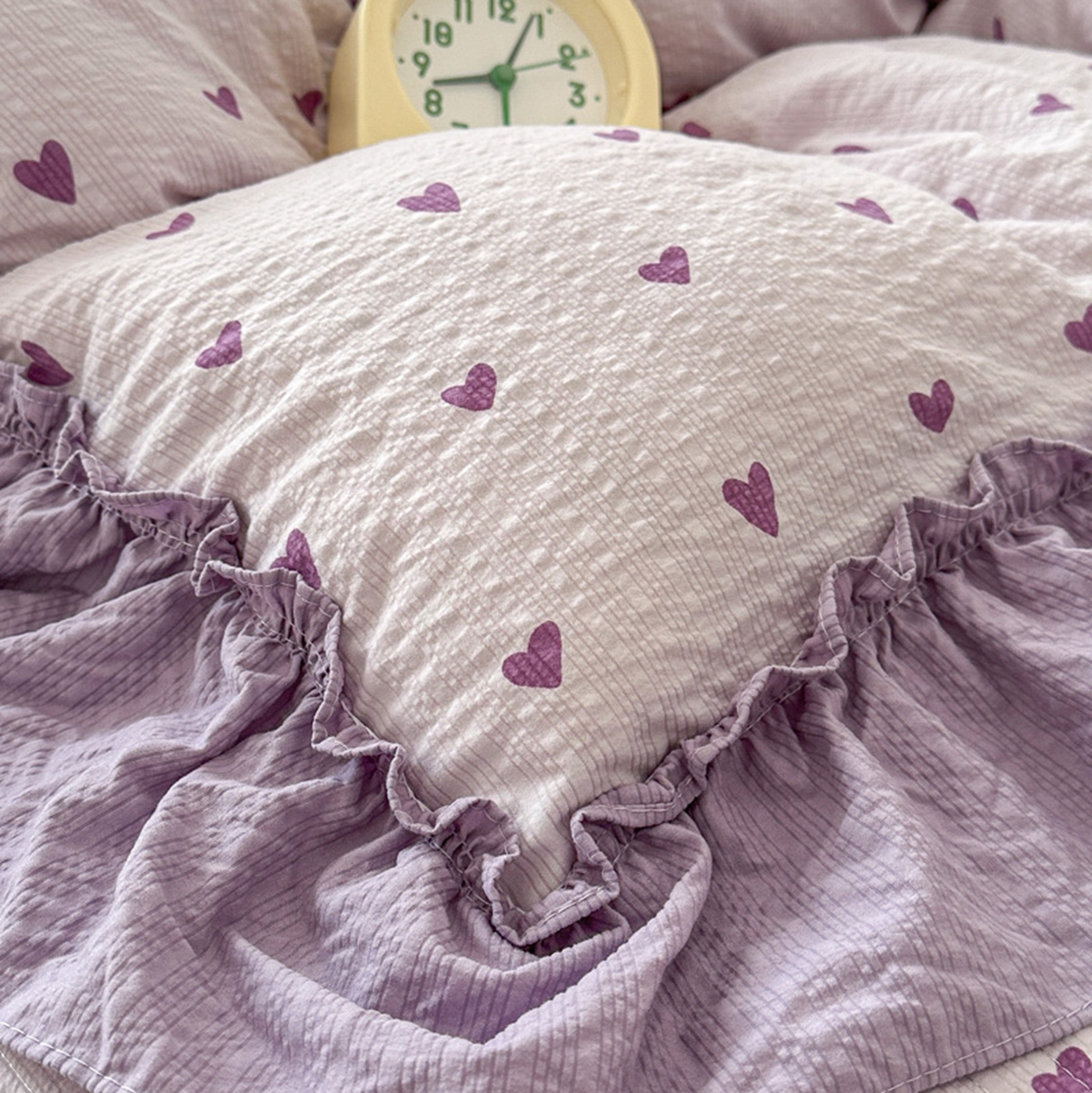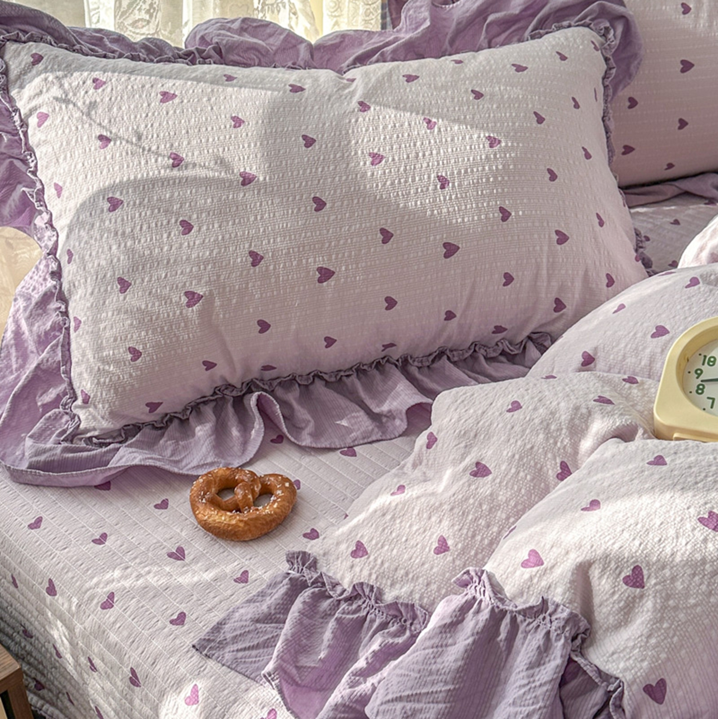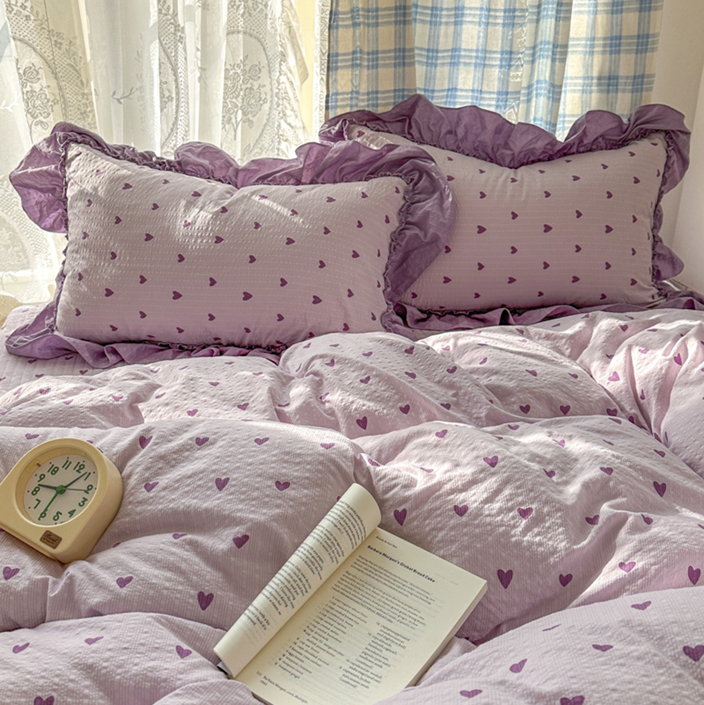 商品名称:欧尚 2026新款花边床盖四件套 紫爱心