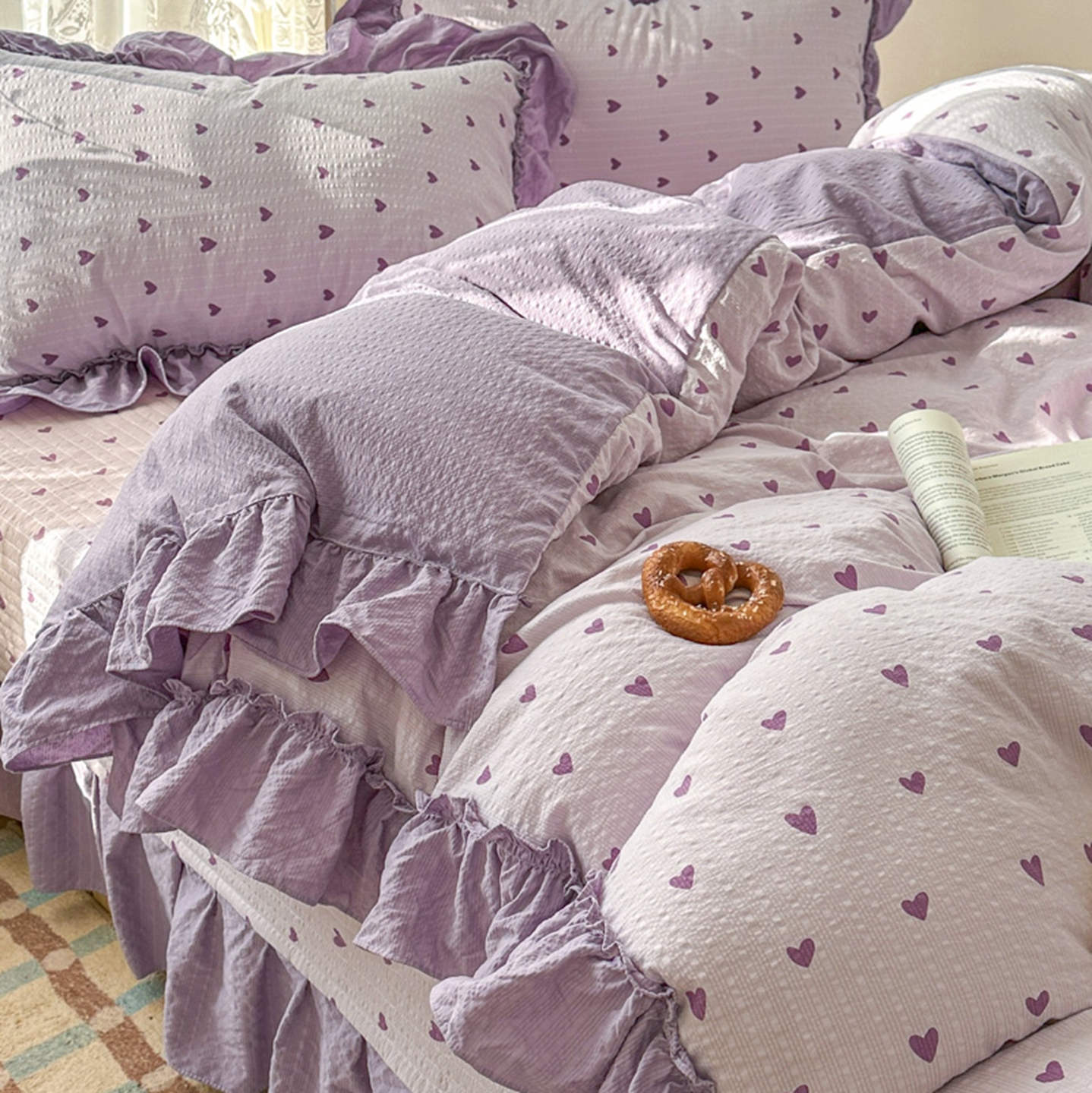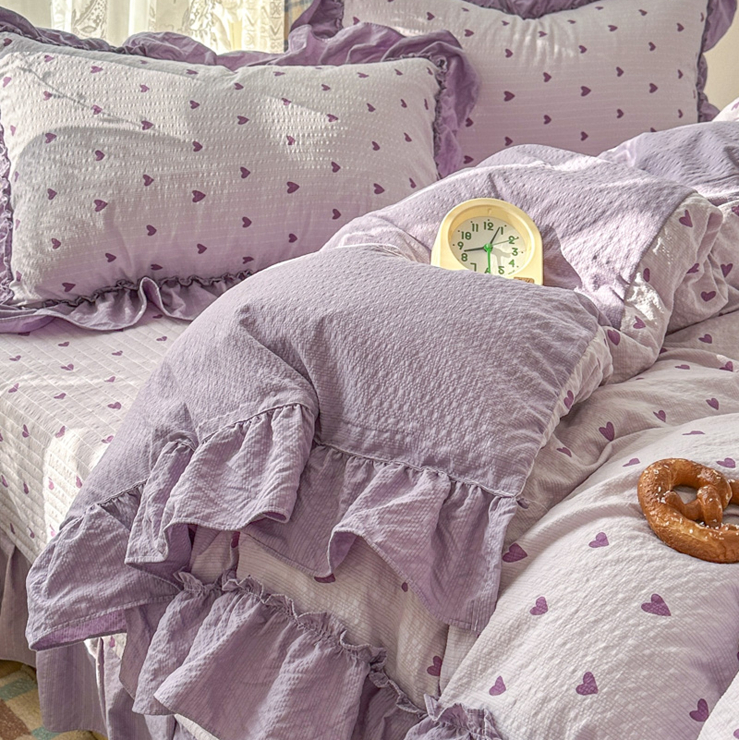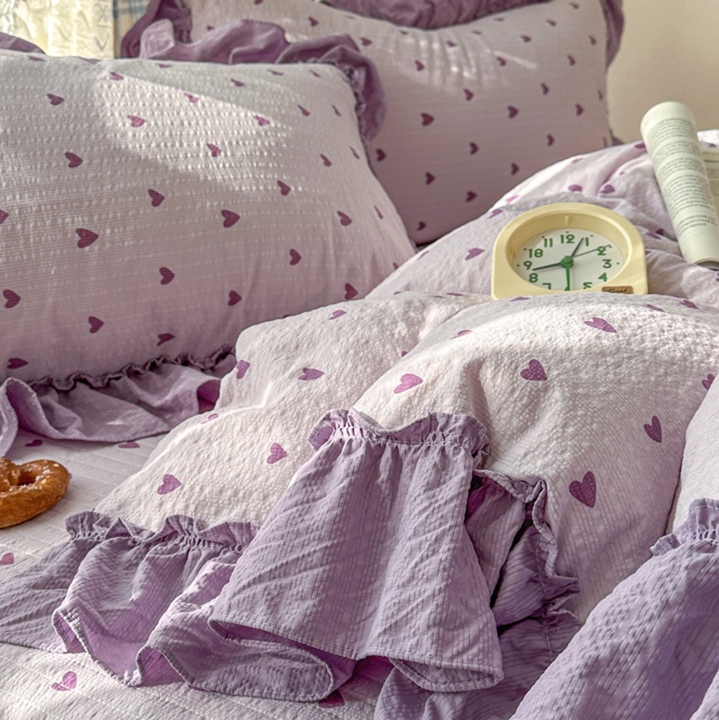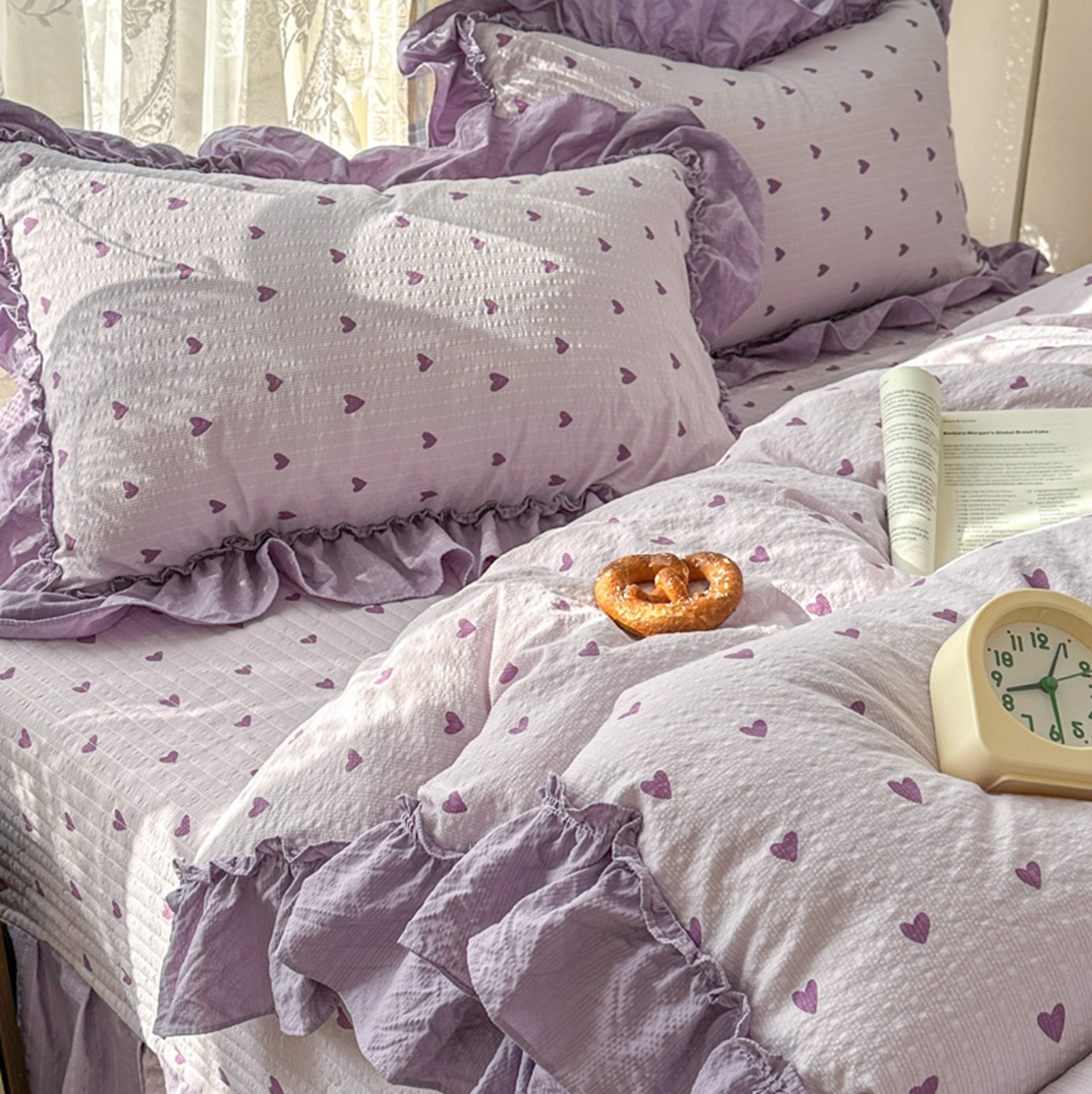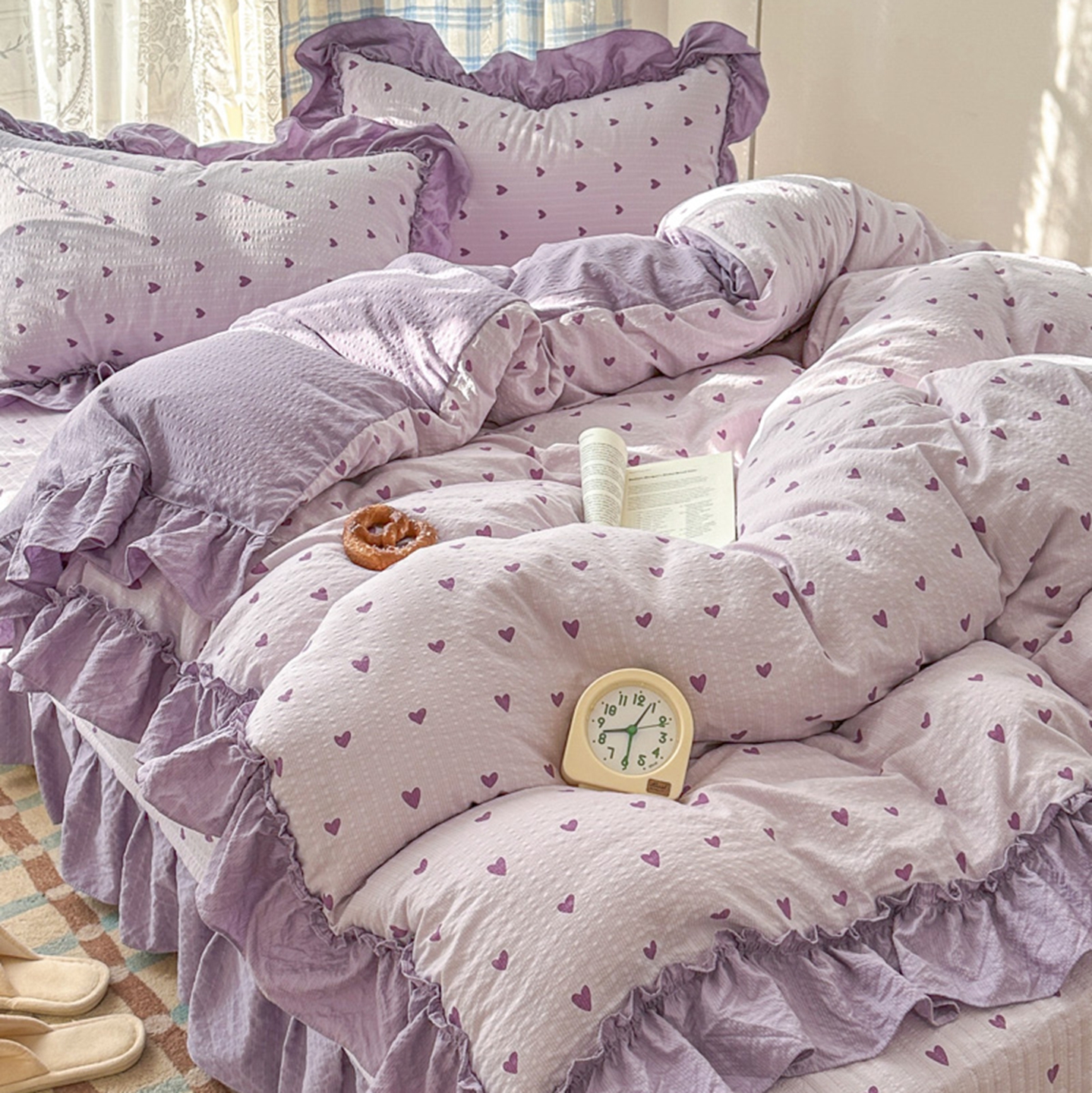 商品名称:欧尚 2026新款花边床盖四件套 紫爱心