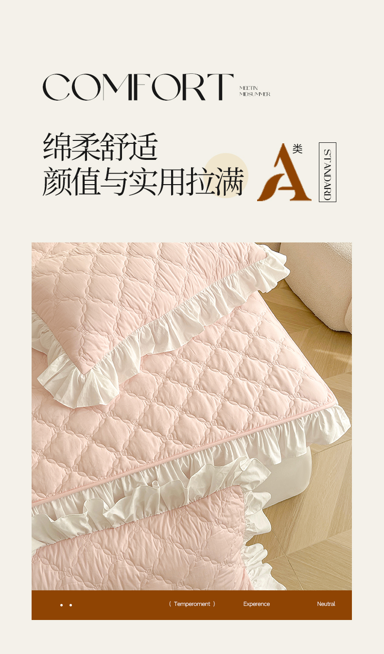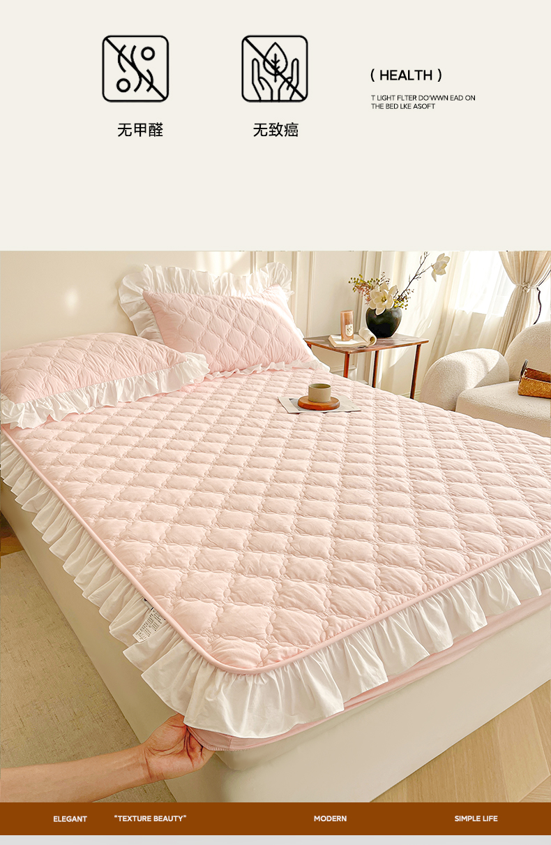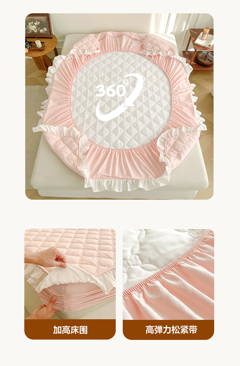 当前位置: 91家纺网 > 商品网购 > 床上用品 > 床笠 > 佳笠家居 2026新款A类全棉40支水洗棉少女风花边棉花床笠-场景图 芝夏粉