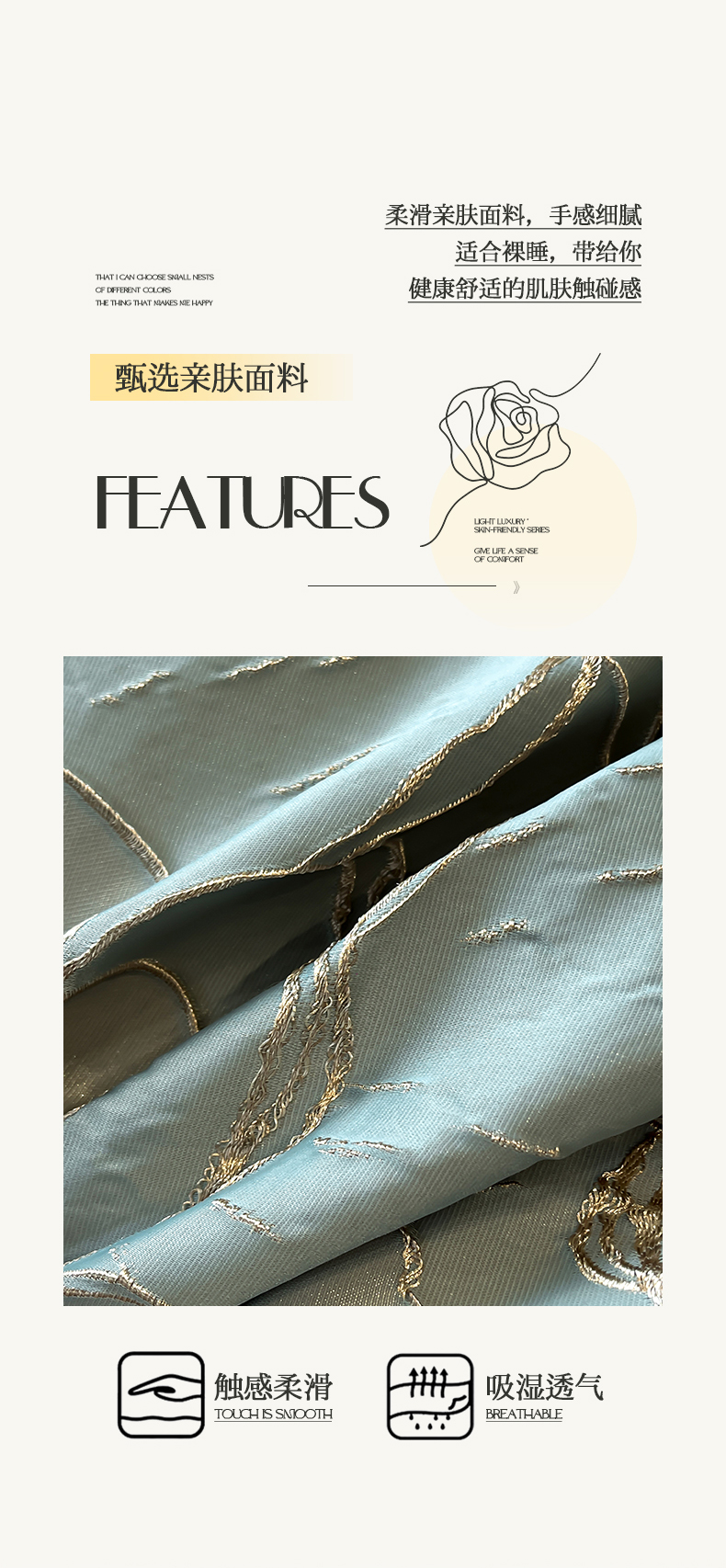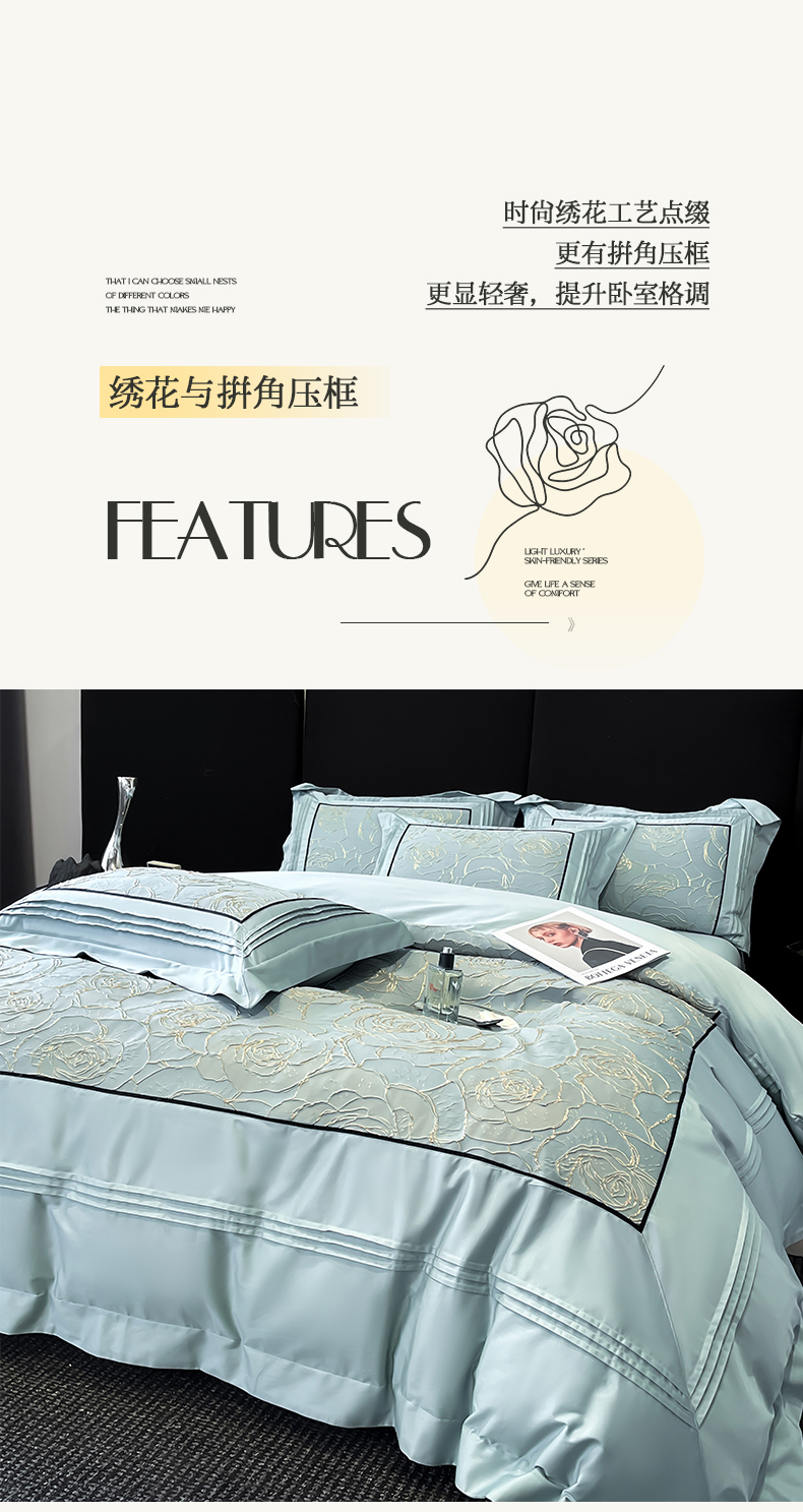 当前位置: 91家纺网 > 商品网购 > 床品套件 > 四件套 > 其它四件套 > 置顶家纺 2026新款亲肤棉玫瑰刺绣提花卡罗拉系列四件套 卡罗拉-天空蓝