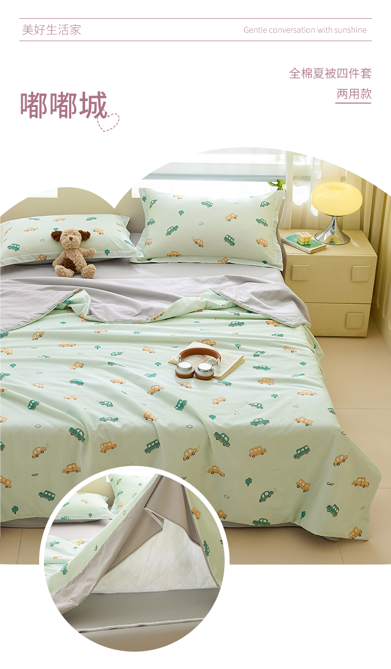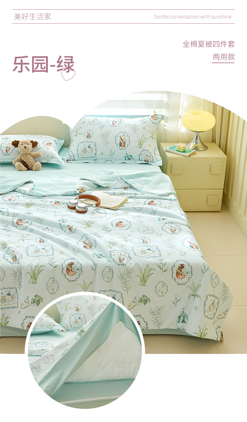 元元家居(元元被业) 2026新款全棉纯棉13372印花两用夏被夏凉被空调被四件套 凝珠