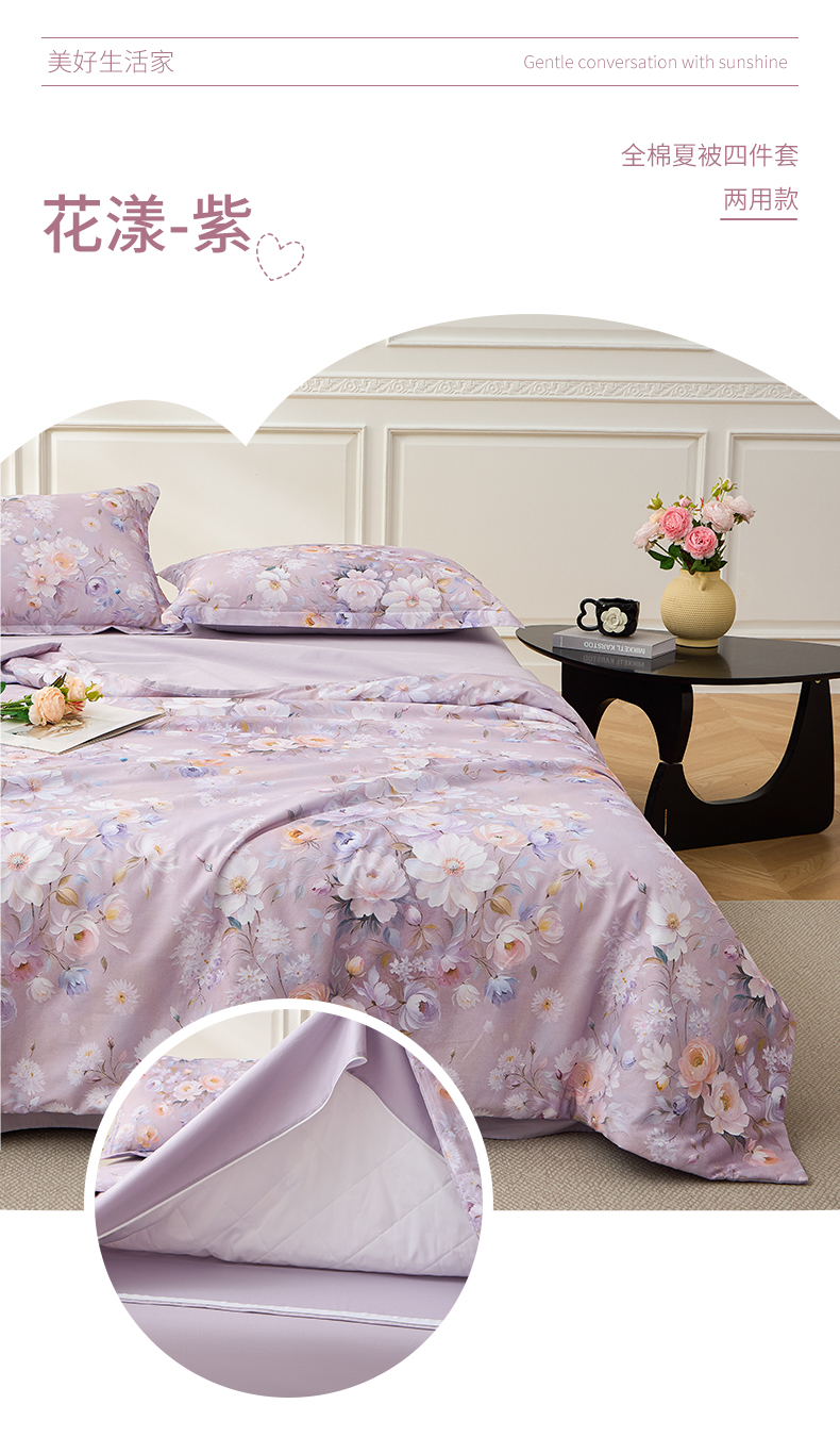 • 91家纺网 家纺一手货源 找家纺 元元家居(元元被业) 2026新款全棉纯棉13372印花两用夏被夏凉被空调被四件套 凝珠