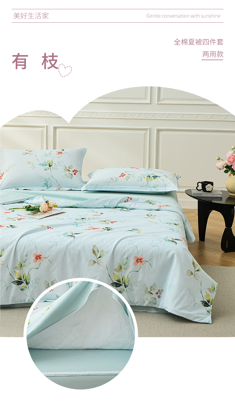 元元家居(元元被业) 2026新款全棉纯棉13372印花两用夏被夏凉被空调被四件套 知夏
