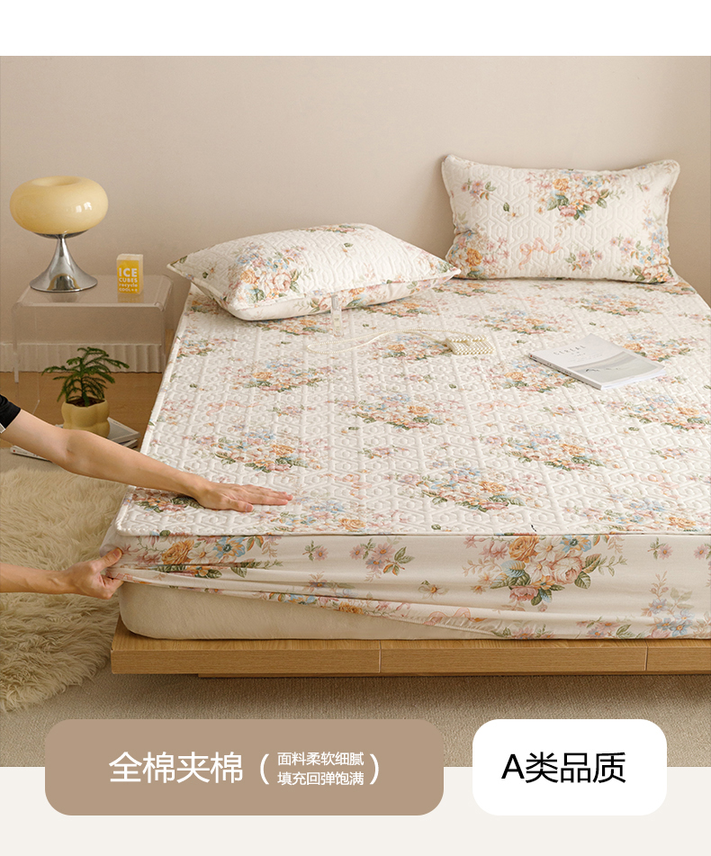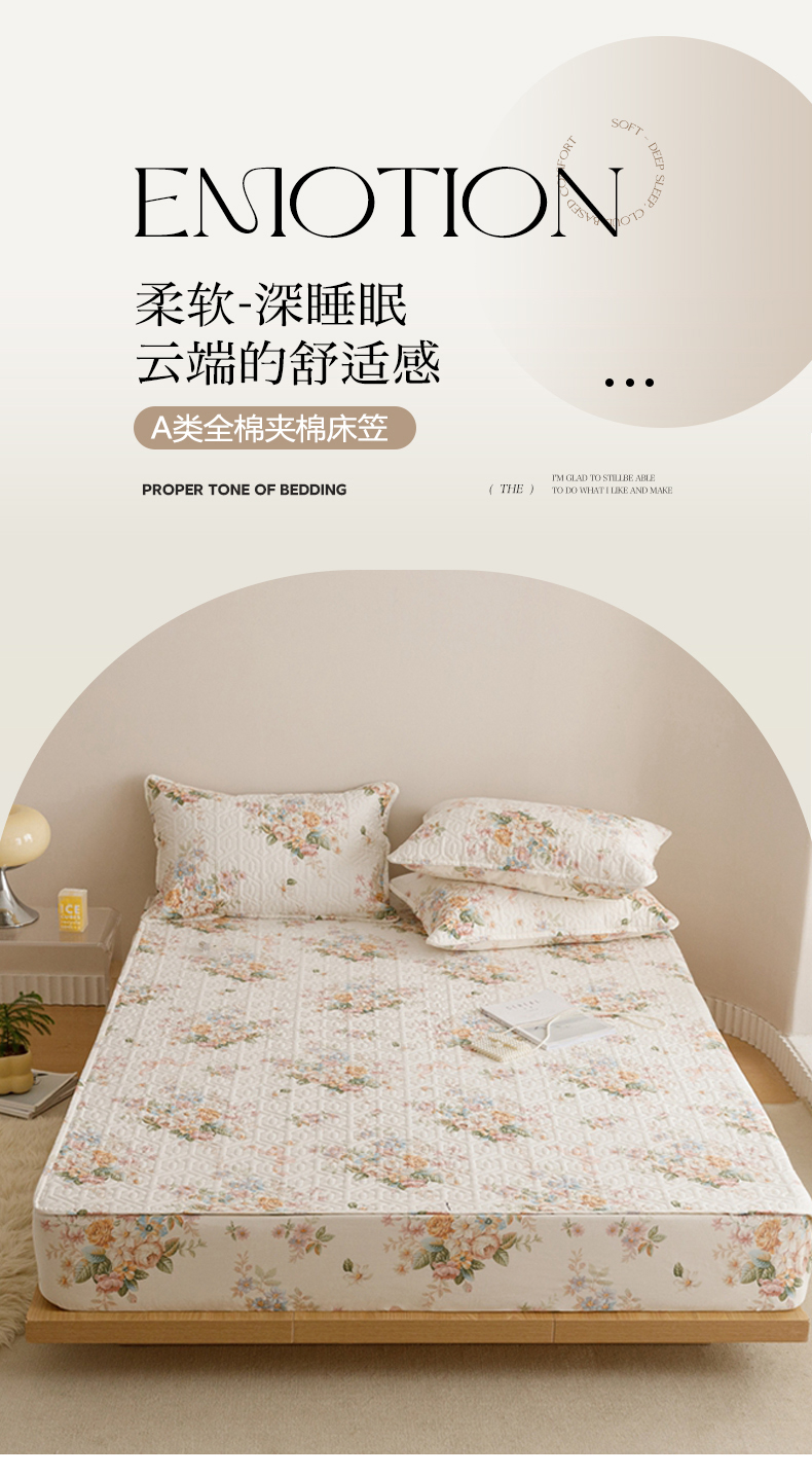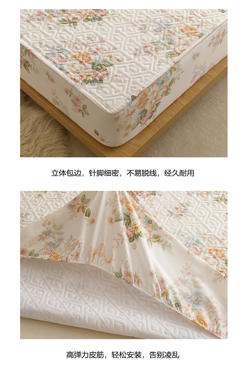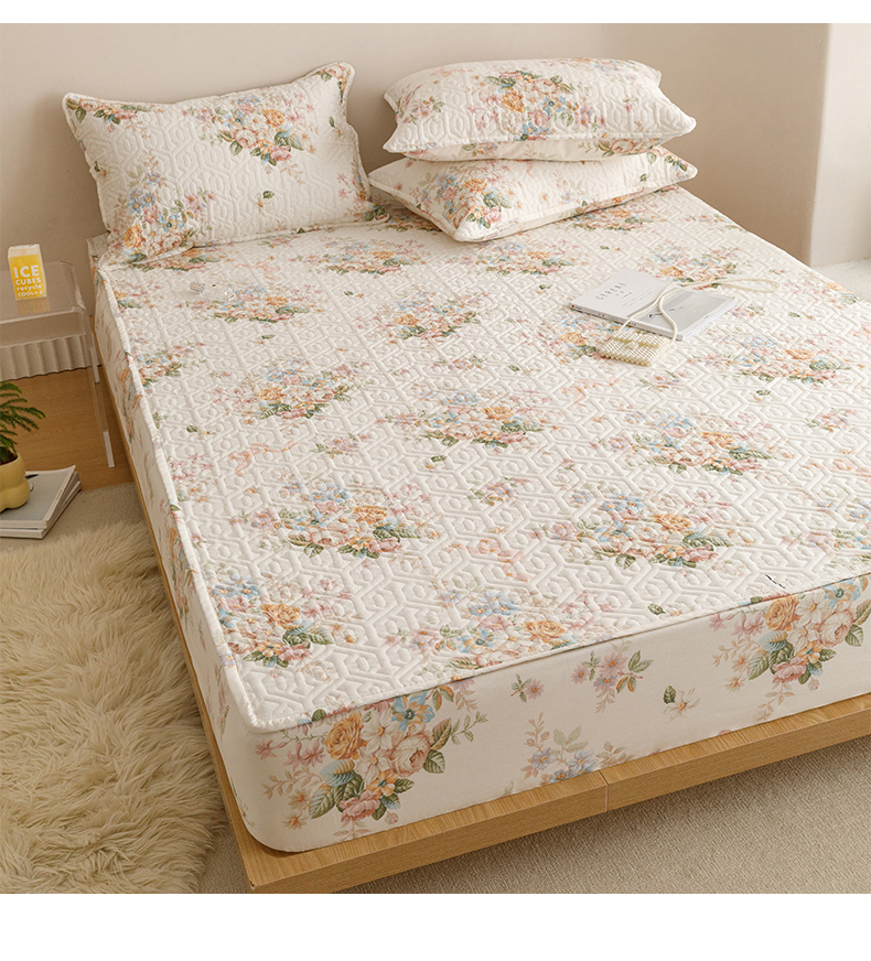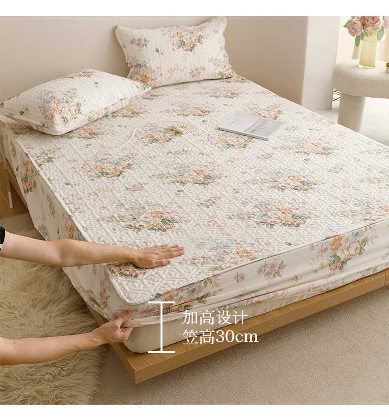 商品名称:忘忧草 2026新款清新简约全棉印花夹棉床笠 花期如梦