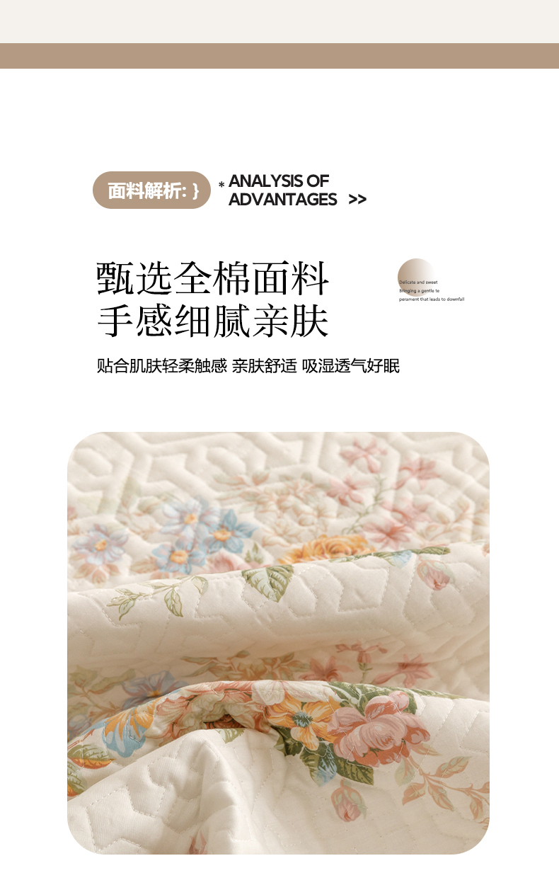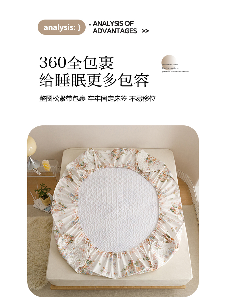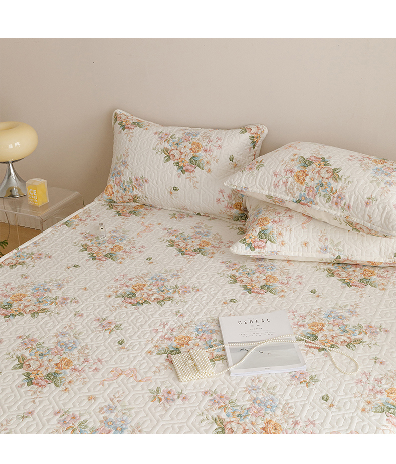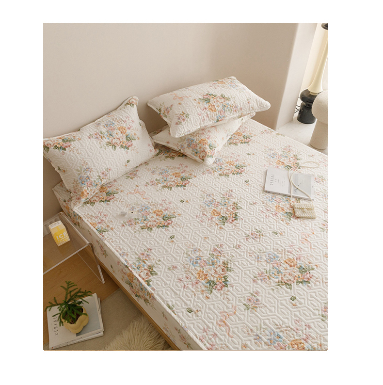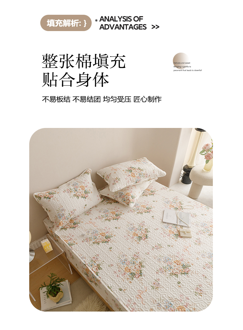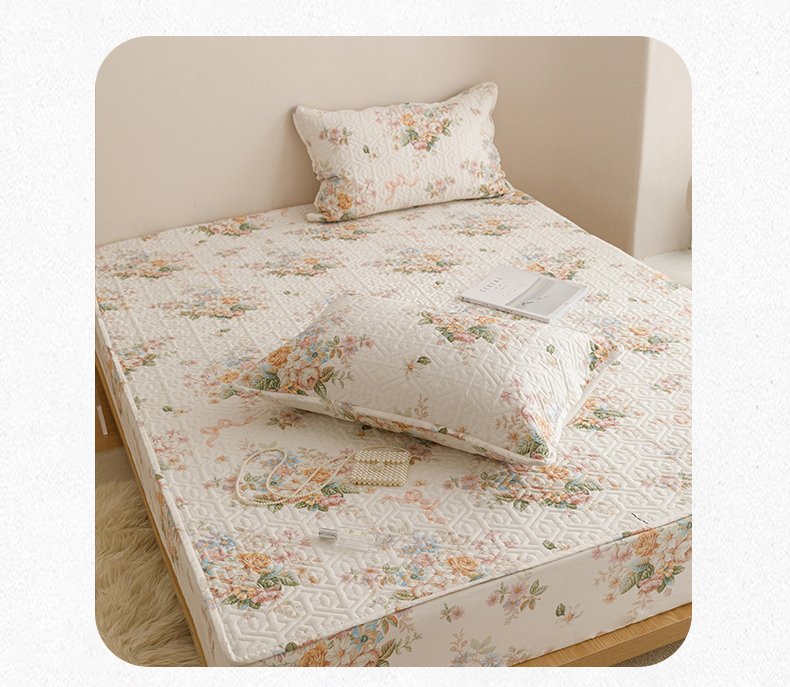 商品名称:忘忧草 2026新款清新简约全棉印花夹棉床笠 花期如梦