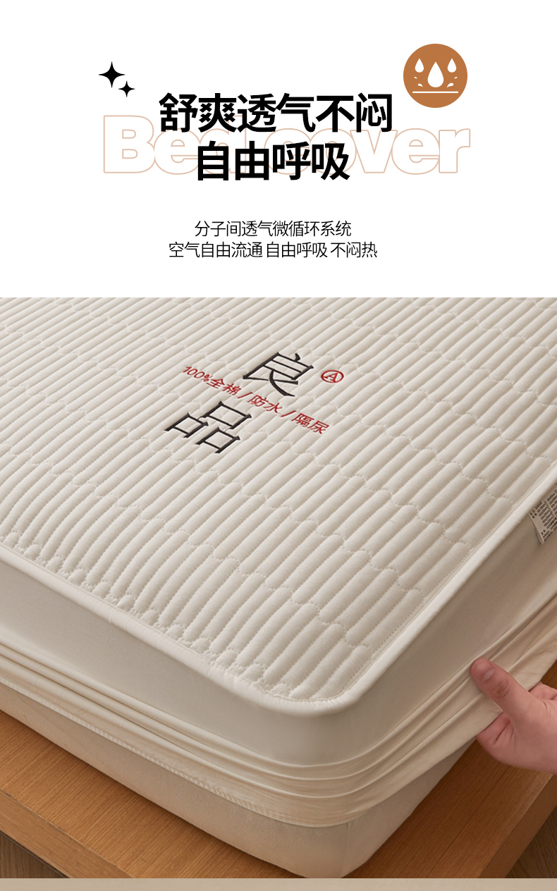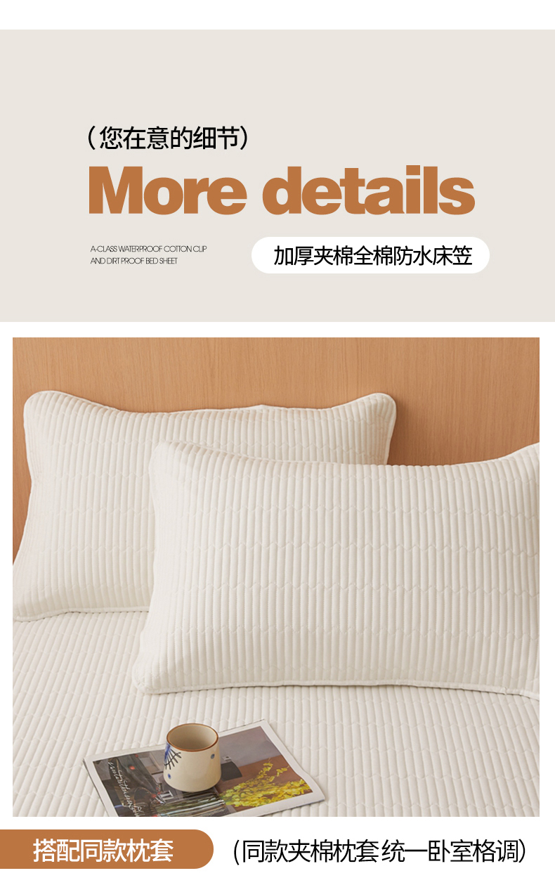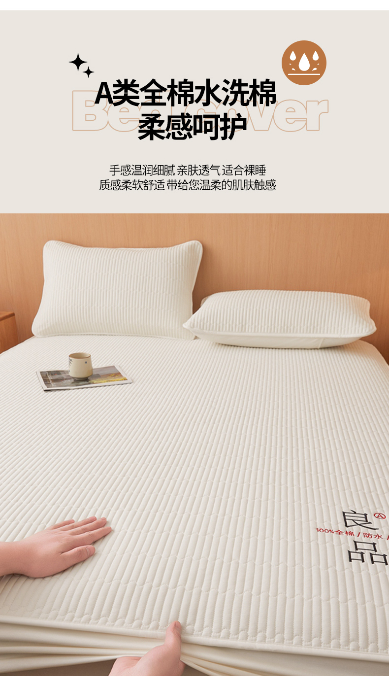 邵依家纺 2026新款良品夹棉防水床笠纯棉床笠夹棉床笠 良品-珍珠白