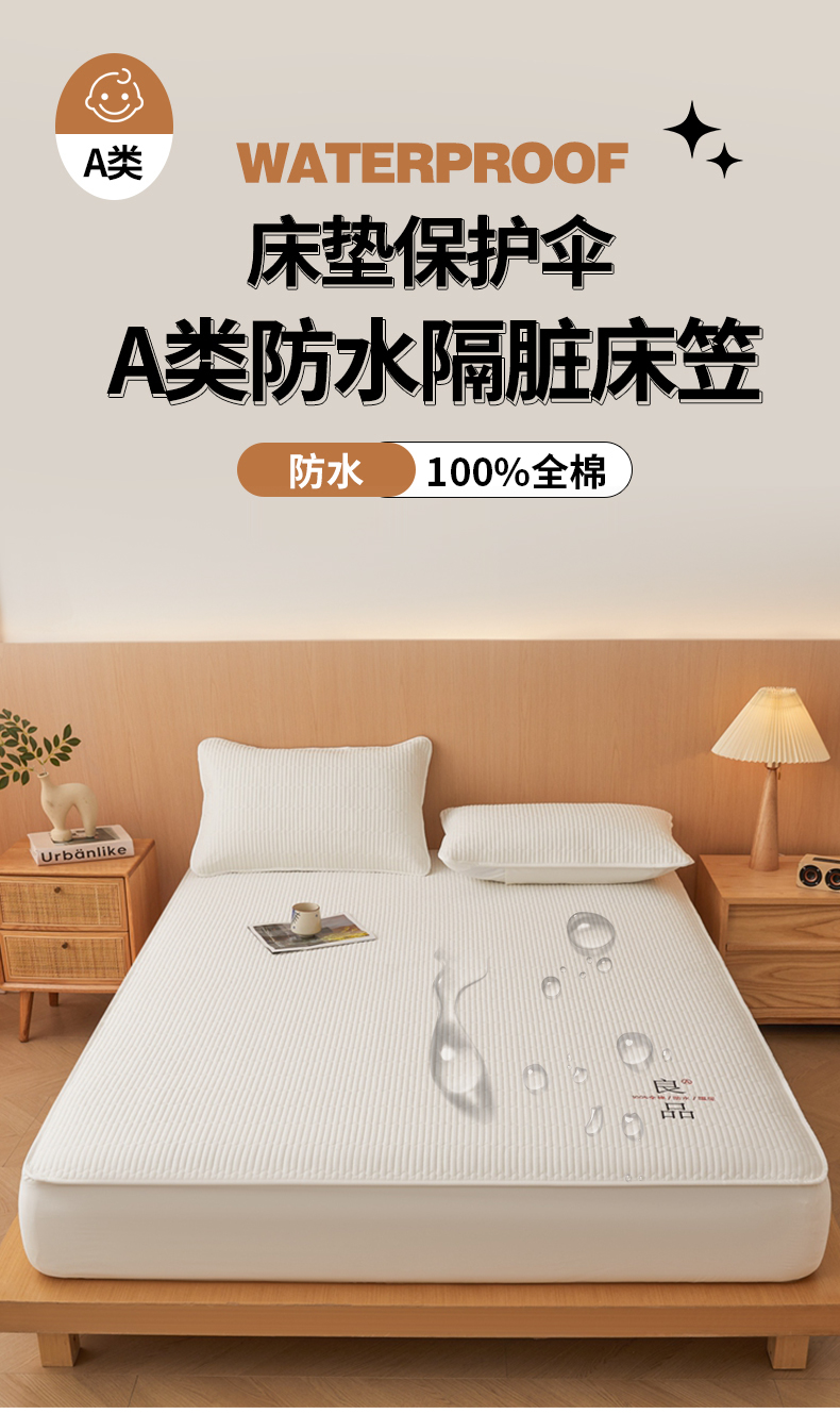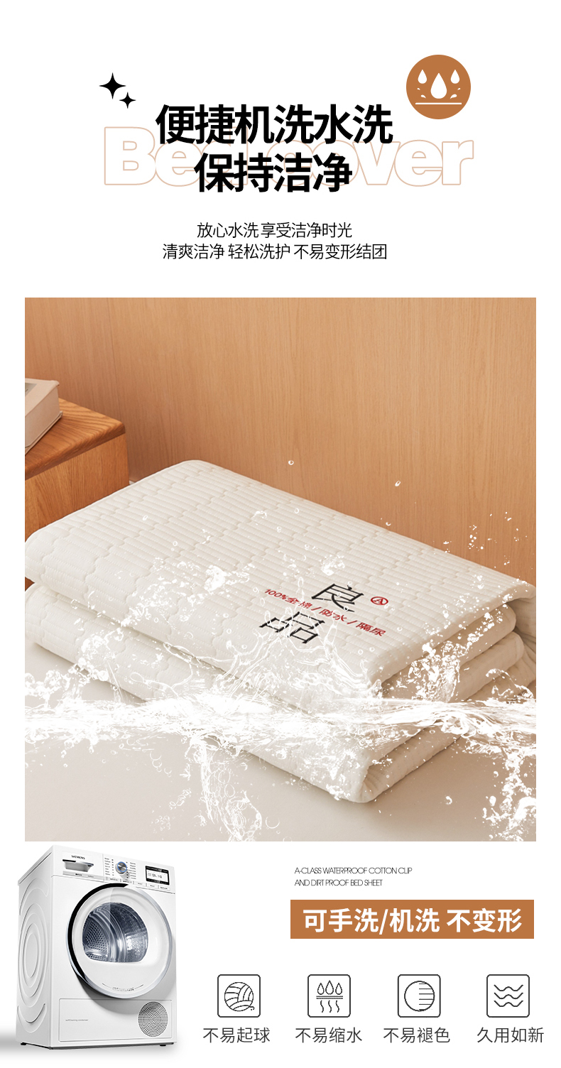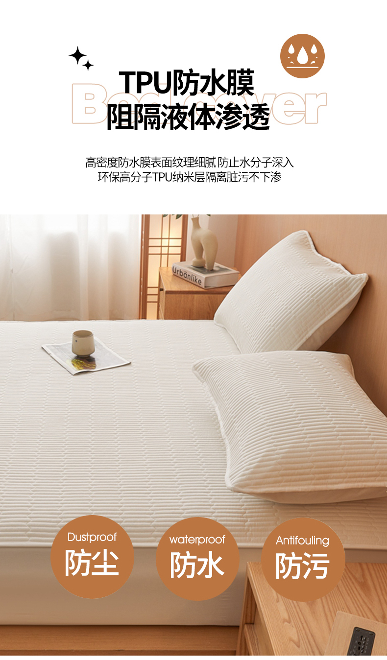 邵依家纺 2026新款良品夹棉防水床笠纯棉床笠夹棉床笠 良品-珍珠白