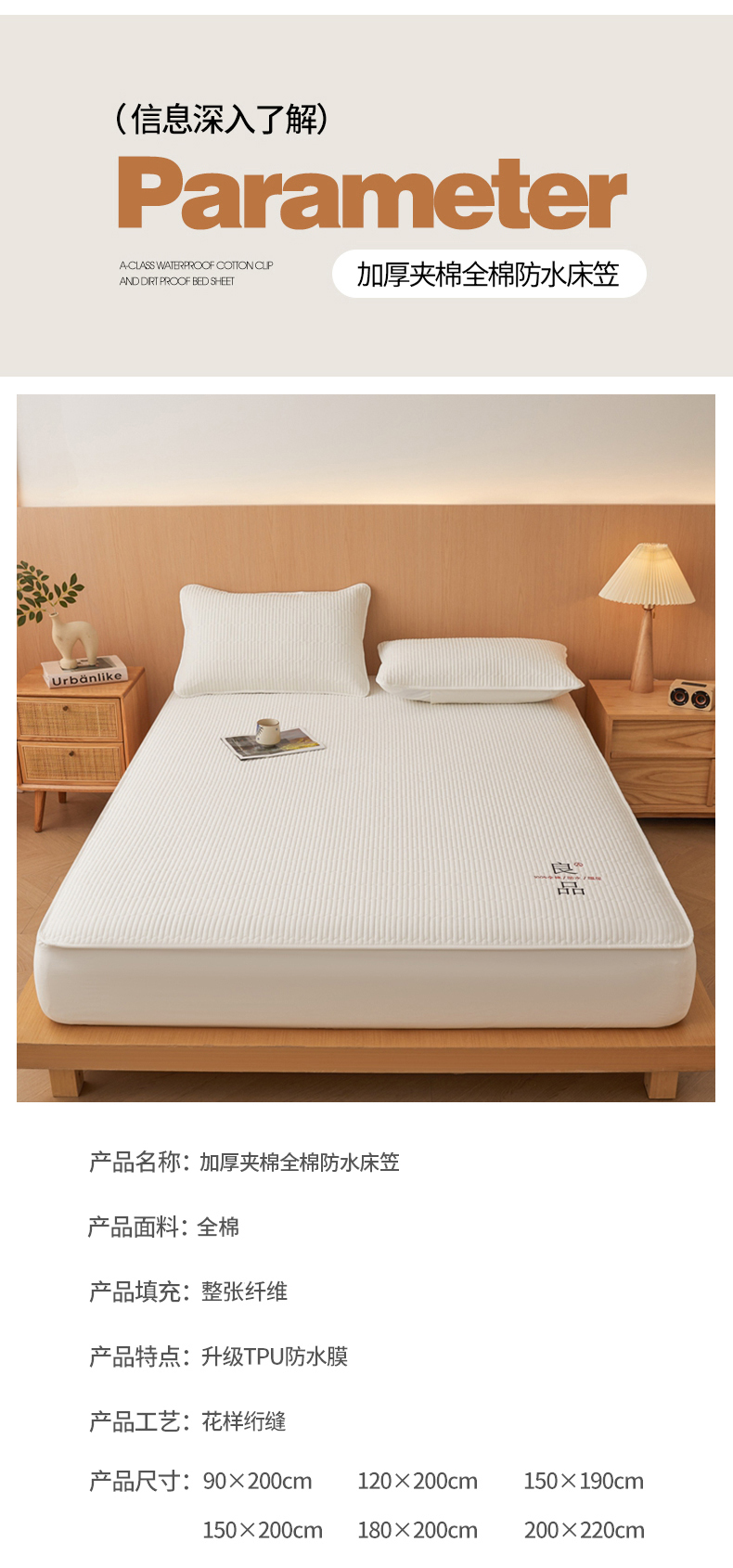 • 91家纺网 家纺一手货源 找家纺 邵依家纺 2026新款良品夹棉防水床笠纯棉床笠夹棉床笠 良品-珍珠白