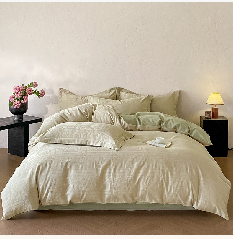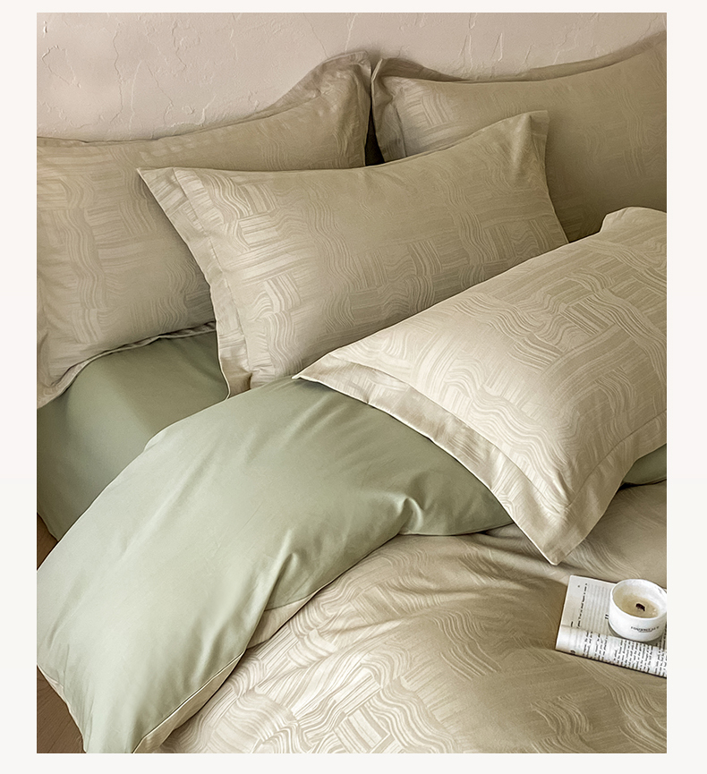 (总)笙意家纺 2025新款全棉A版棉麻提花B版13372四件套-乔屿系列,乔屿粉,乔屿蓝,乔屿绿,乔屿米,乔屿棕