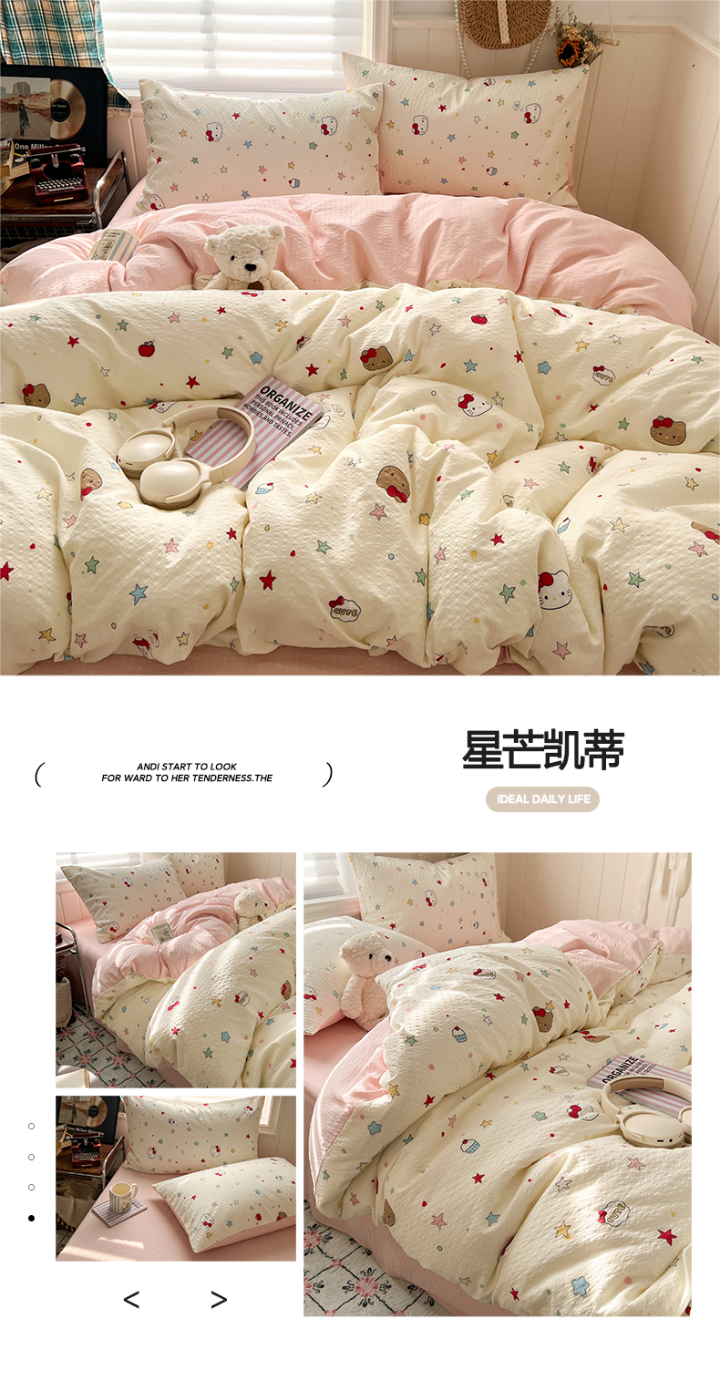 当前位置: 91家纺网 > 商品网购 > 床品套件 > 四件套 > 其它四件套 > 水木坊 2026春夏新款高品质泡芙普通款四件套 甜喵块块