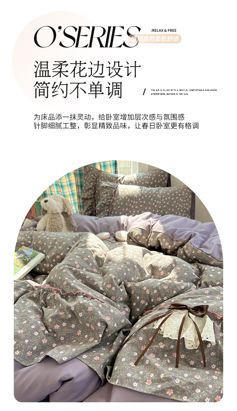 当前位置: 91家纺网 > 商品网购 > 床品套件 > 四件套 > 其它四件套 > 凯洛奇 2026新款A类仿棉云朵棉蝴蝶结花边四件套(提供买家秀) 绿野花影