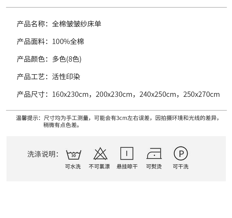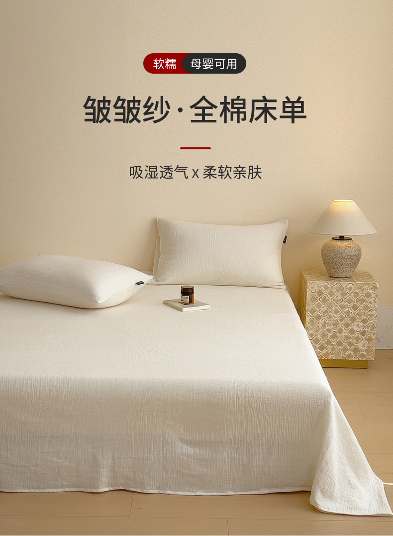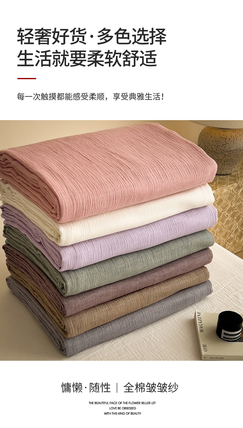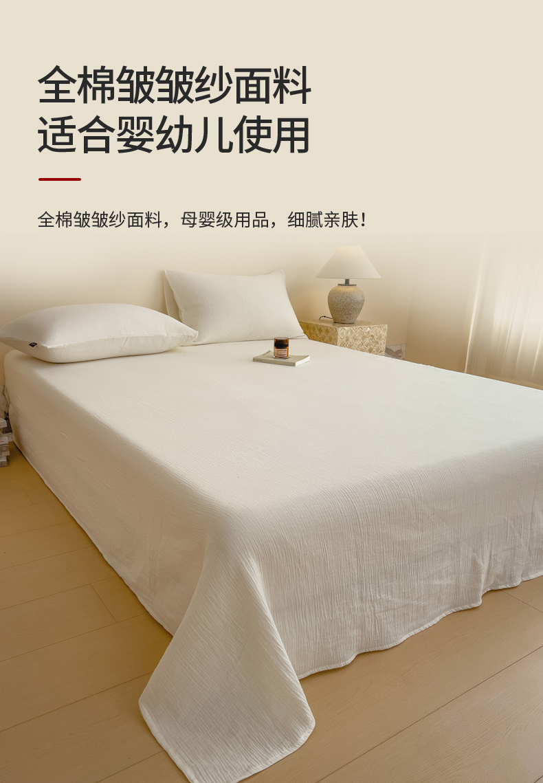 商品名称:(总)席世家 2026新款全棉纯棉纯色皱皱纱单床单 床单单件