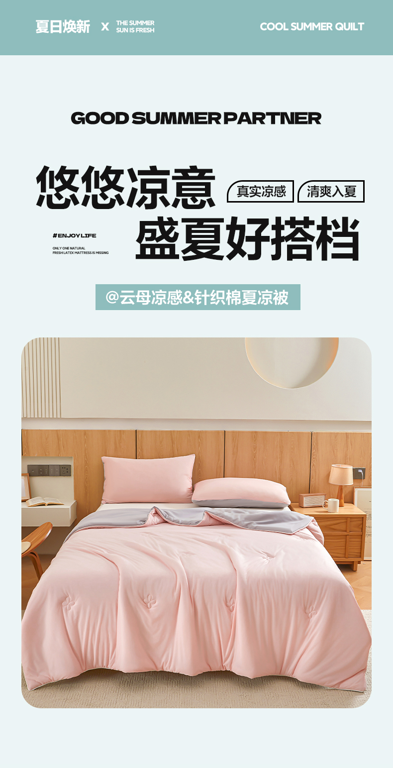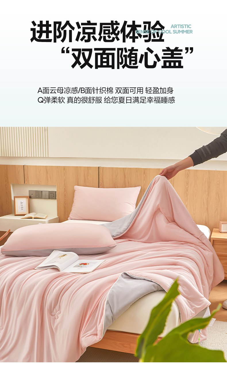 商品名称:悦织语 2026新款A类云母凉感丝(含氨纶)+针织棉双面可用夏凉被空调被被子被芯 奶茶粉+中灰