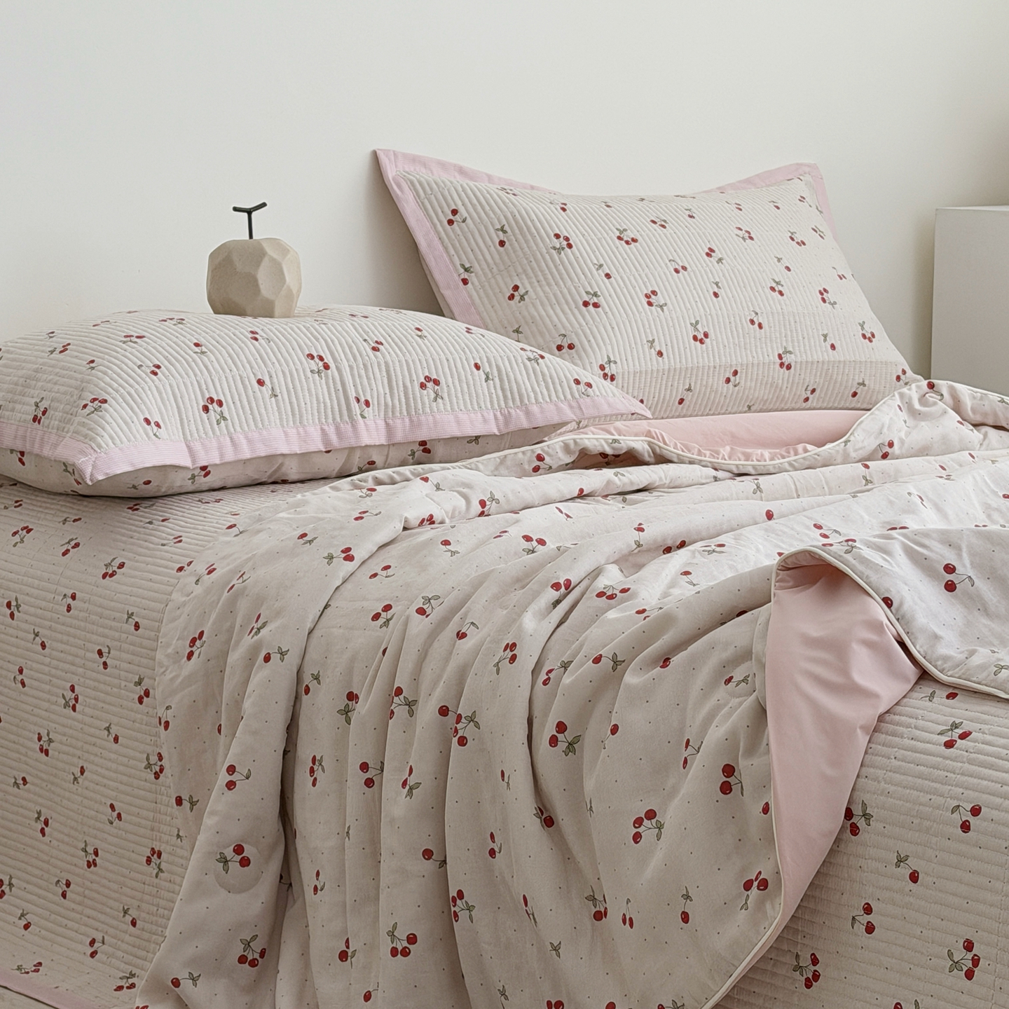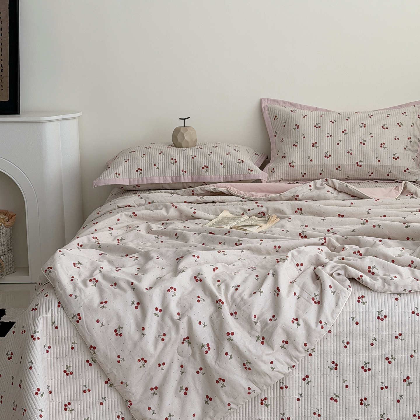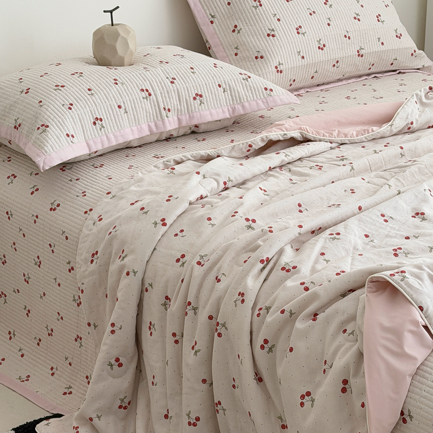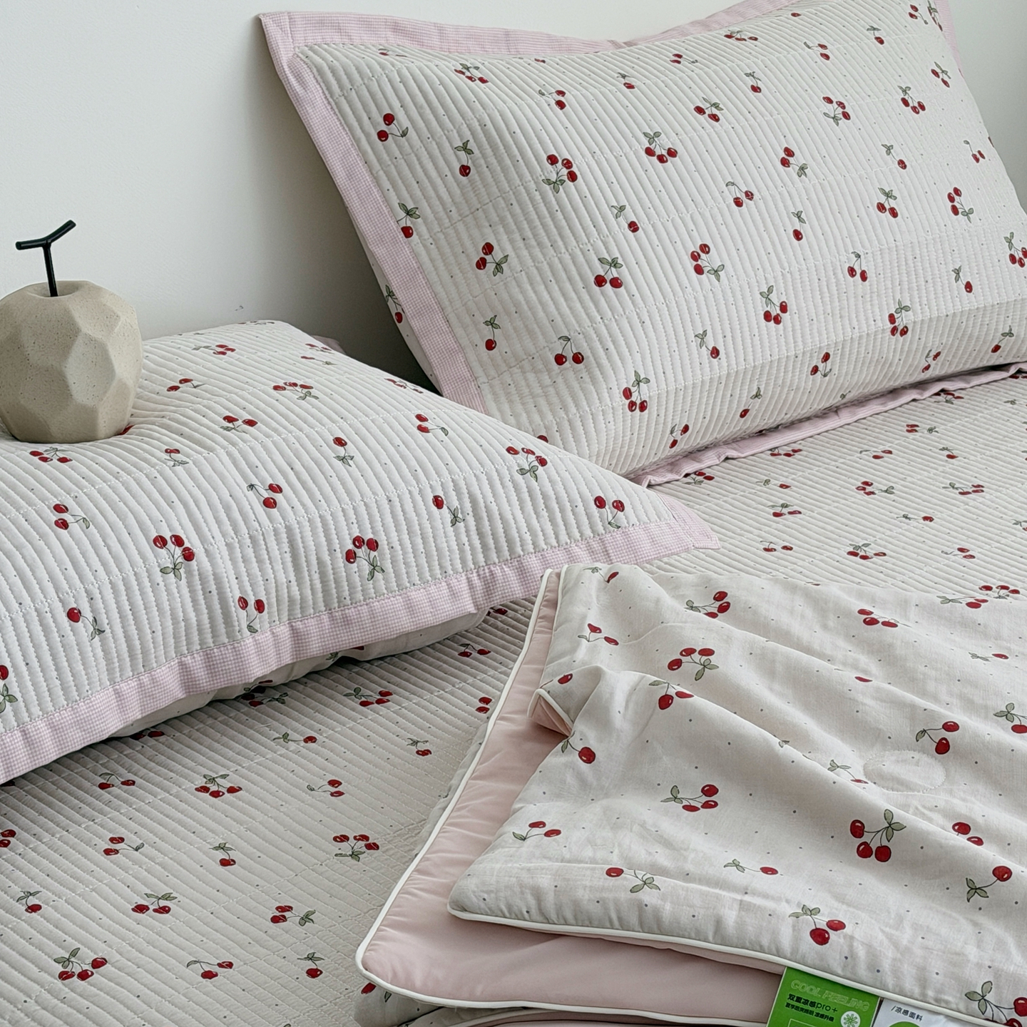 佰织鑫家居 2026新款全棉双层纱床盖款锦氨夏被四件套 可可樱桃