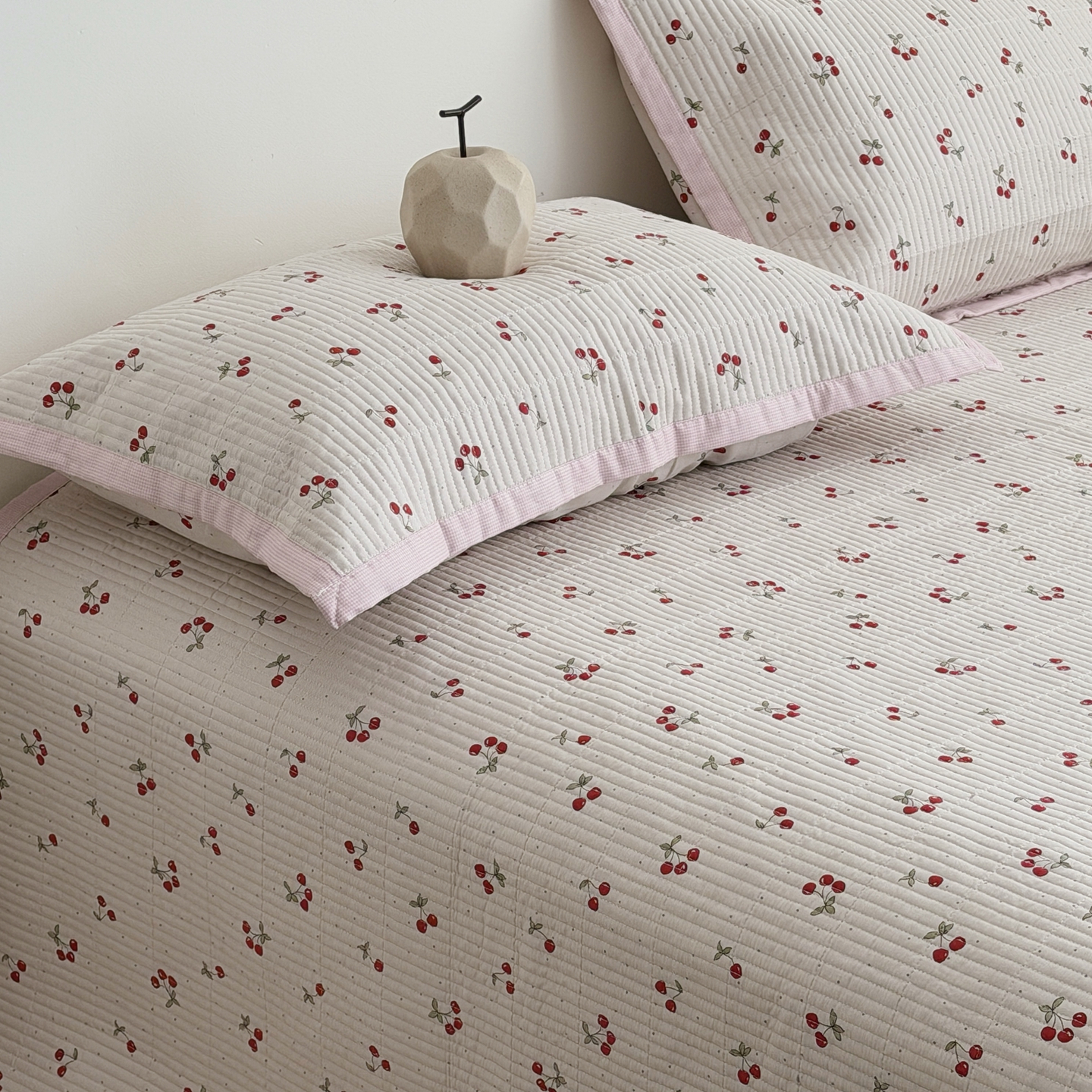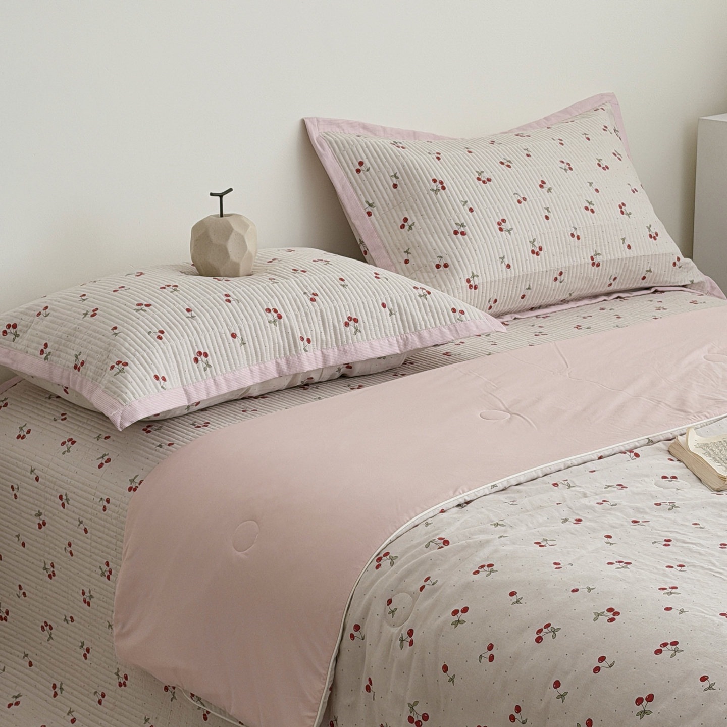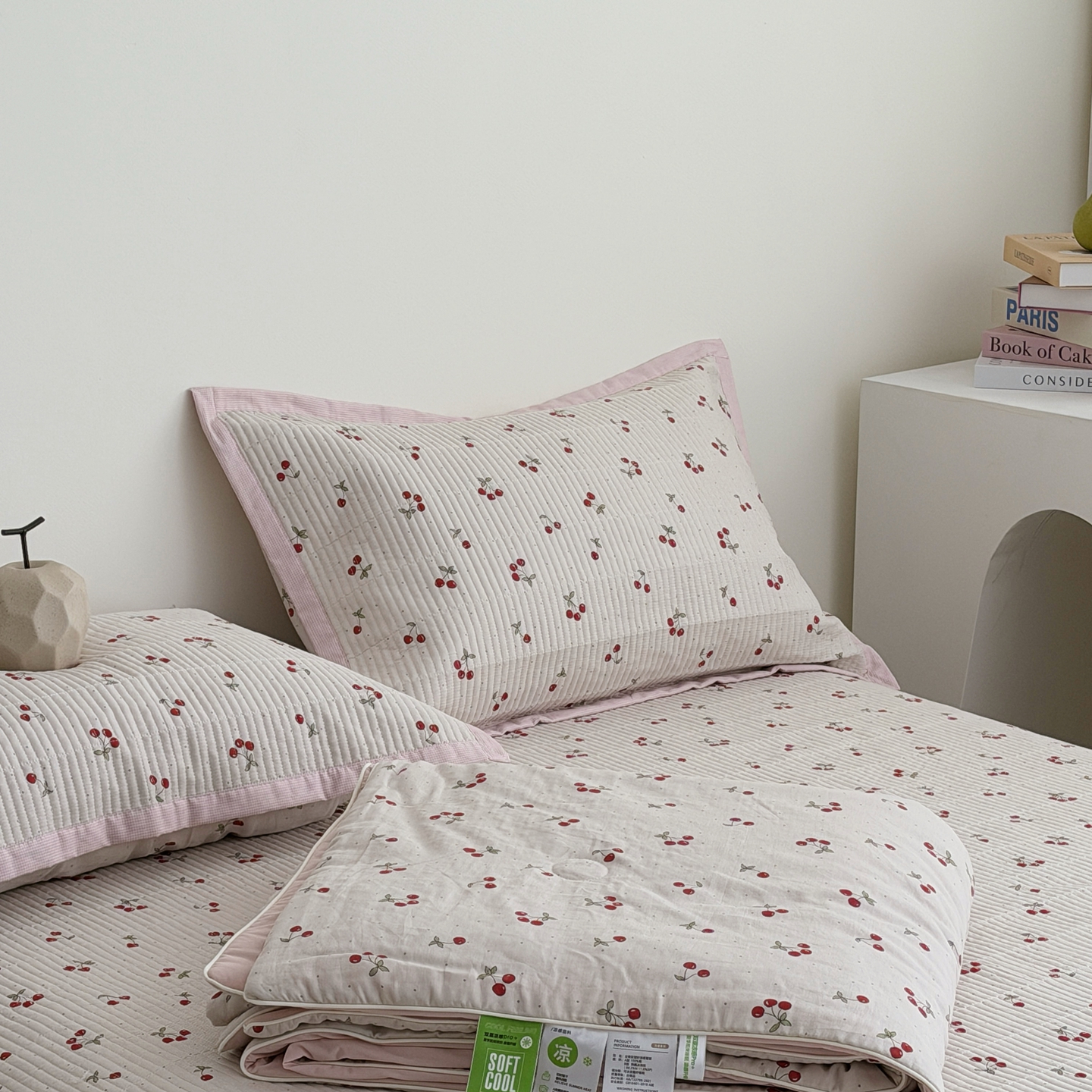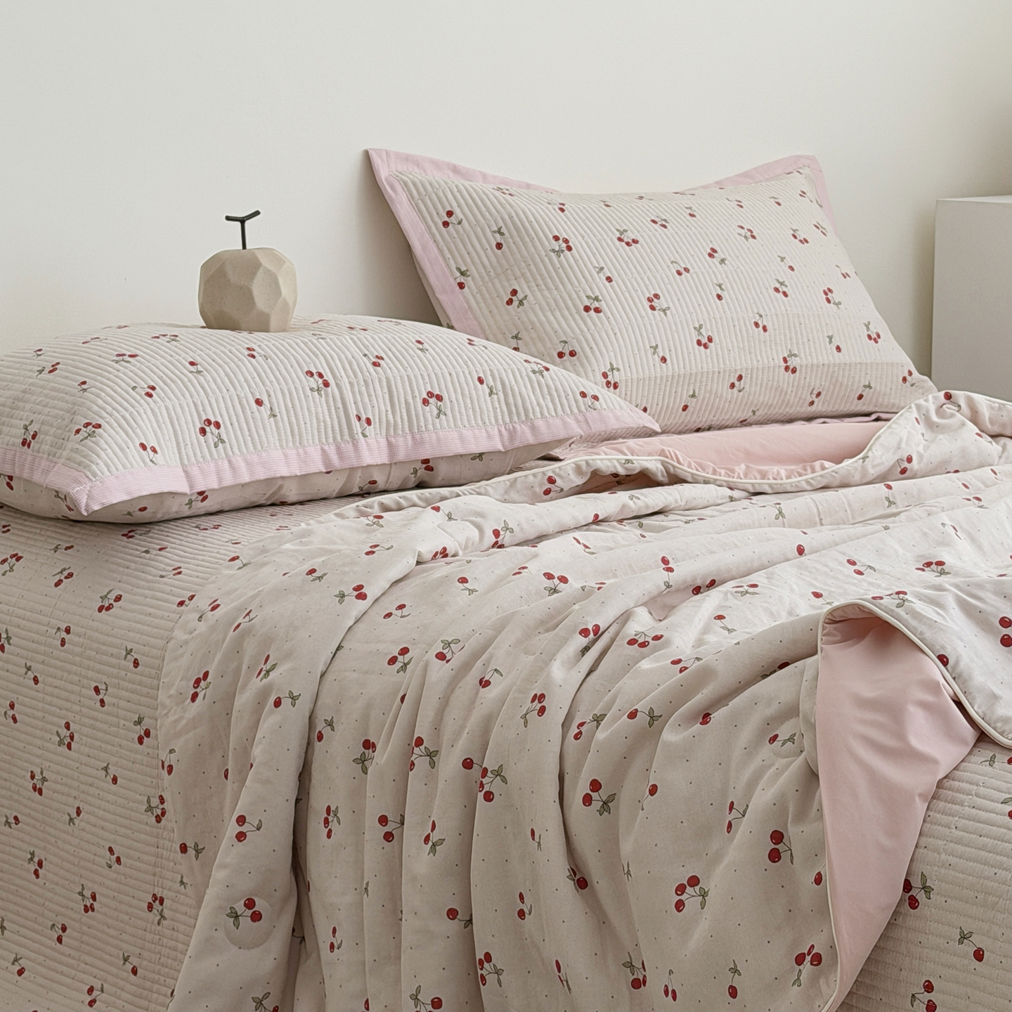 佰织鑫家居 2026新款全棉双层纱床盖款锦氨夏被四件套 可可樱桃