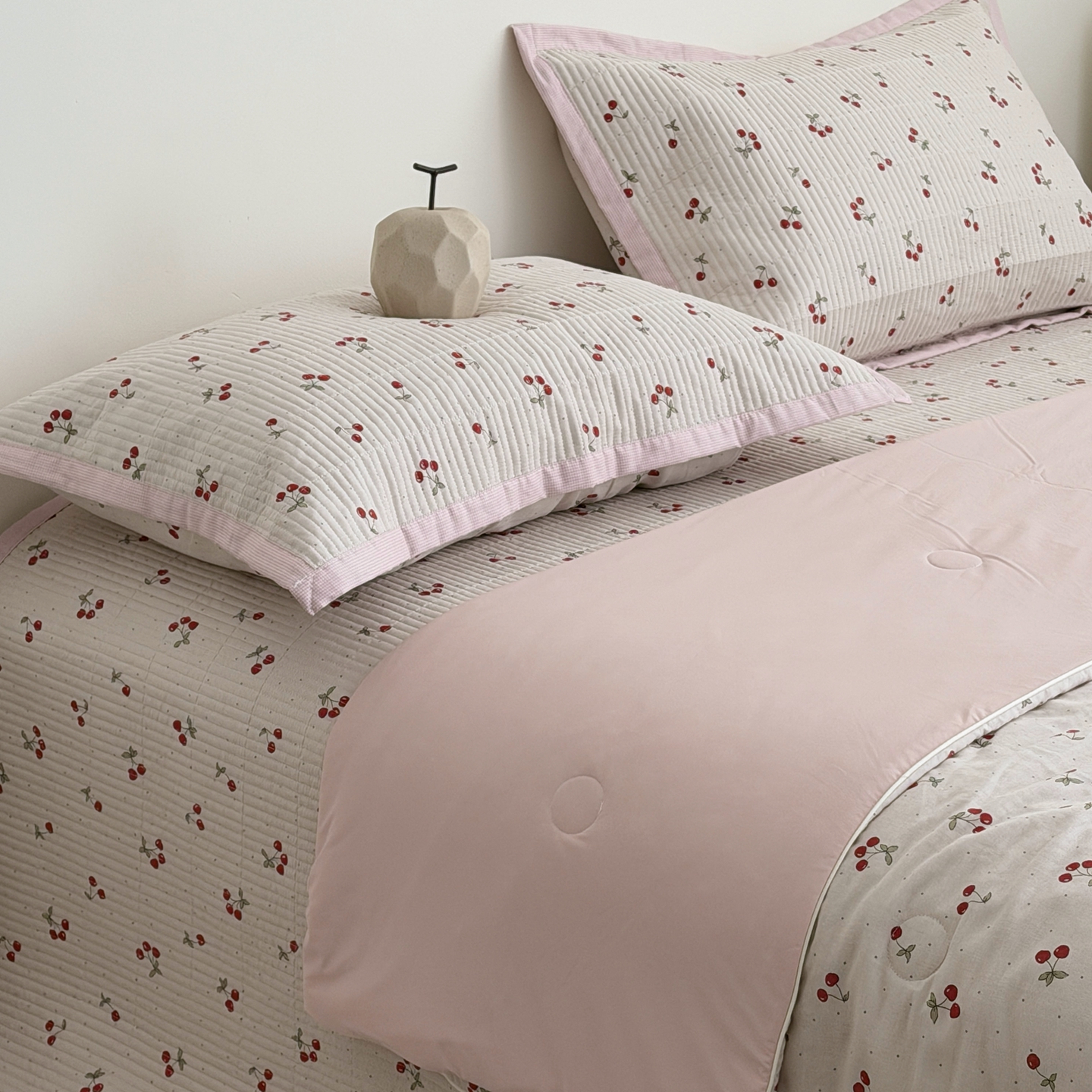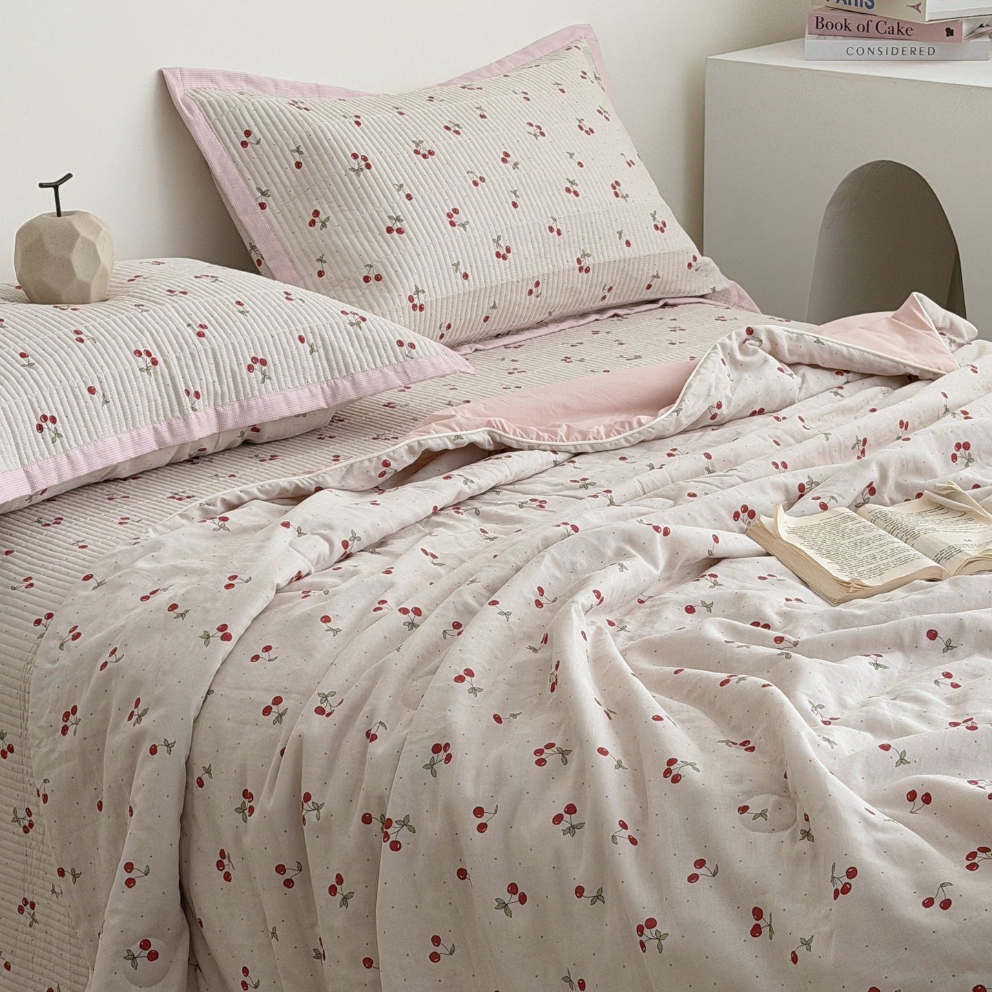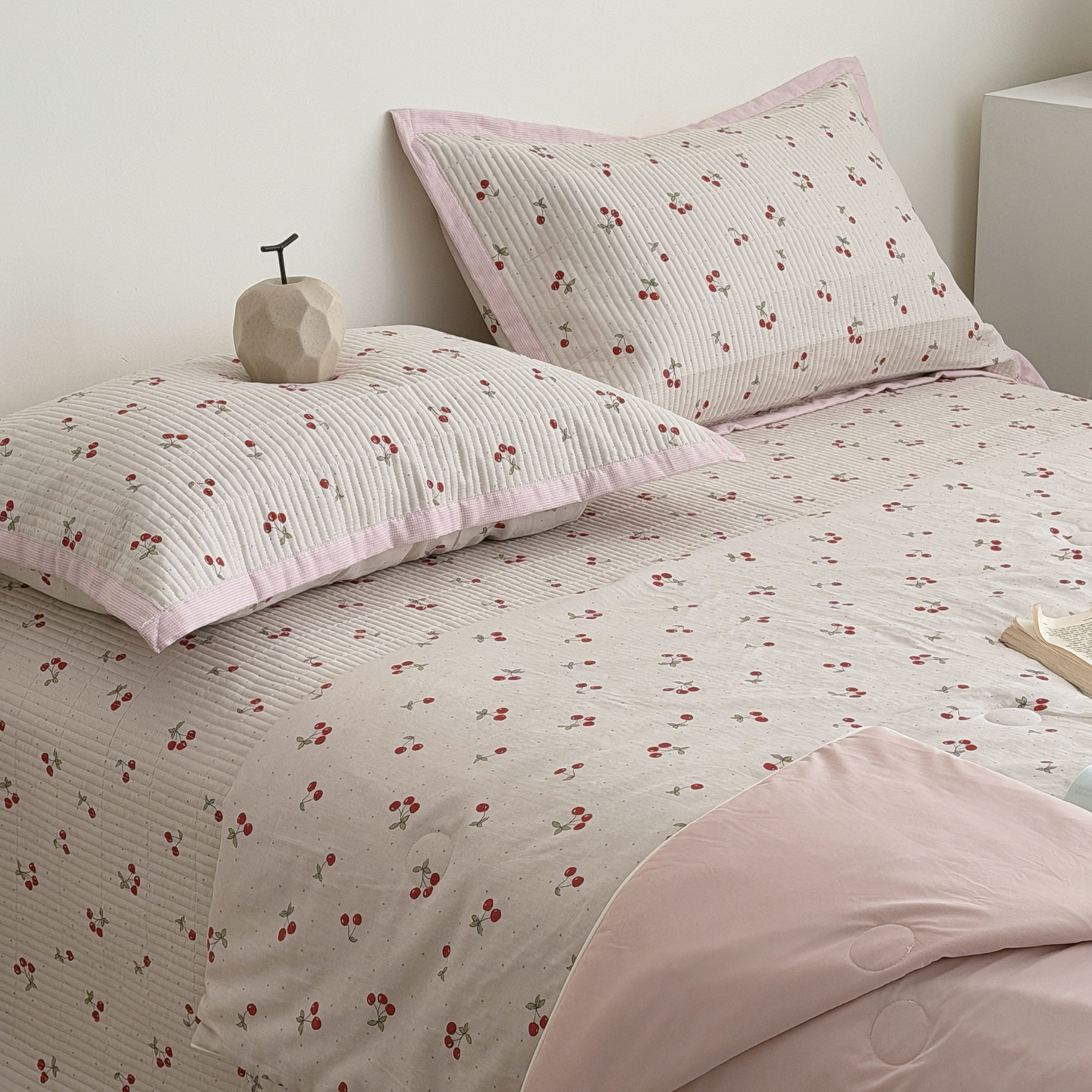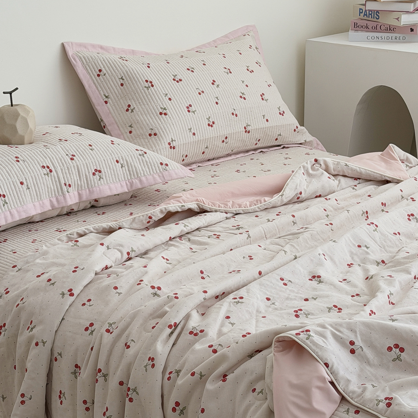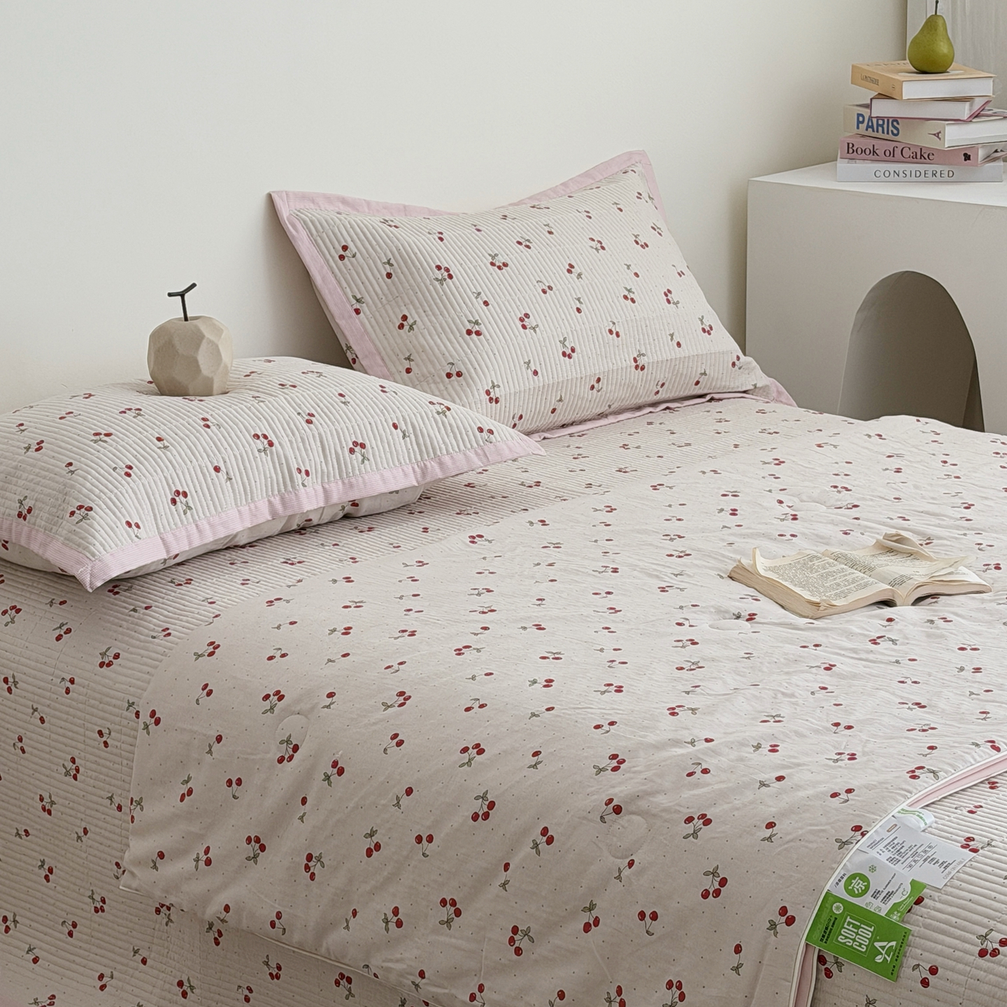 佰织鑫家居 2026新款全棉双层纱床盖款锦氨夏被四件套 可可樱桃