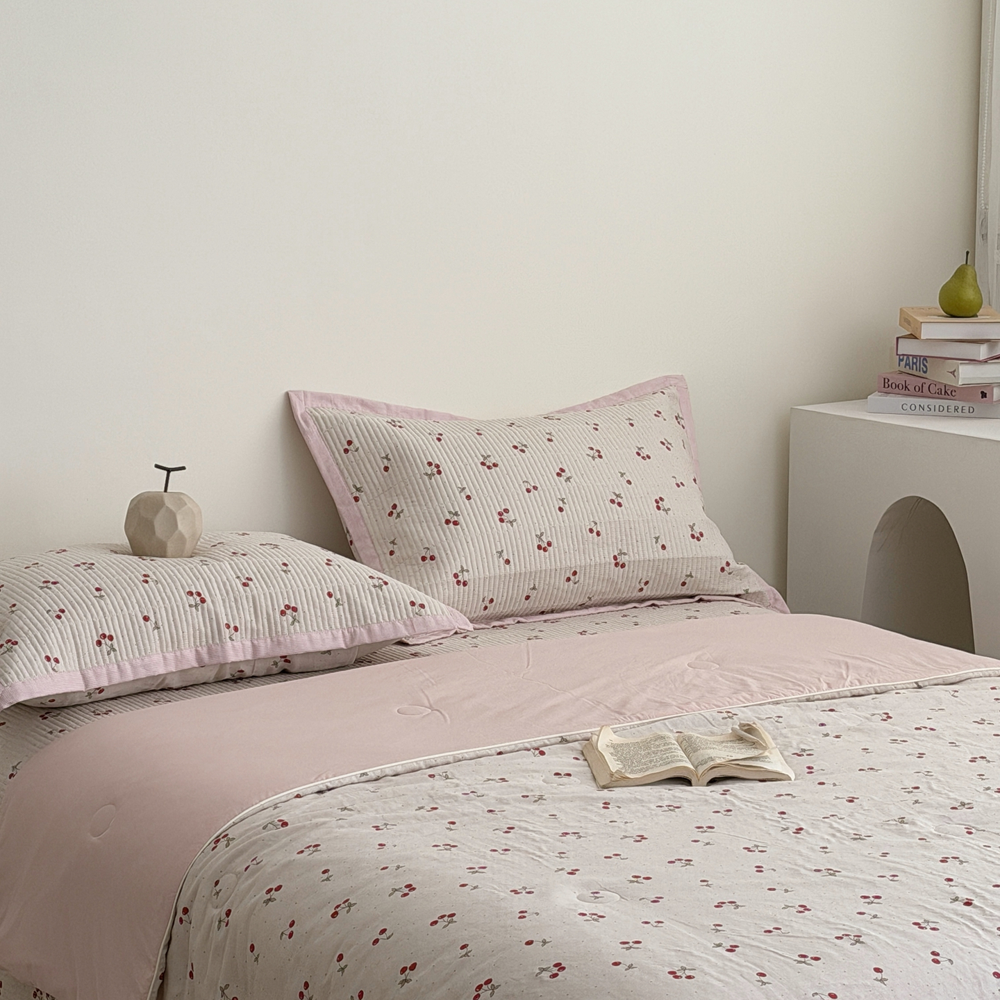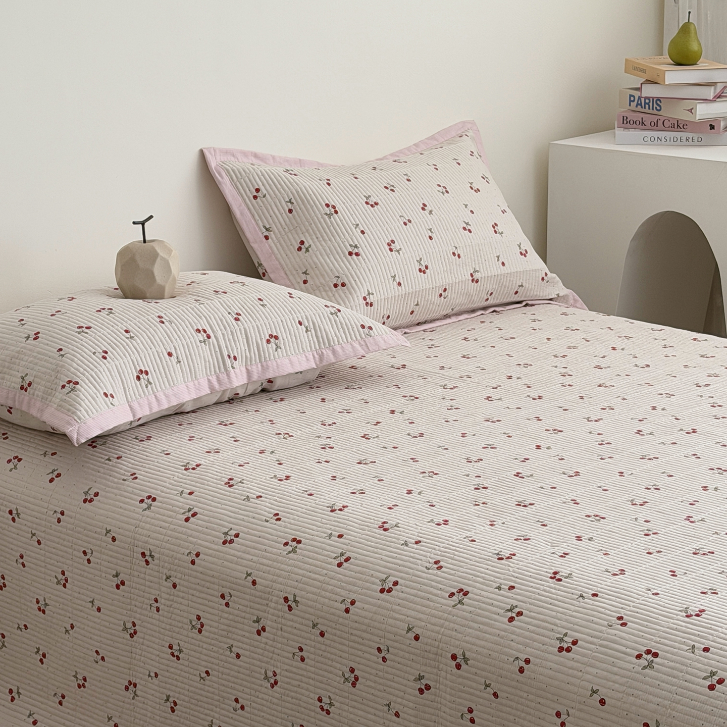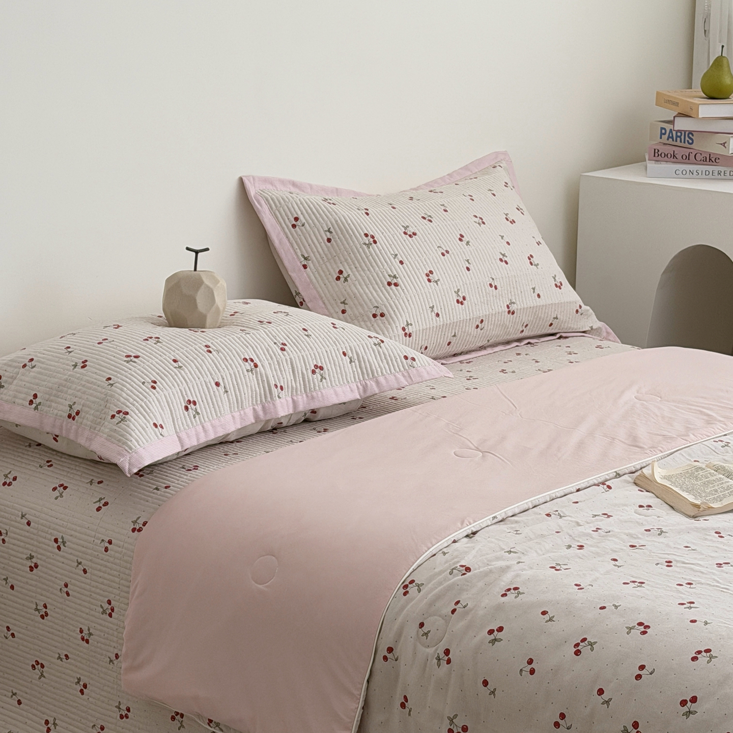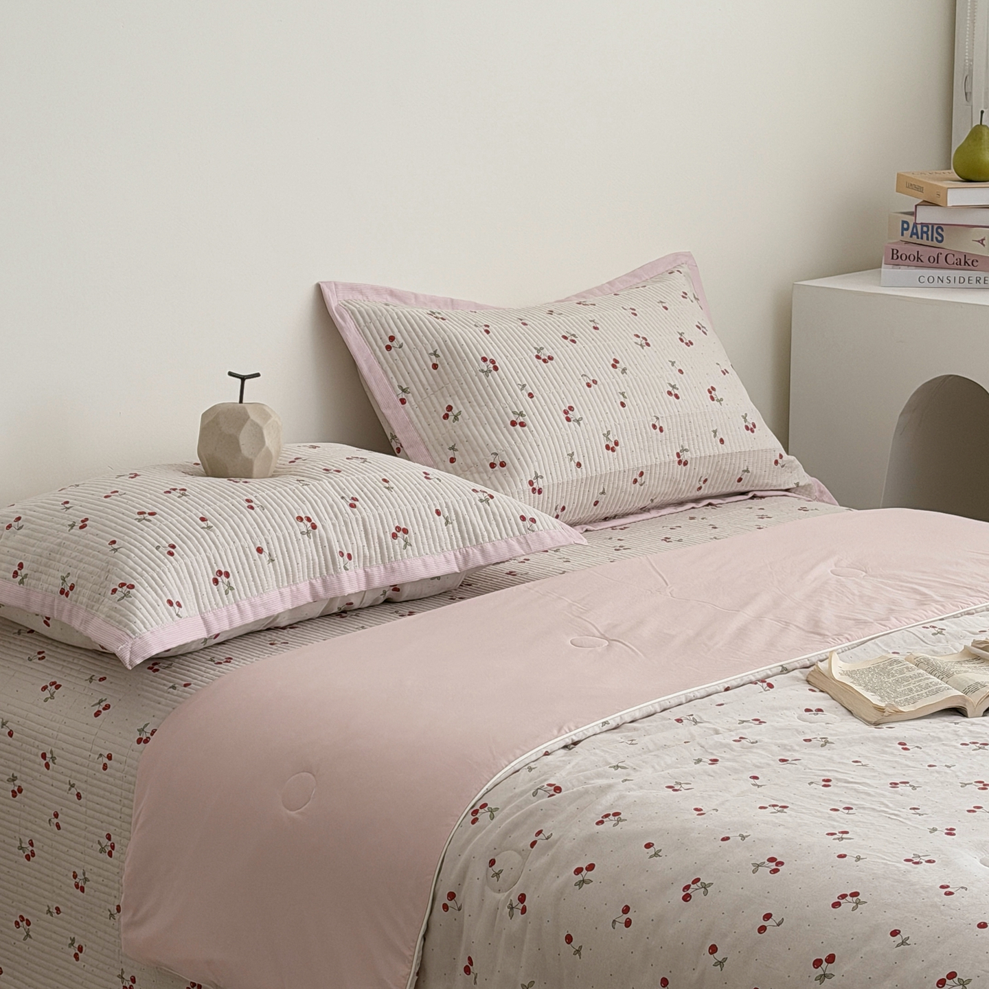 佰织鑫家居 2026新款全棉双层纱床盖款锦氨夏被四件套 可可樱桃