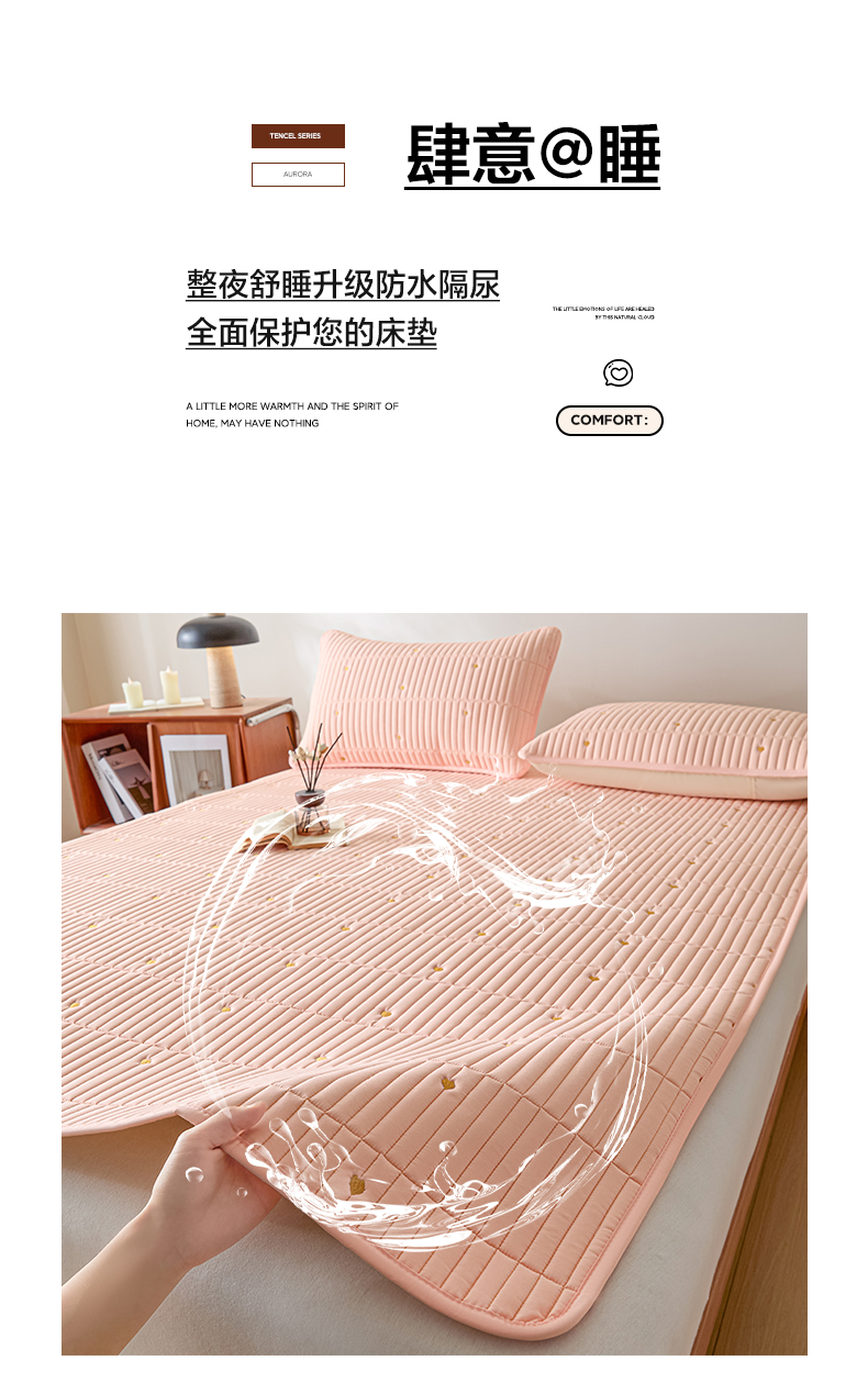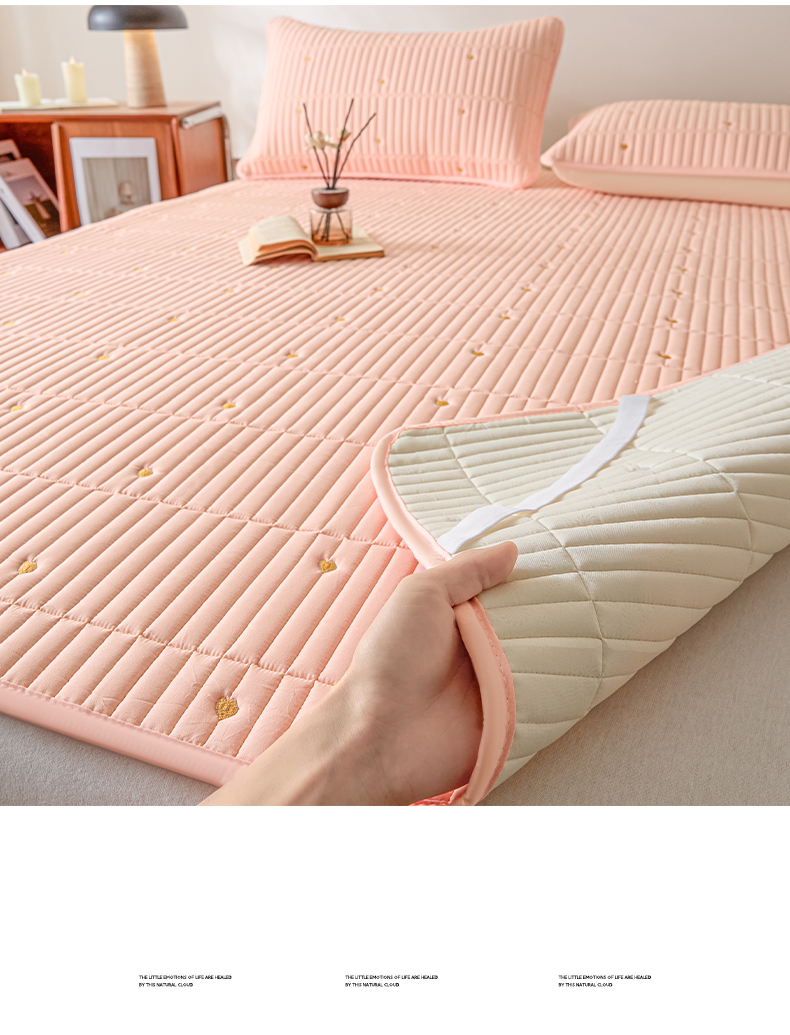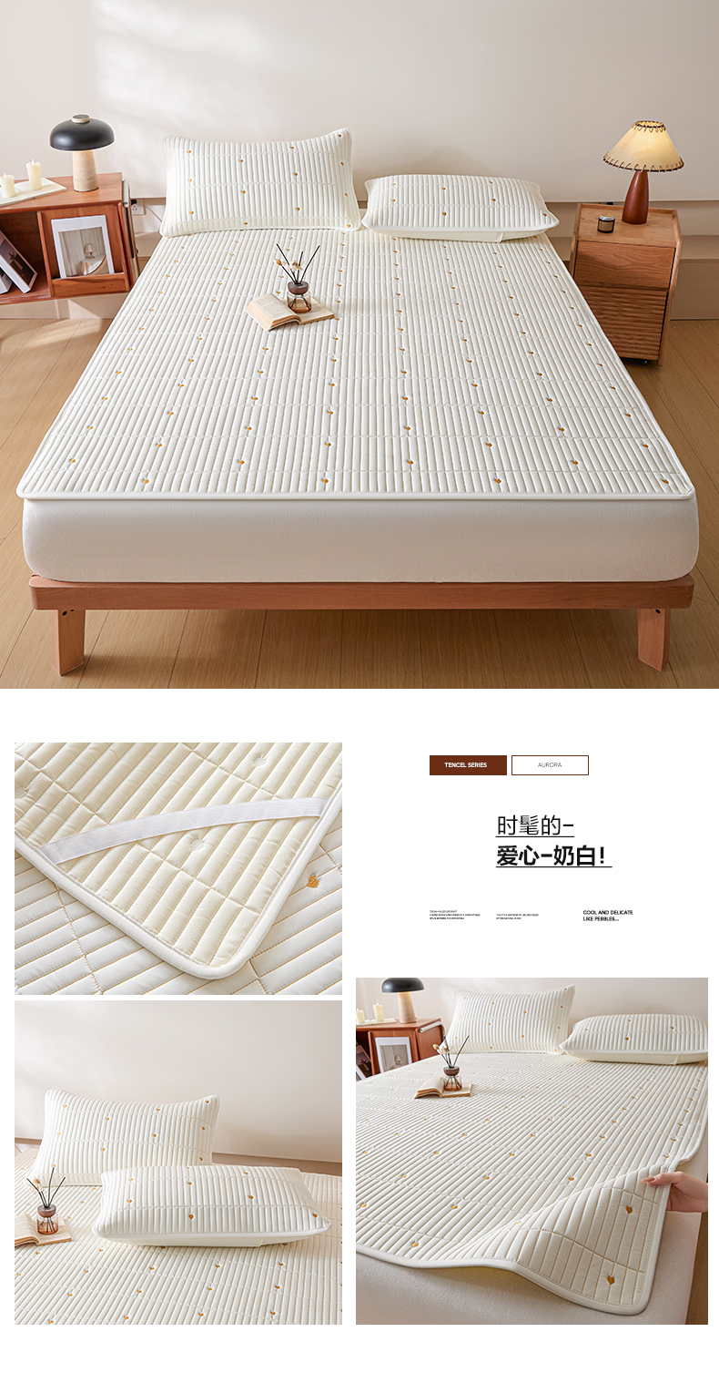 (总)摩妮卡 2026新款水洗棉夹棉防水刺绣爱心床褥床垫款三件套,爱心-奶白,爱心-撑粉,爱心-卡其,爱心-天蓝