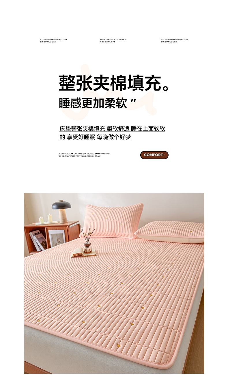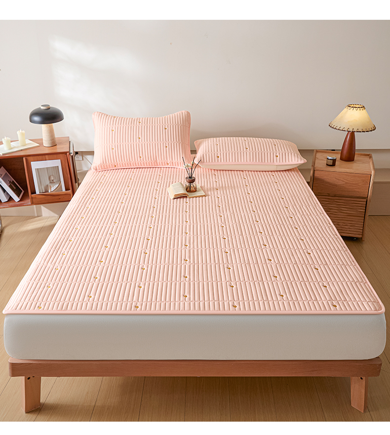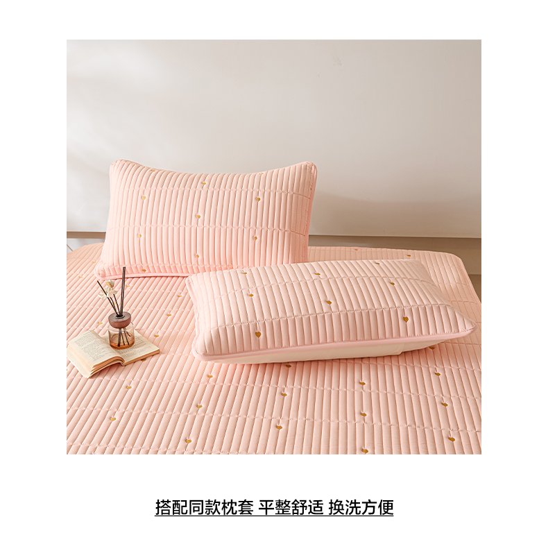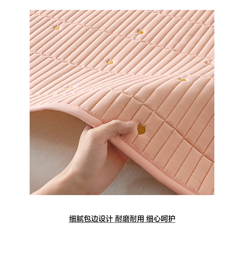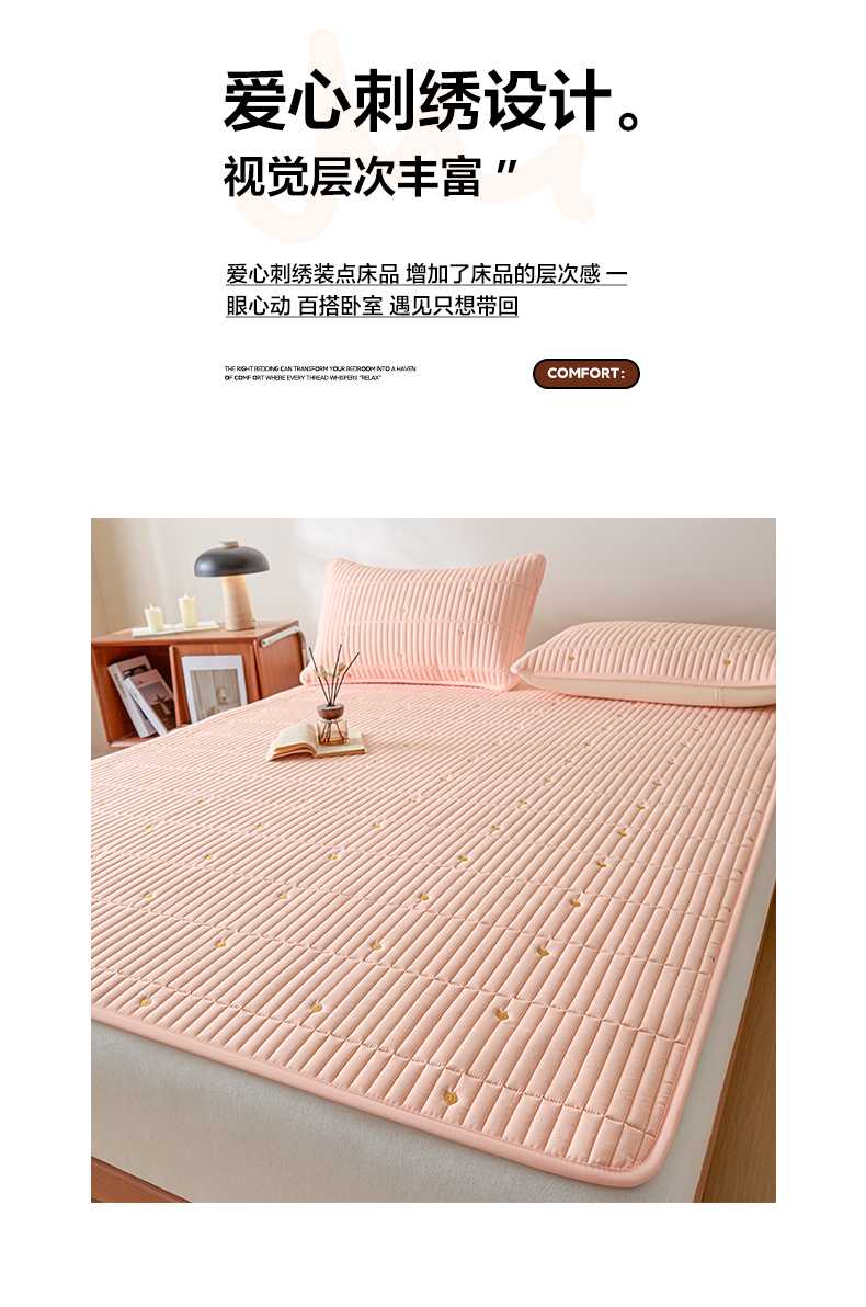 • 91家纺网 家纺一手货源 找家纺 摩妮卡 2026新款水洗棉夹棉防水刺绣爱心床褥床垫款三件套 爱心-撑粉