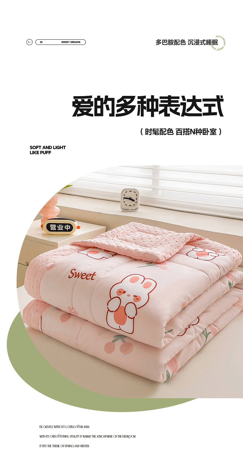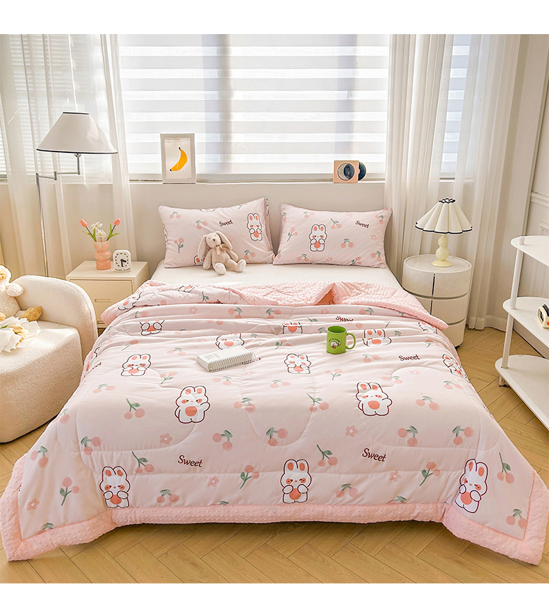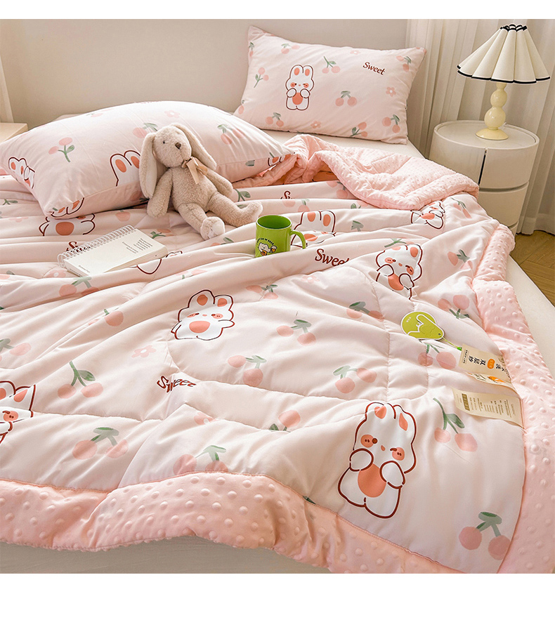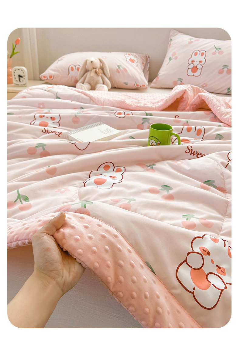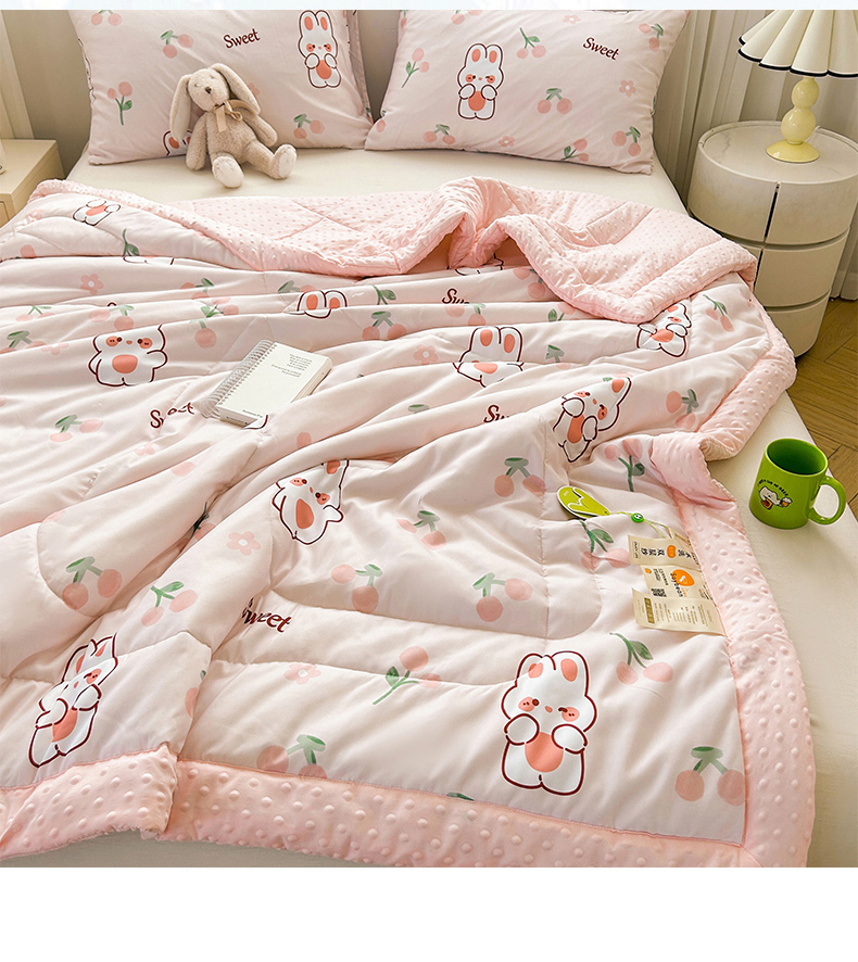 商品名称:悦织语 2026新款水洗棉双层纱豆豆被大豆夏凉被 樱桃兔兔