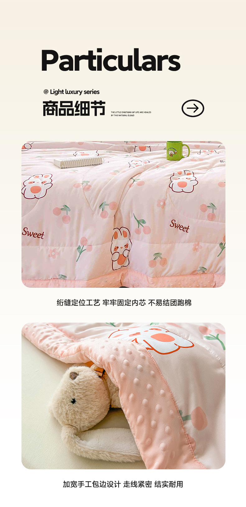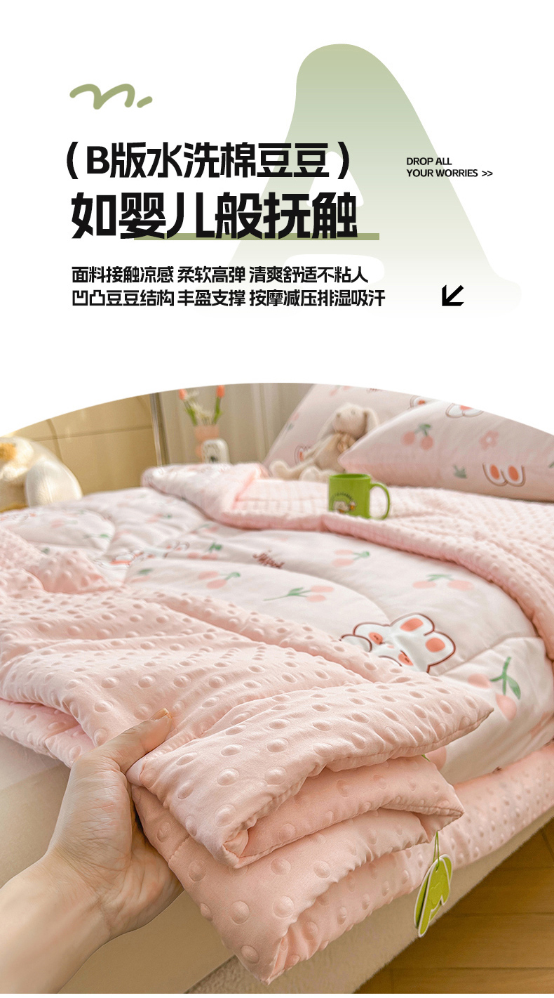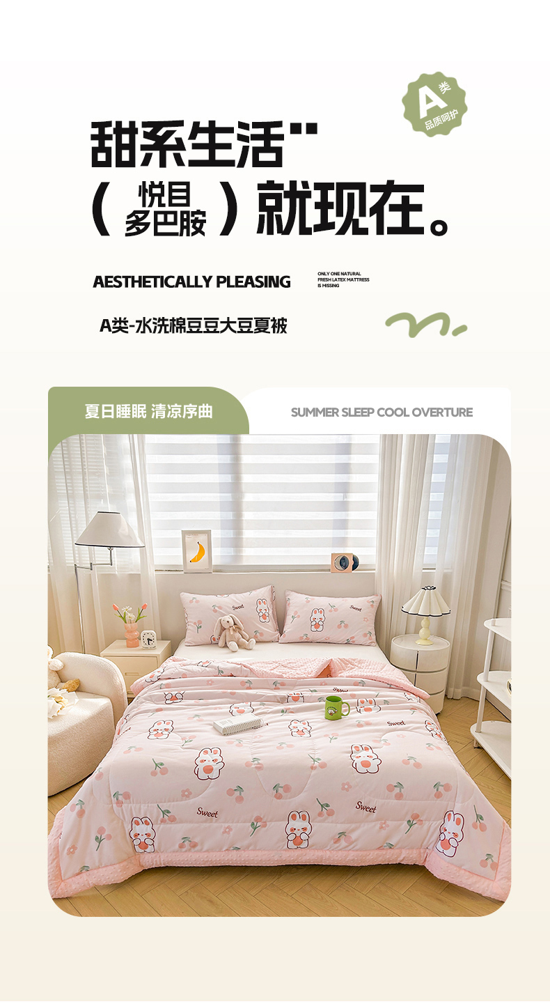 商品名称:悦织语 2026新款水洗棉双层纱豆豆被大豆夏凉被 樱桃兔兔