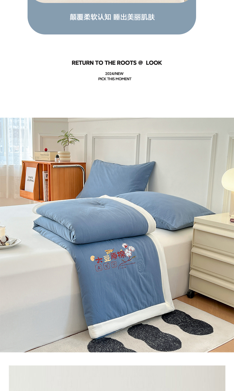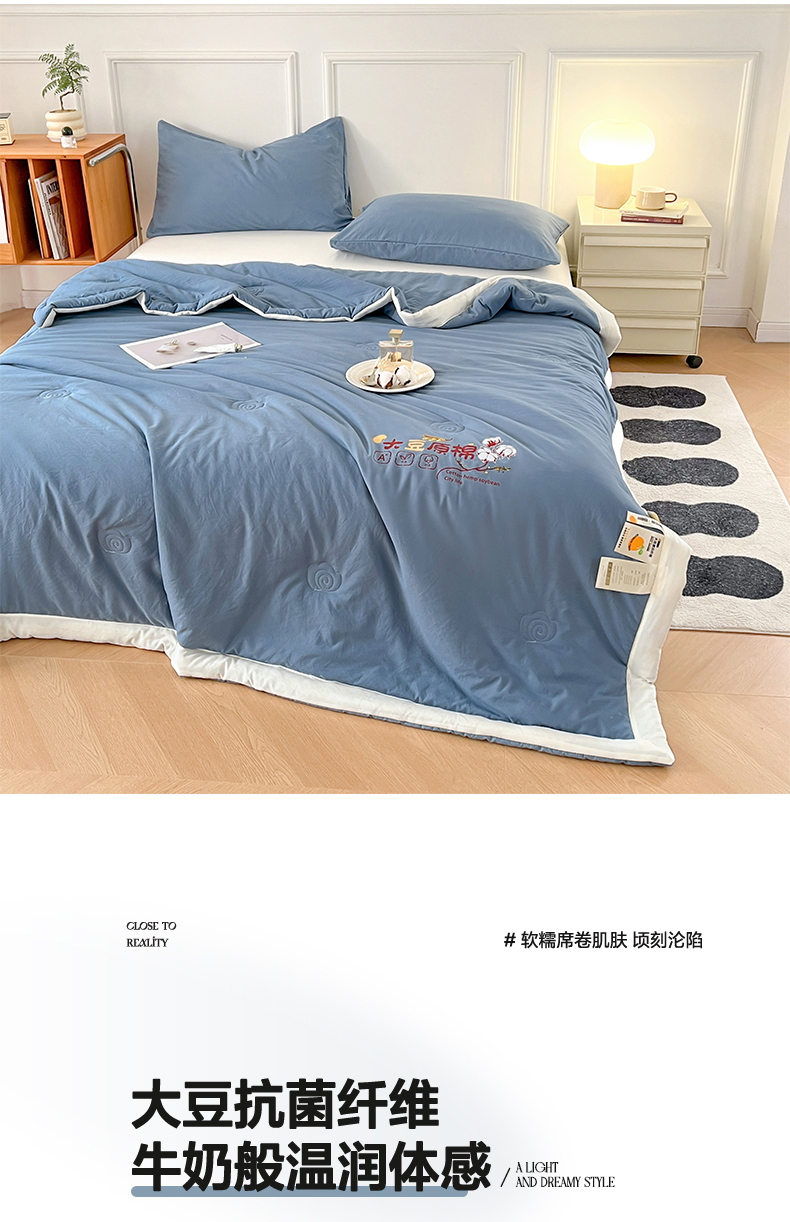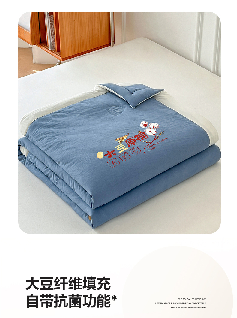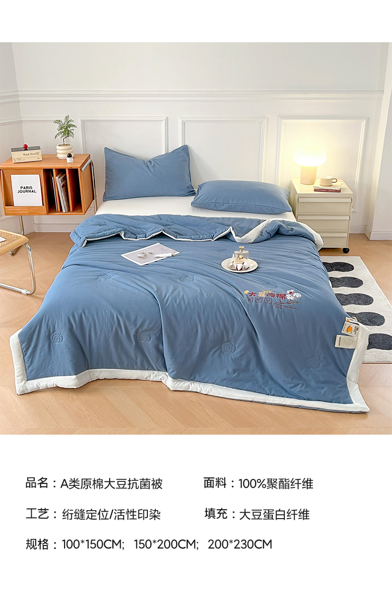 商品名称:悦织语 2026新款A类纯色原棉大豆夏被 原棉-蓝
