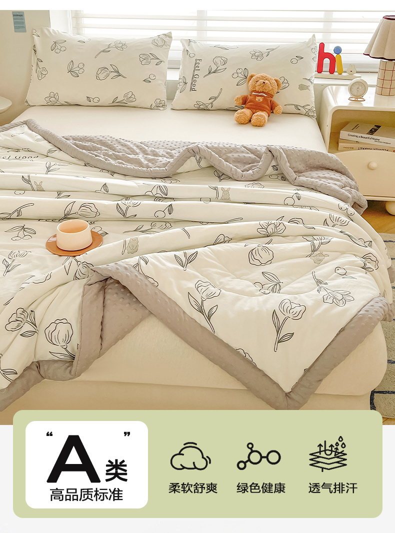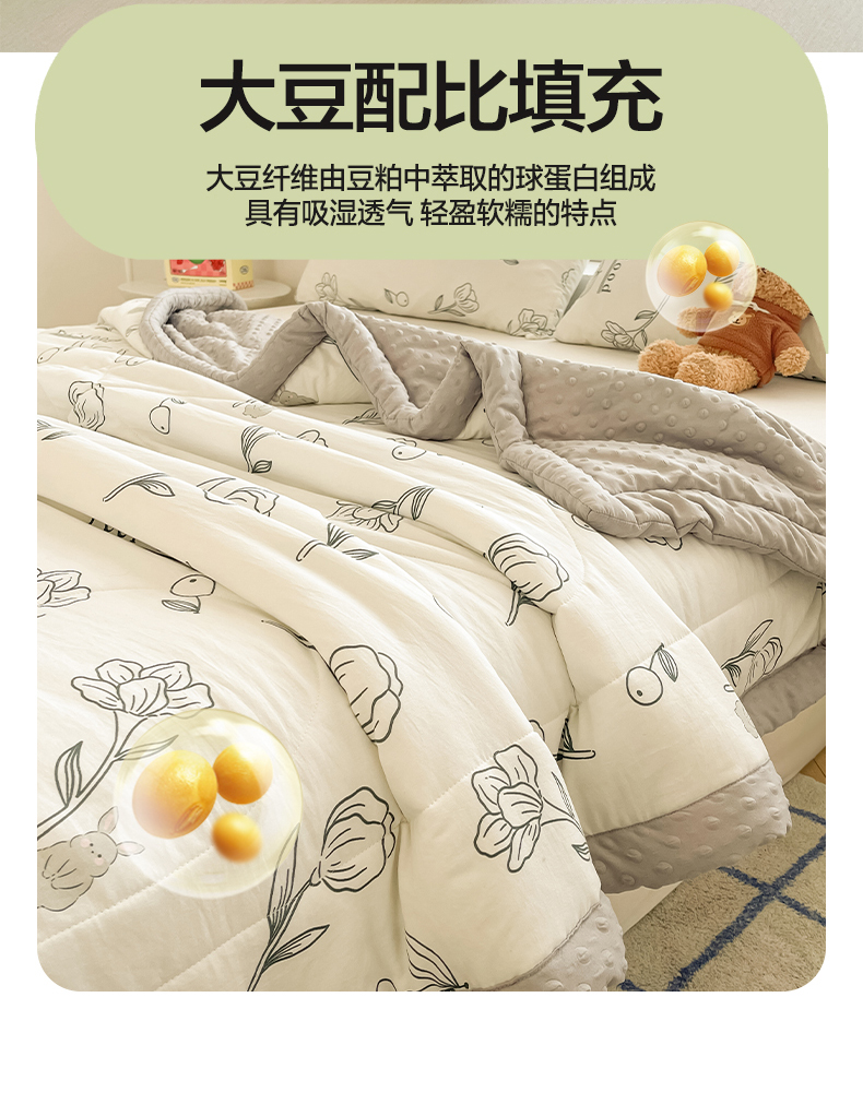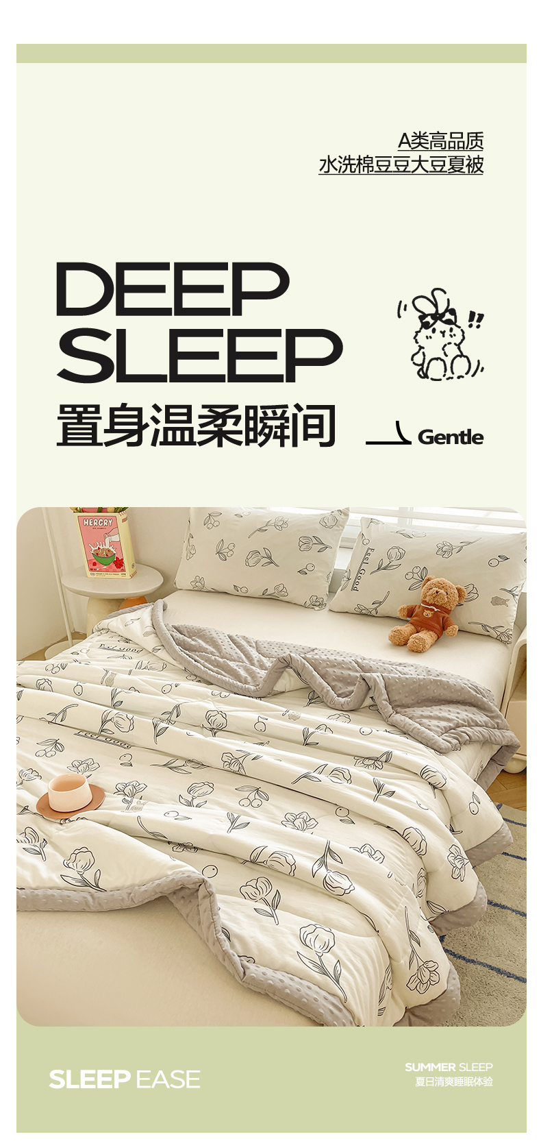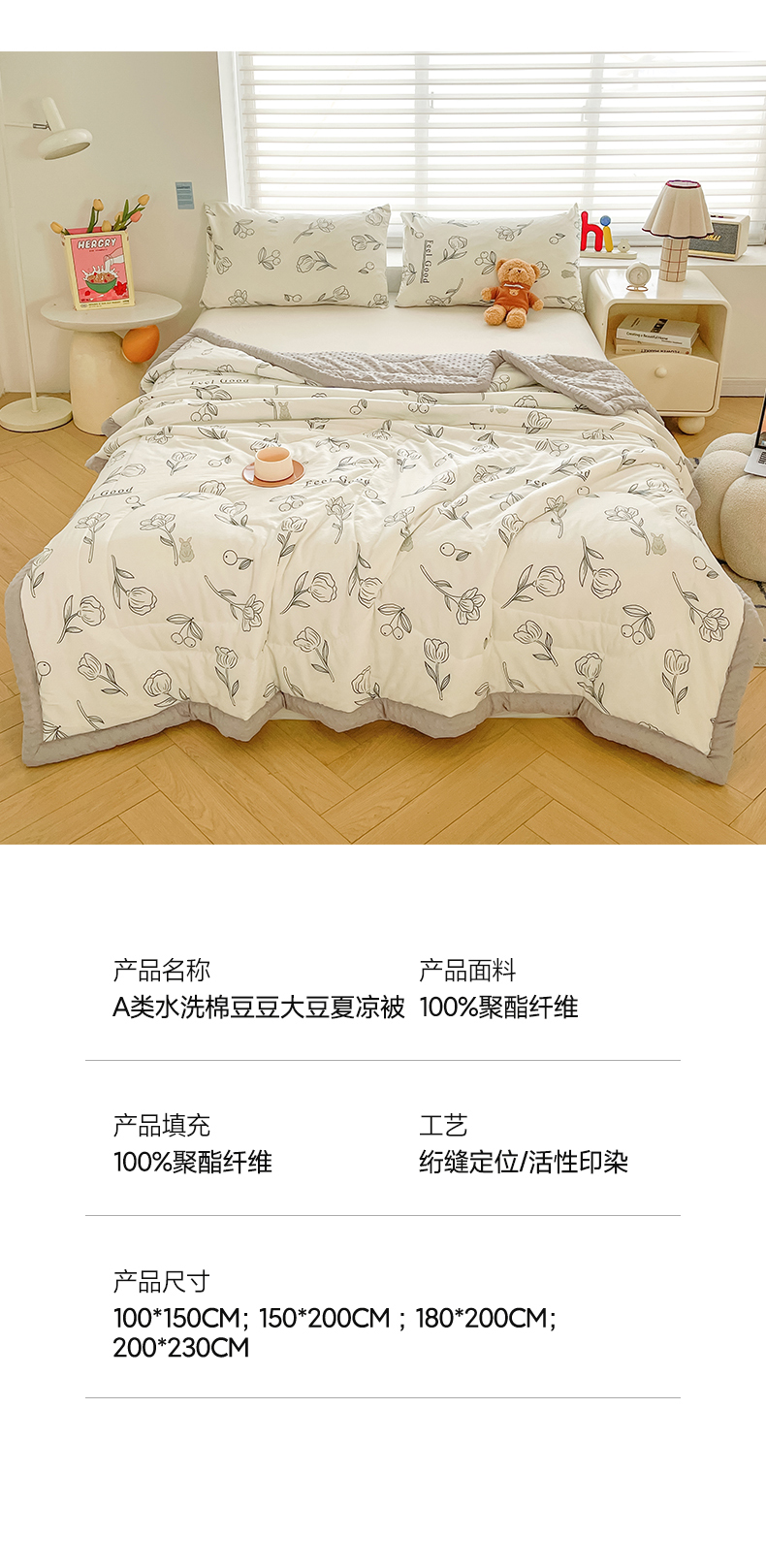 商品名称:悦织语 2026新款A类水洗棉双层纱豆豆被大豆夏凉被 春意