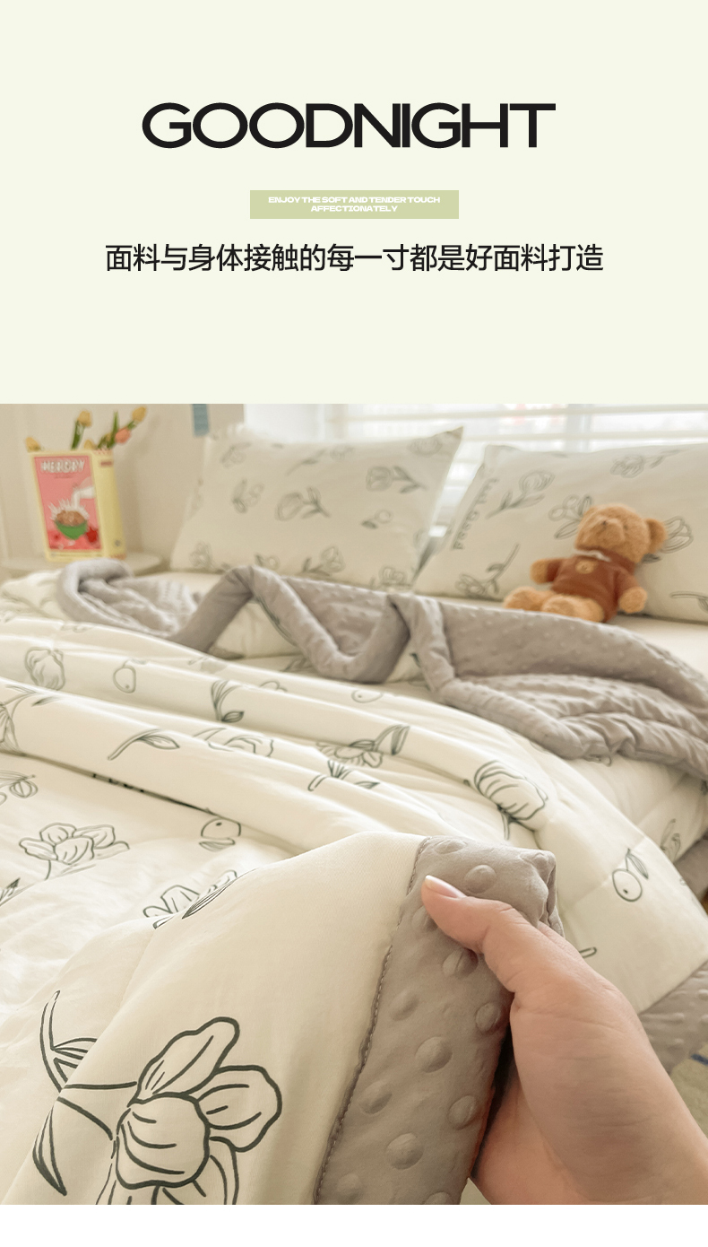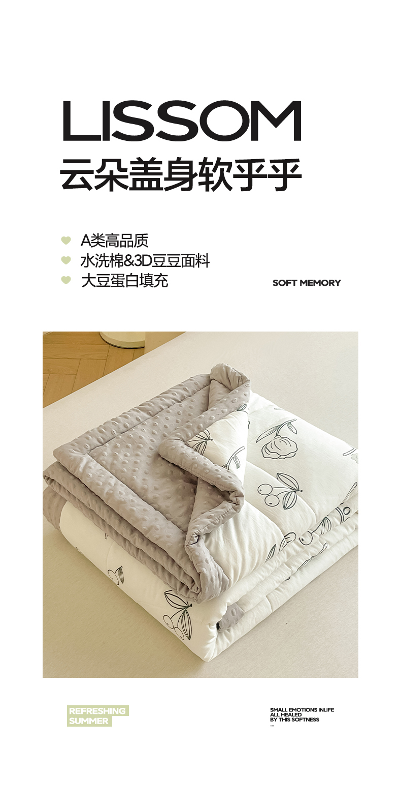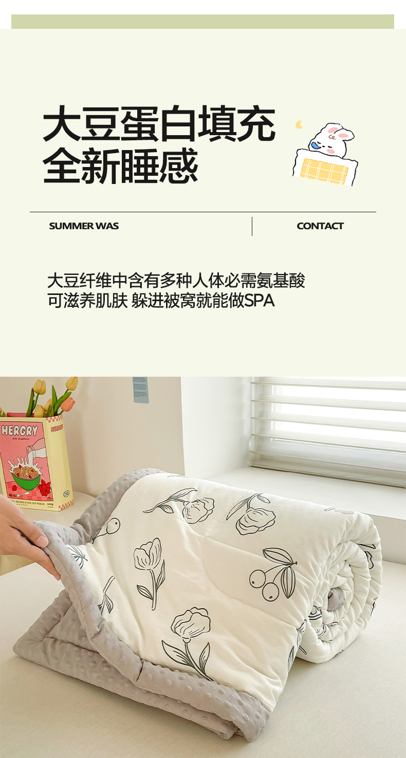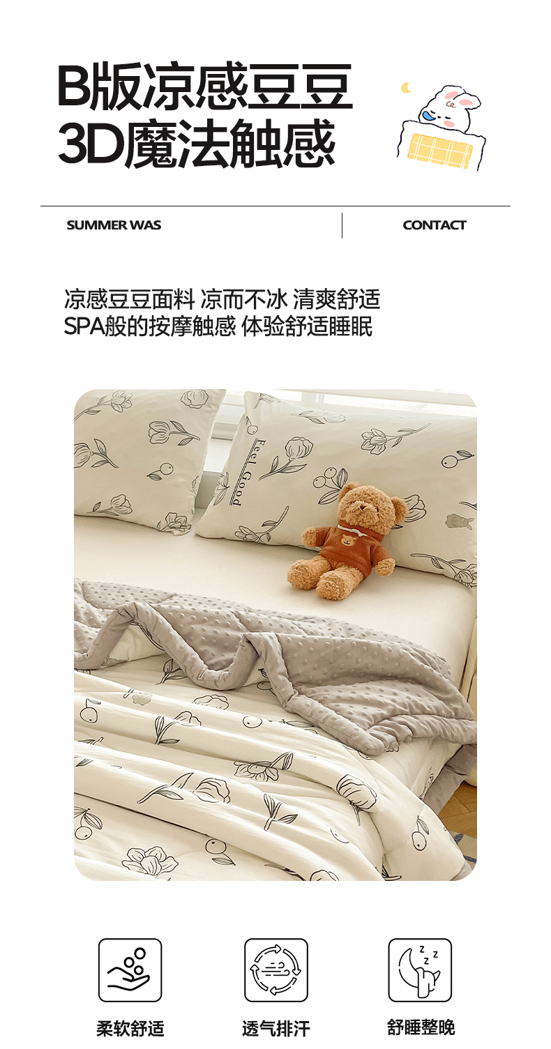商品名称:悦织语 2026新款A类水洗棉双层纱豆豆被大豆夏凉被 春意