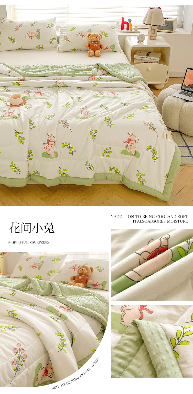 (总)悦织语 2026新款A类针织棉双层纱韩版夏被四件套空调被,甜心库洛,半亩花田,安琪拉兔,草莓熊,春日序,朵朵小花,绿色爱心,兔兔爱果子,晚安熊,希格文,小狗日记,紫风铃,紫萱