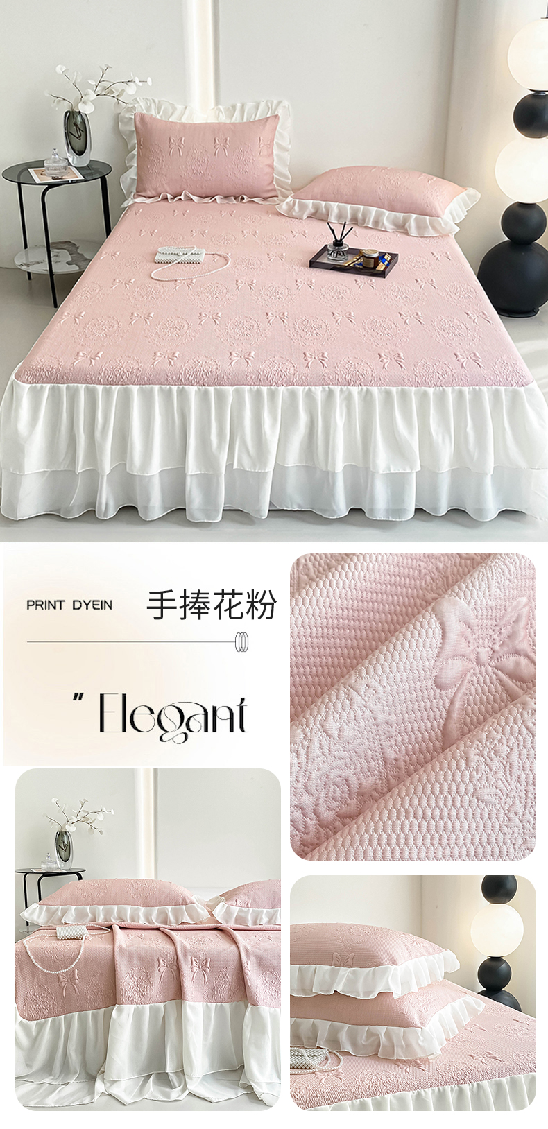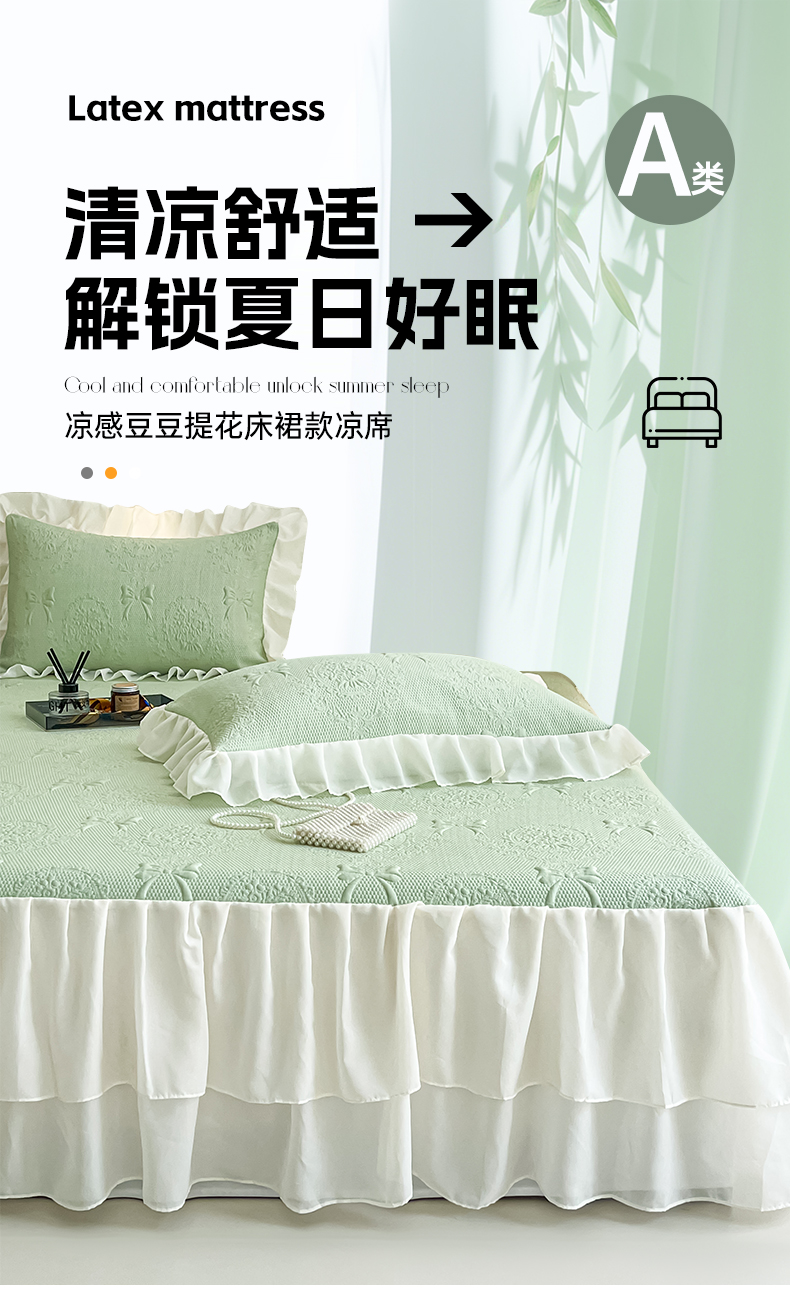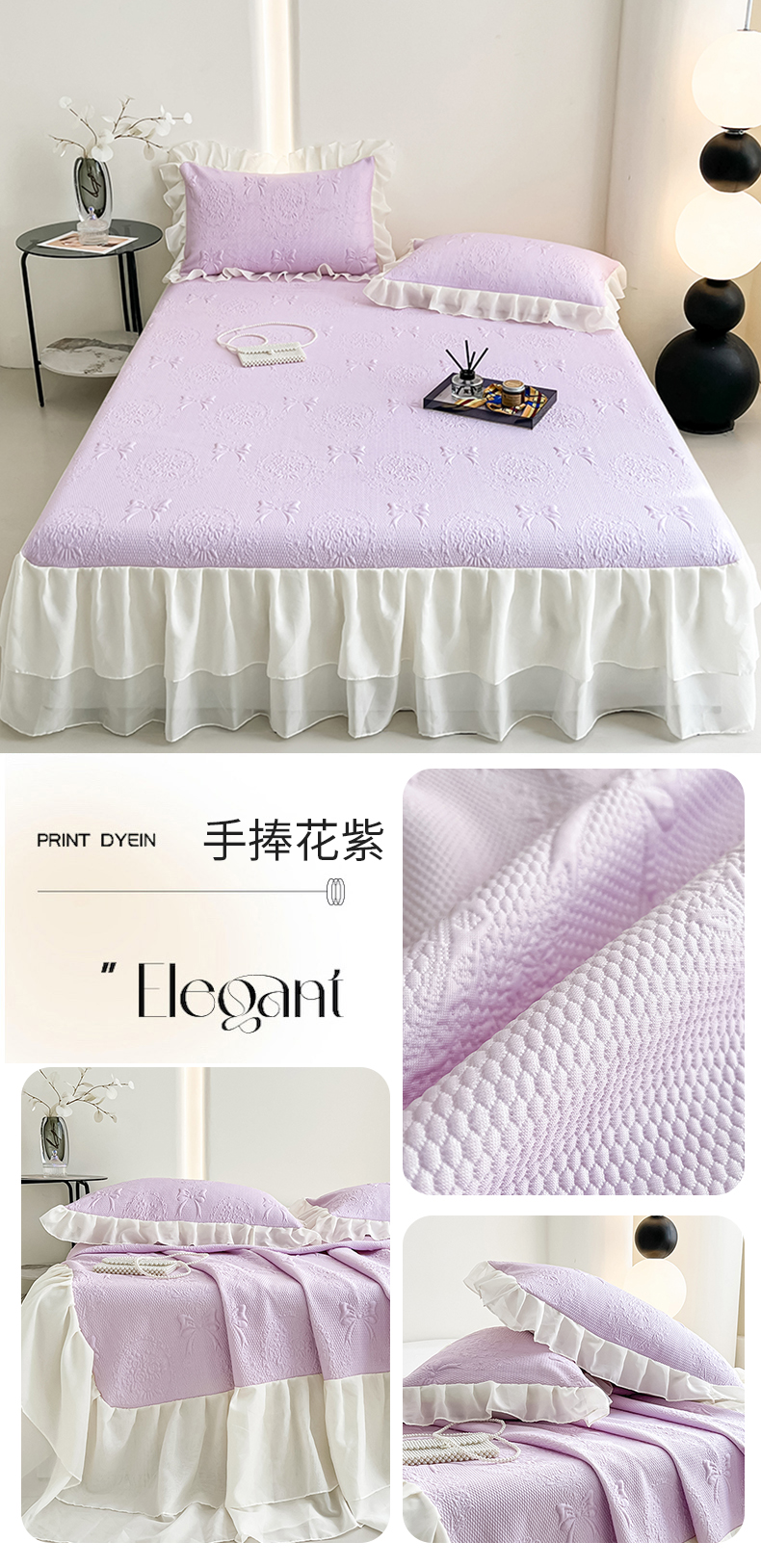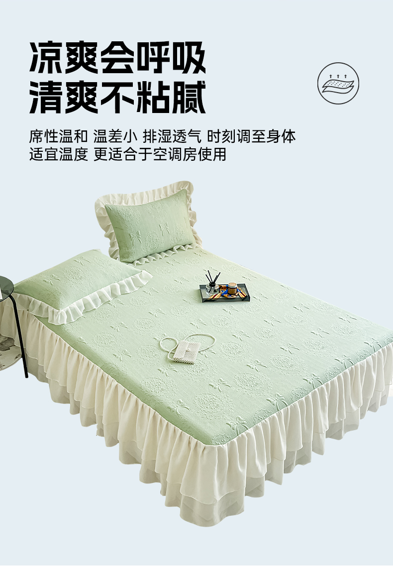 (总)佰亿莱 2026新款凉感豆豆提花床裙款凉席手捧花系列,手捧花粉,手捧花灰,手捧花蓝,手捧花绿,手捧花紫