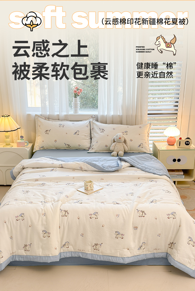 (总)西域种棉人·千百笠 2026新款A类新疆棉花夏凉被加宽包边水洗棉卡通印花吸湿透气棉花夏被空调被,云感宝莉马,云感波点,云感草莓,云感动物城,云感队列兔,云感红苹果,云感蝴蝶结,云感花彩,云感花彩兔,云感花梦女孩,云感花之蔓,云感晶咪,云感腊肠狗,云感萌仔,云感奶芙猫,云感派对,云感青苹果,云感瑞拉,云感生日狗,云感生日派,云感甜品乐园,云感小繁花,云感小熊,云感星星,云感星星草莓,云感幸运喵,云感叶初语,云感郁金兔