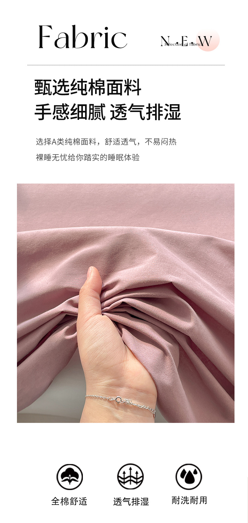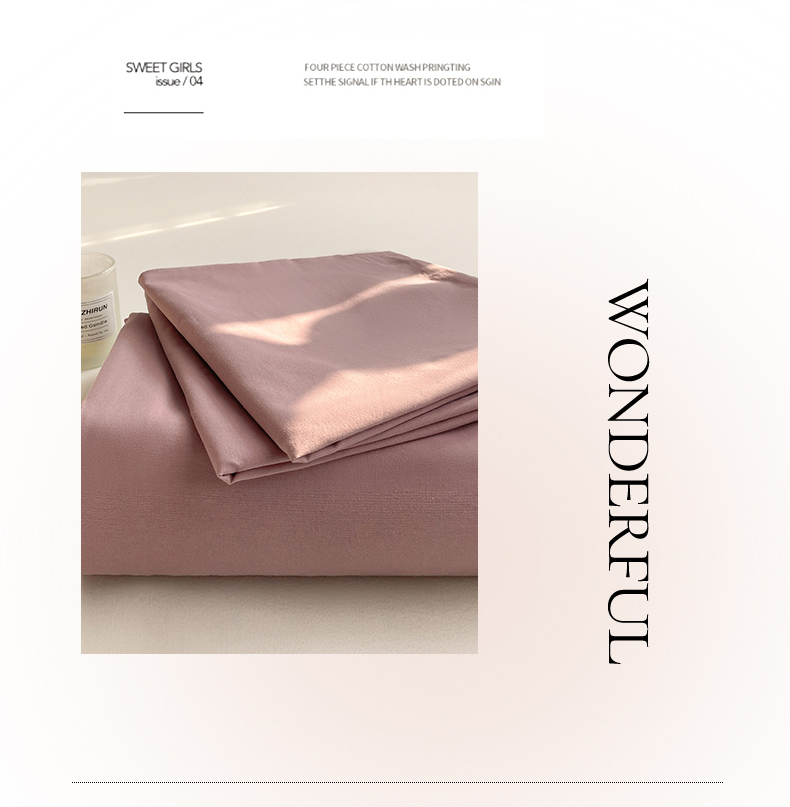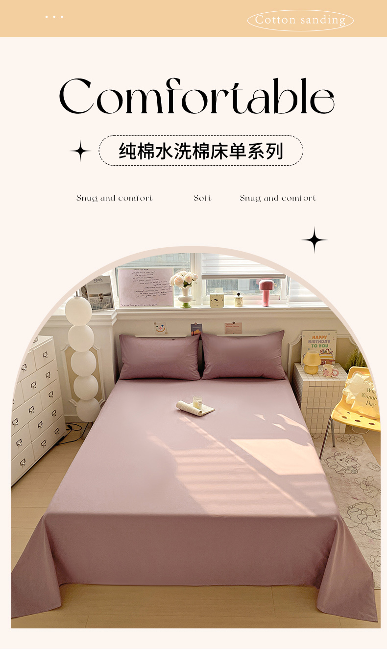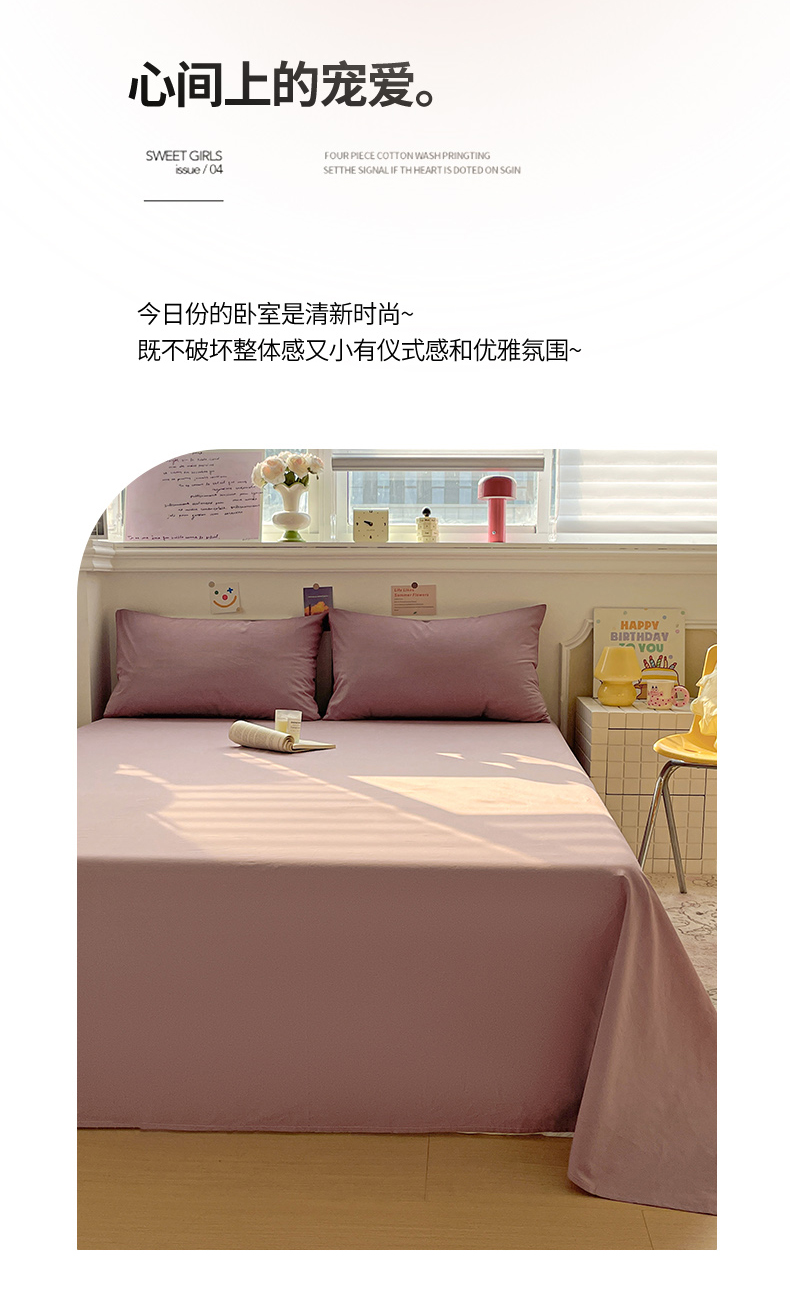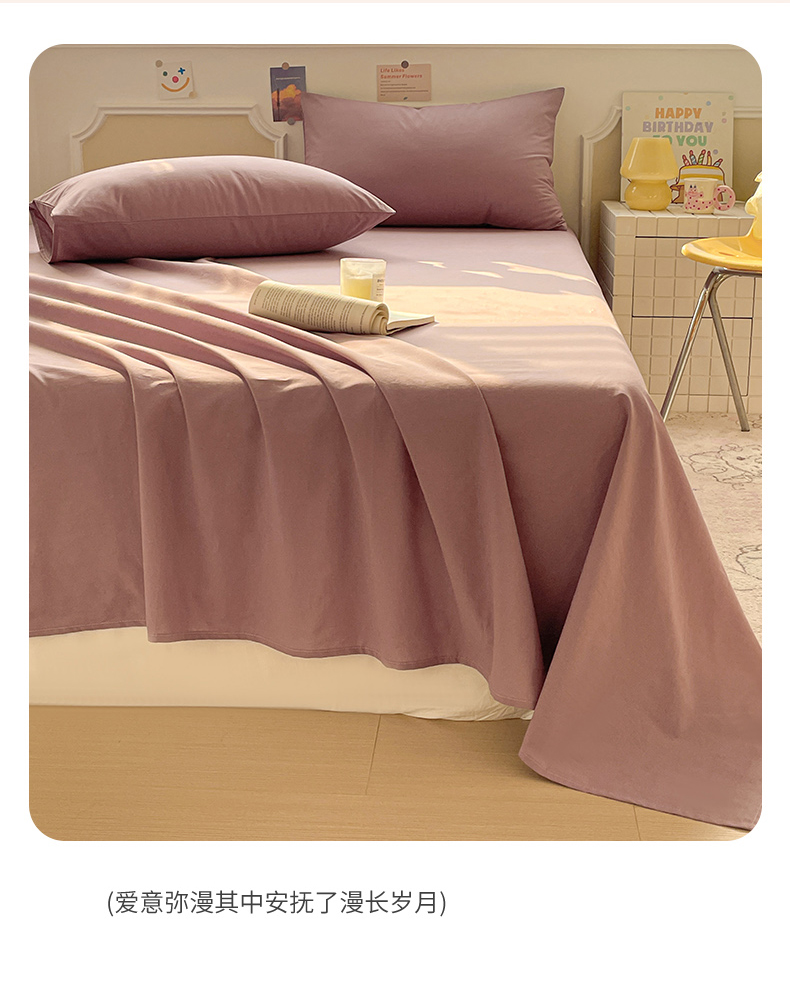 柠萌家居 2026年新款全棉A类母婴级水洗棉纯棉床单纯色系列单品 粉紫