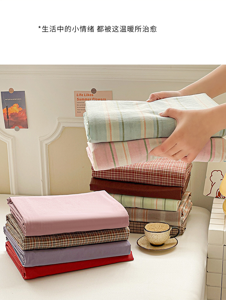 (总)柠萌家居 2026新款色织水洗棉四件套单被套,粉极细条,粉紫条,黄咖条,灰极细条,蓝咖条,绿极细条,绿紫条,米极细条,驼红条