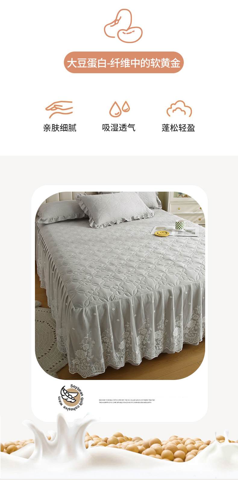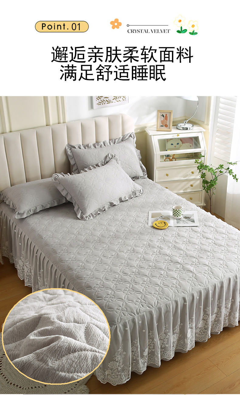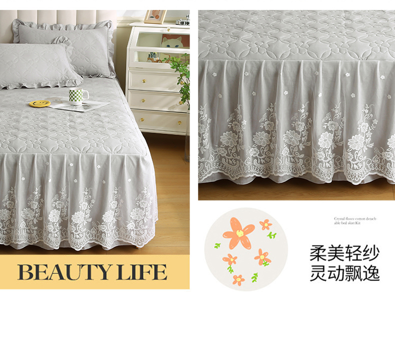• 91家纺网 家纺一手货源 找家纺 怡源梦 2026新款清新雅致单被套床裙单品床裙单件 星光灰