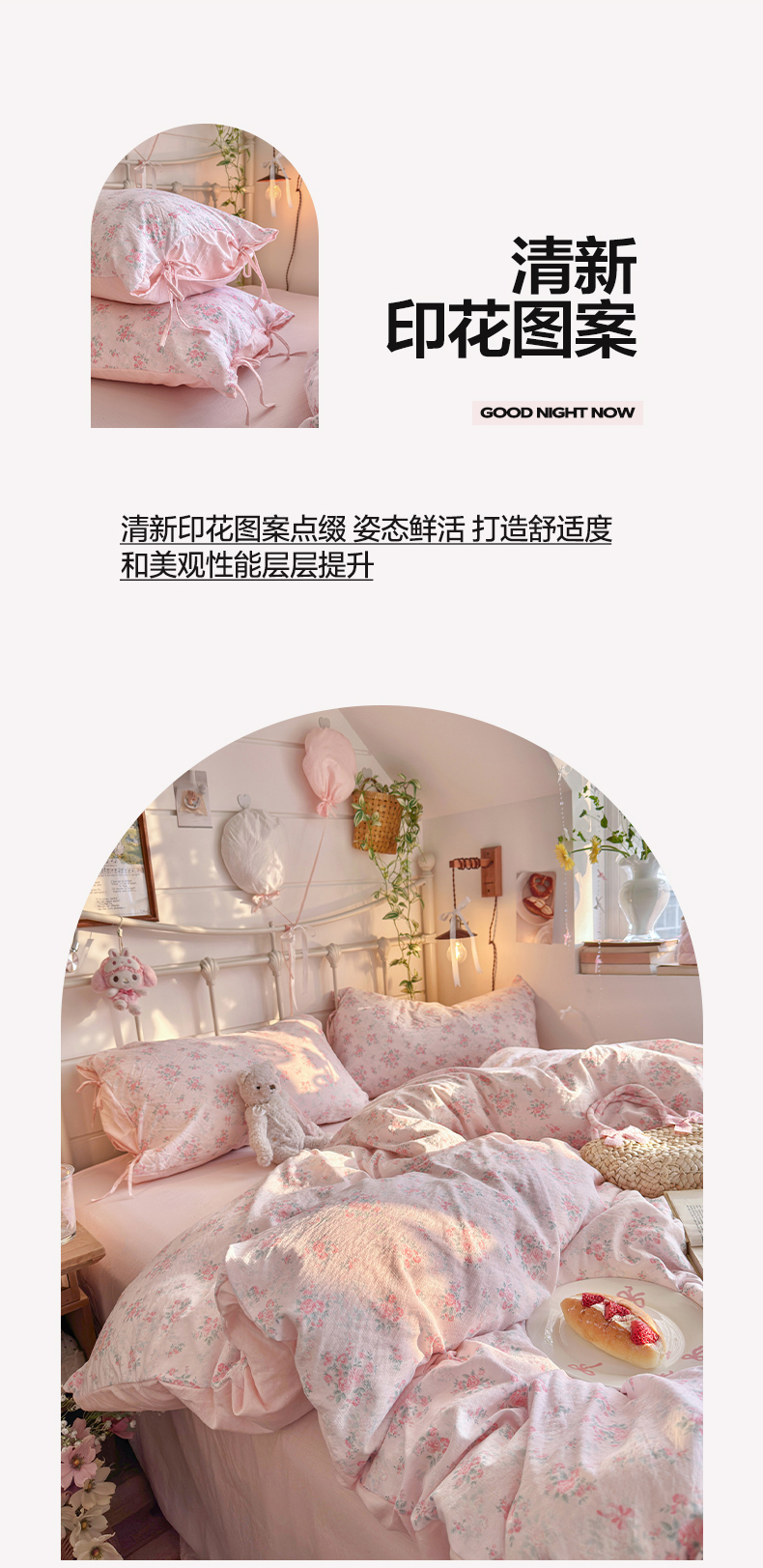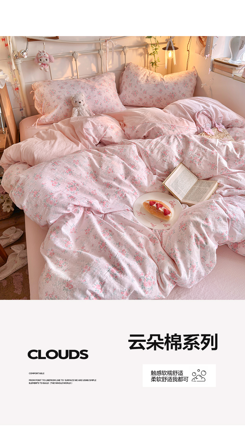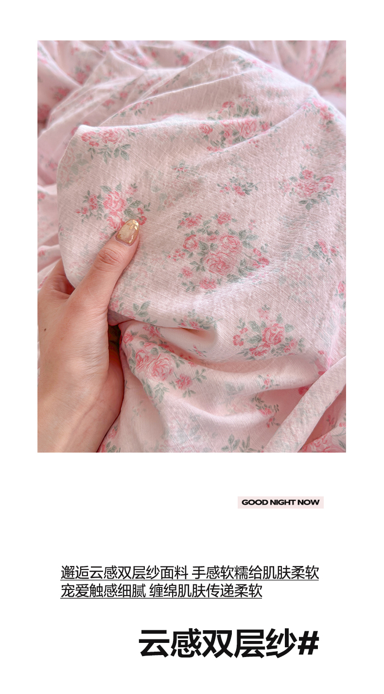 当前位置: 91家纺网 > 商品网购 > 床品套件 > 四件套 > 双层纱四件套 > 优选 2026新款小清新直播热卖款云感双层纱木棉四件套系列(小红书热款推荐) 花漾