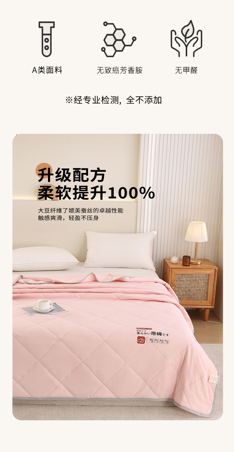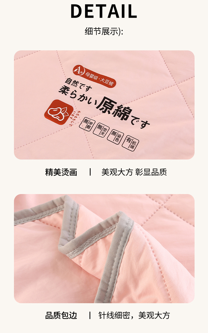 (总)薇玛仕 2023新款A类原棉太空大豆被冬被,太空-本白,太空-粉玉
