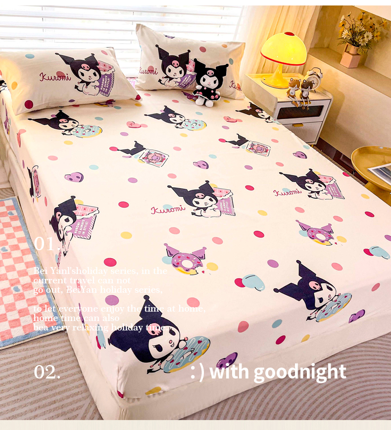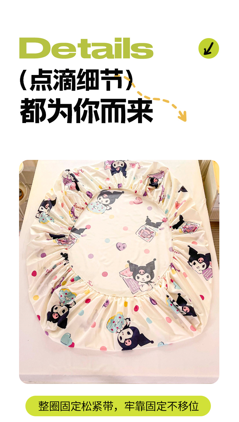 一电 2026新款跨境电商外贸四季卡通床笠单件床罩床垫套防滑套宿舍儿童床单定制-第七批 波点库洛米