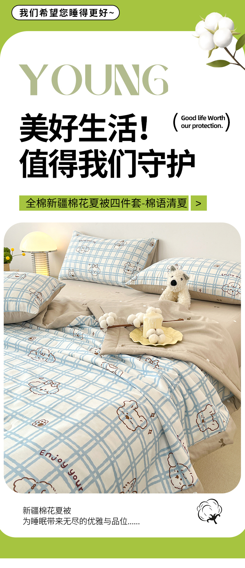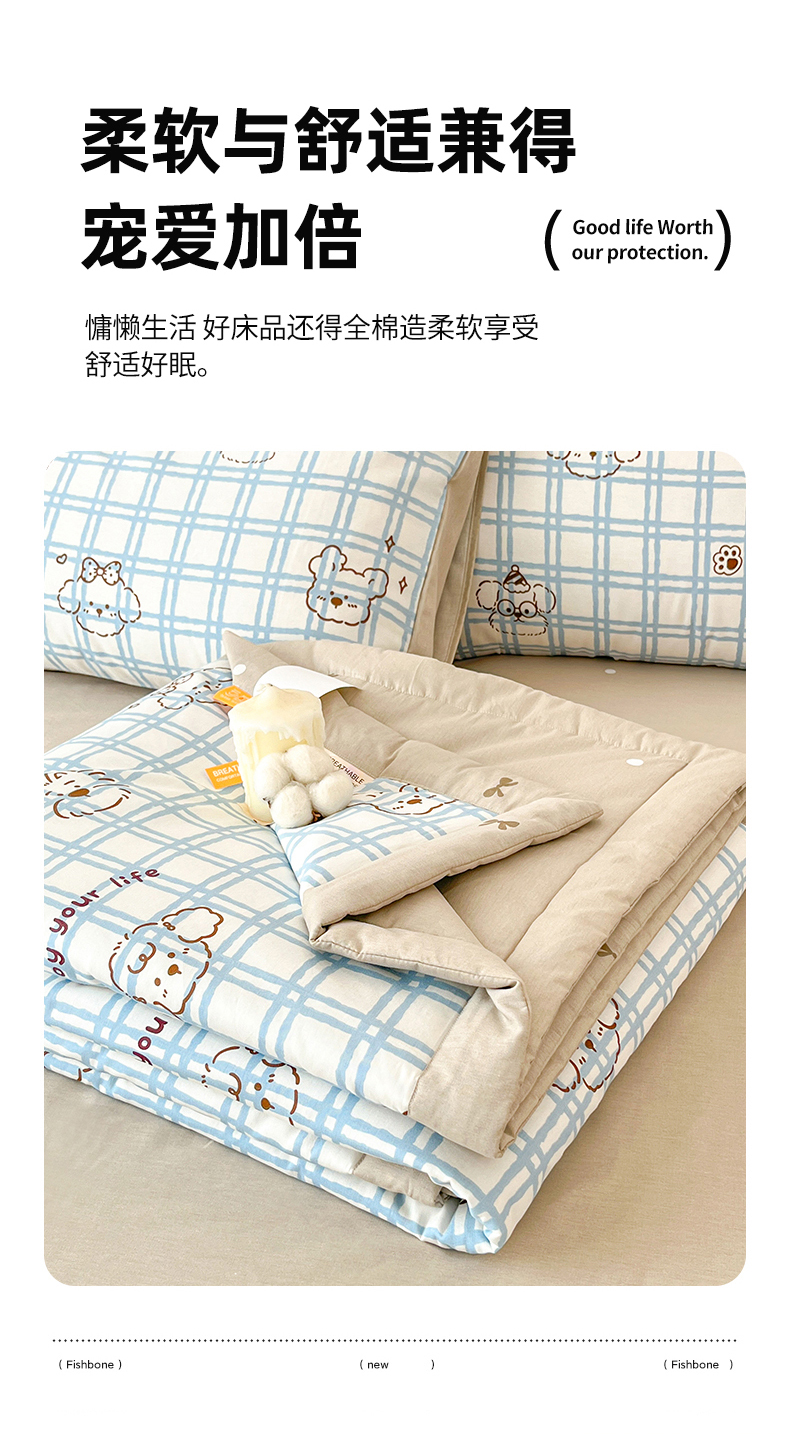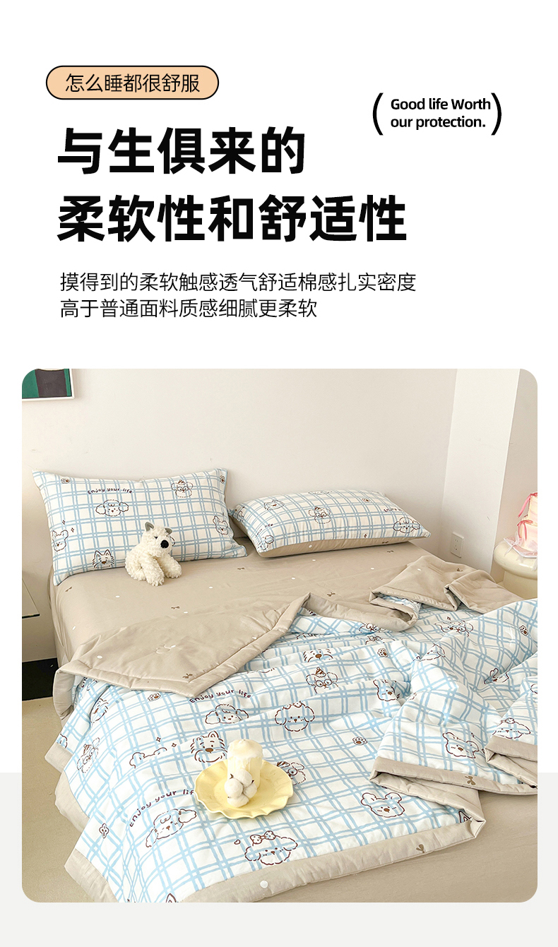 当前位置: 91家纺网 > 商品网购 > 床品套件 > 四件套 > 夏被四件套 > 一加一 2026新款全棉新疆棉花夏被夏凉被空调被四件套-棉语清夏 云朵狗