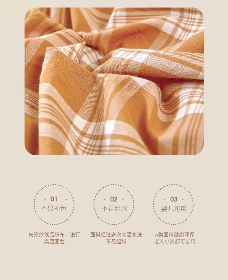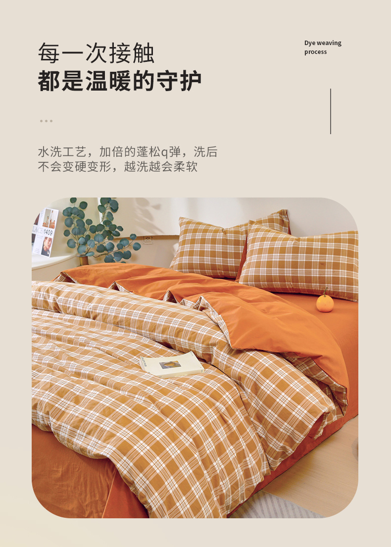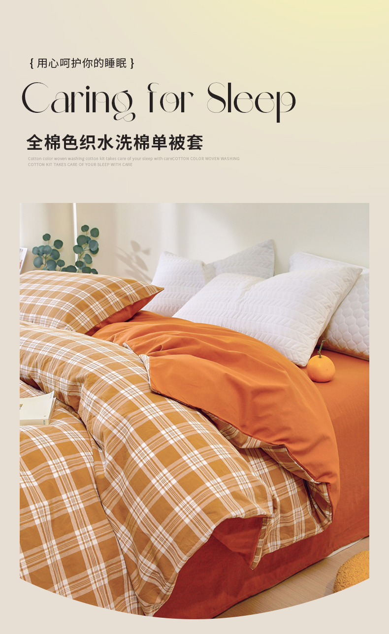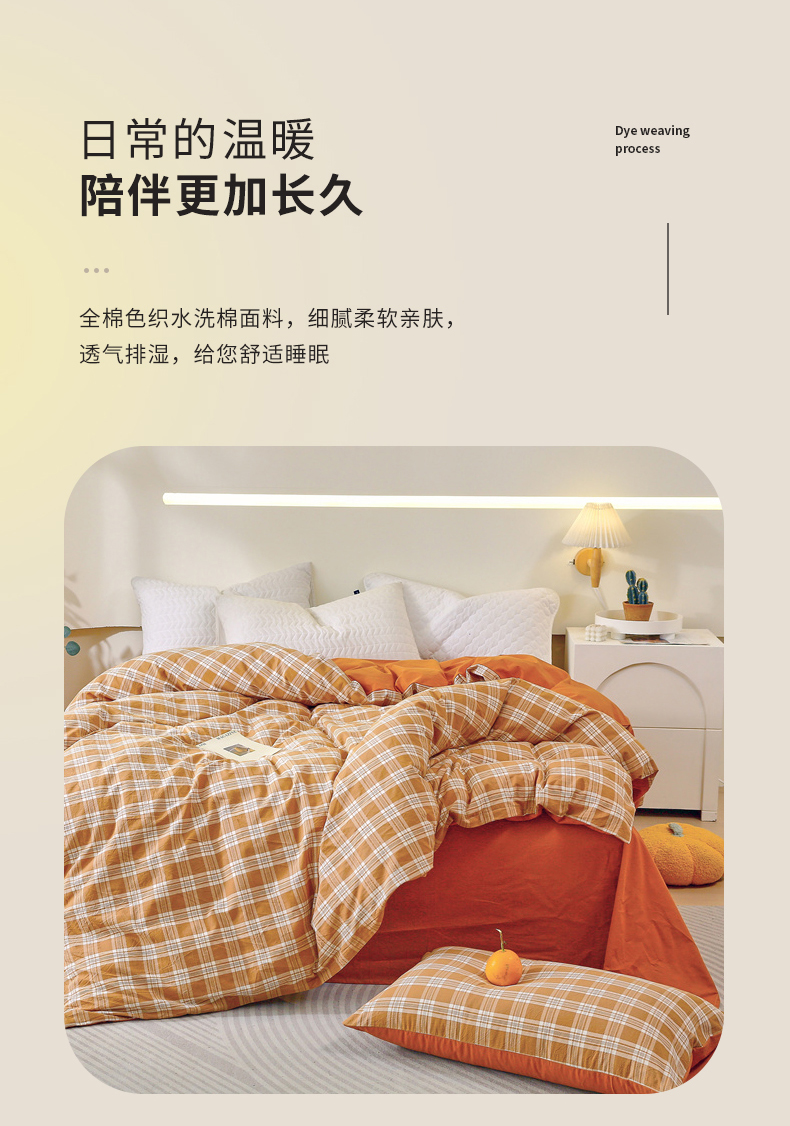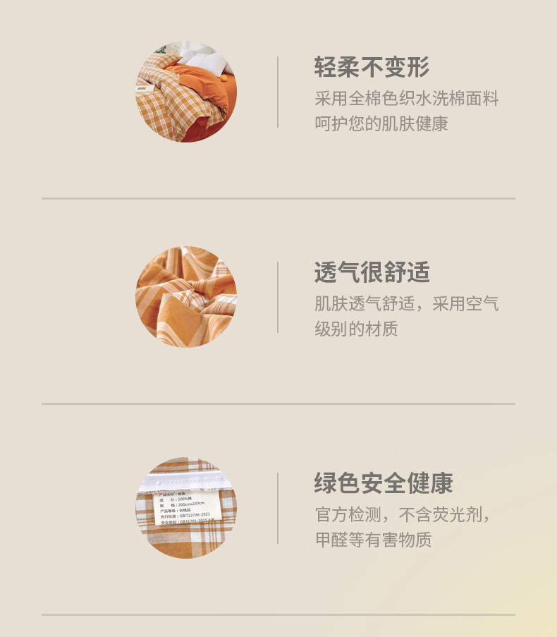 商品名称:春皖家纺 2026新款色织AB版水洗棉三件套四件套单品系列(单被套风格一) 素雅黄格