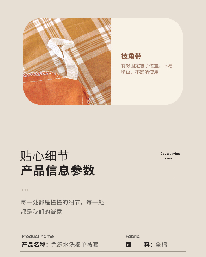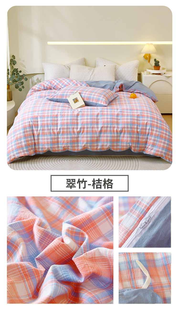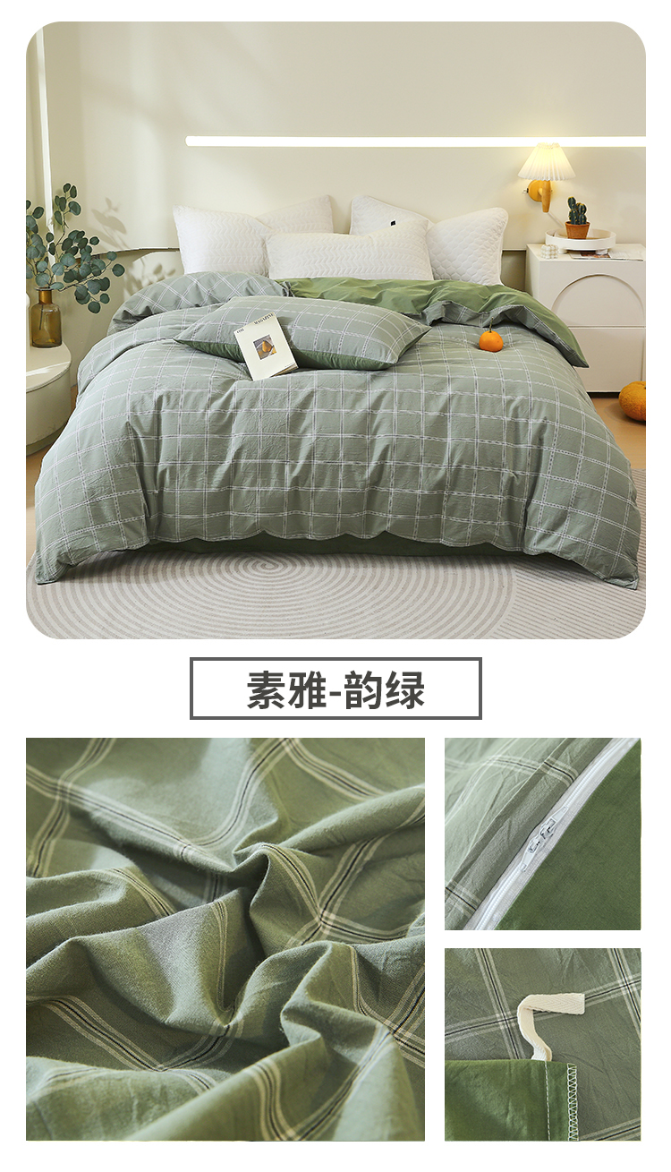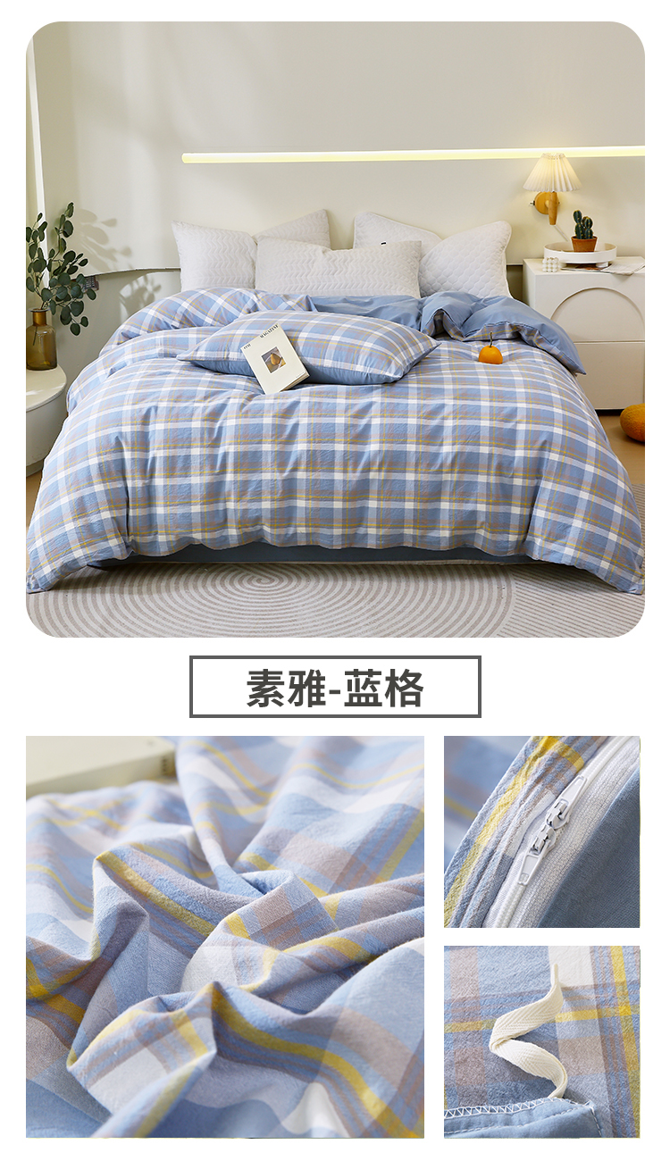 商品名称:春皖家纺 2026新款色织AB版水洗棉三件套四件套单品系列(单被套风格一) 素雅黄格
