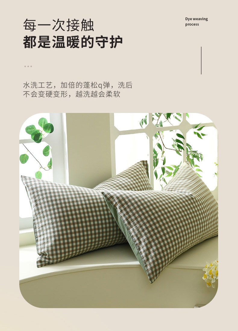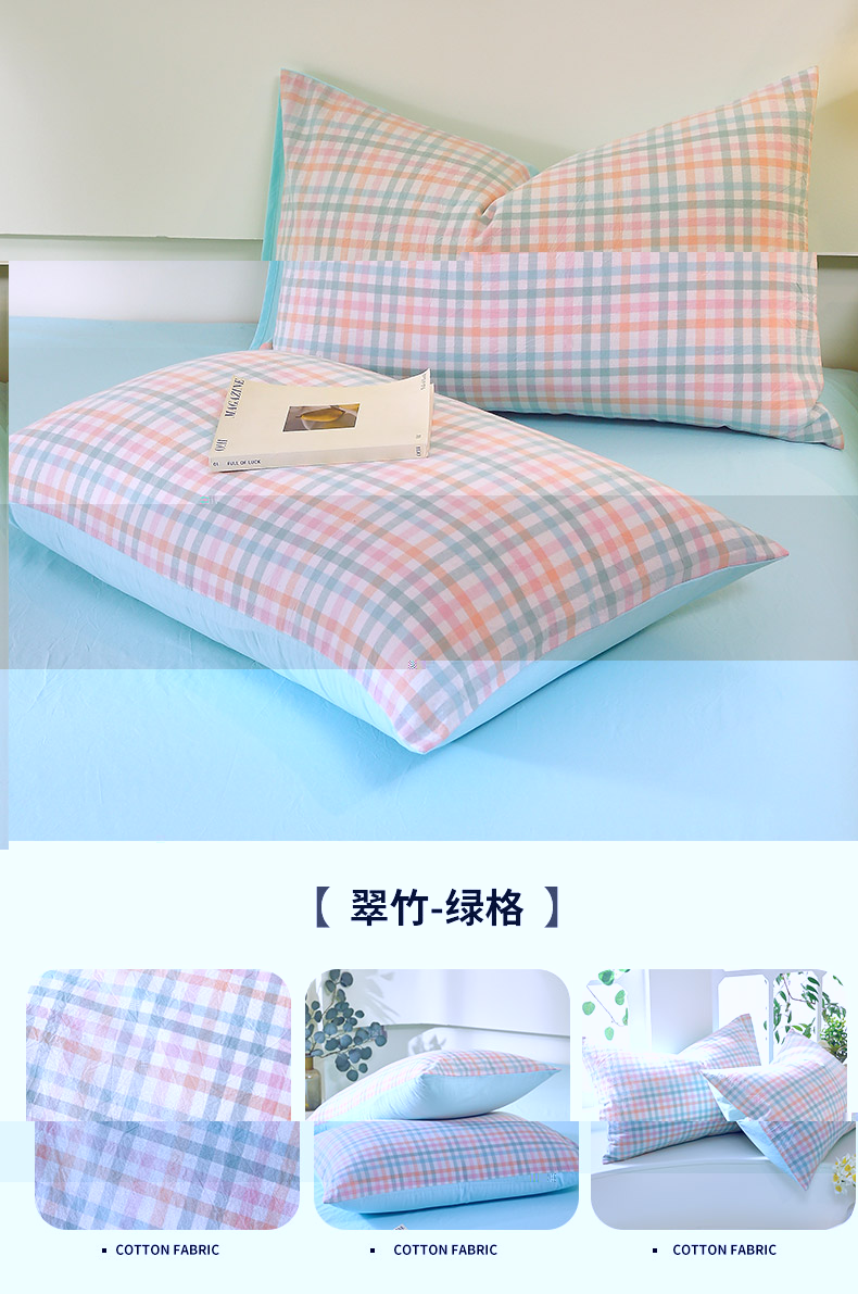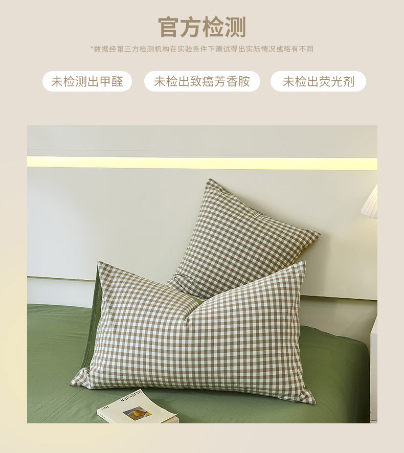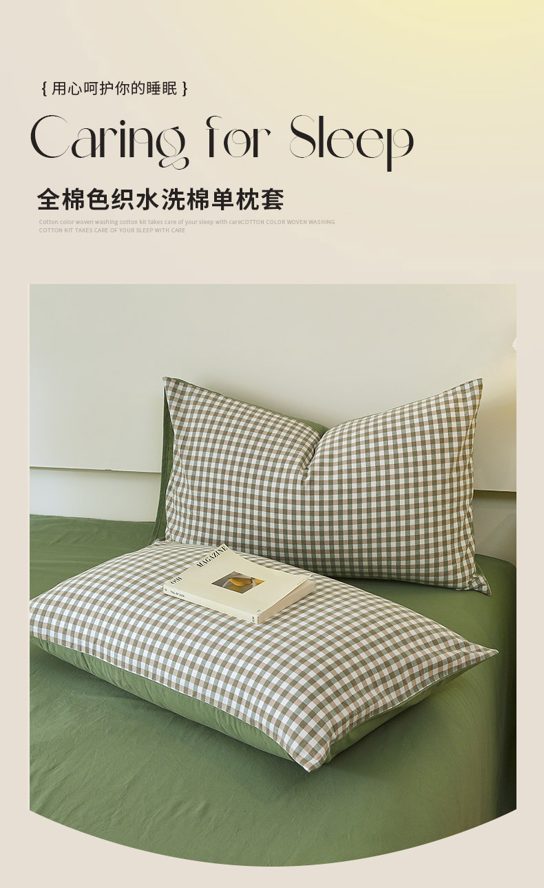 春皖家纺 2026新款色织AB版水洗棉三件套四件套单品系列(单枕套风格一) 素雅-绿格