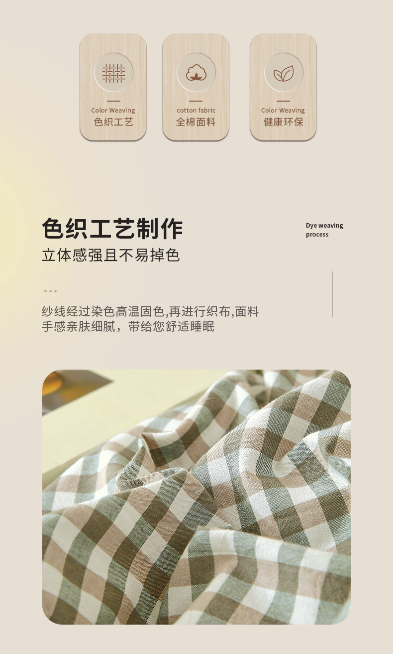 商品名称:春皖家纺 2026新款色织AB版水洗棉三件套四件套单品系列(单枕套风格一) 素雅-绿格