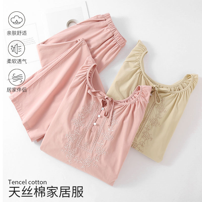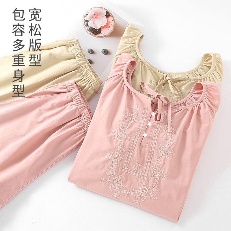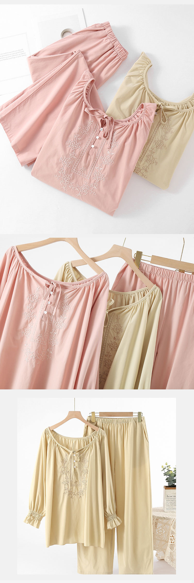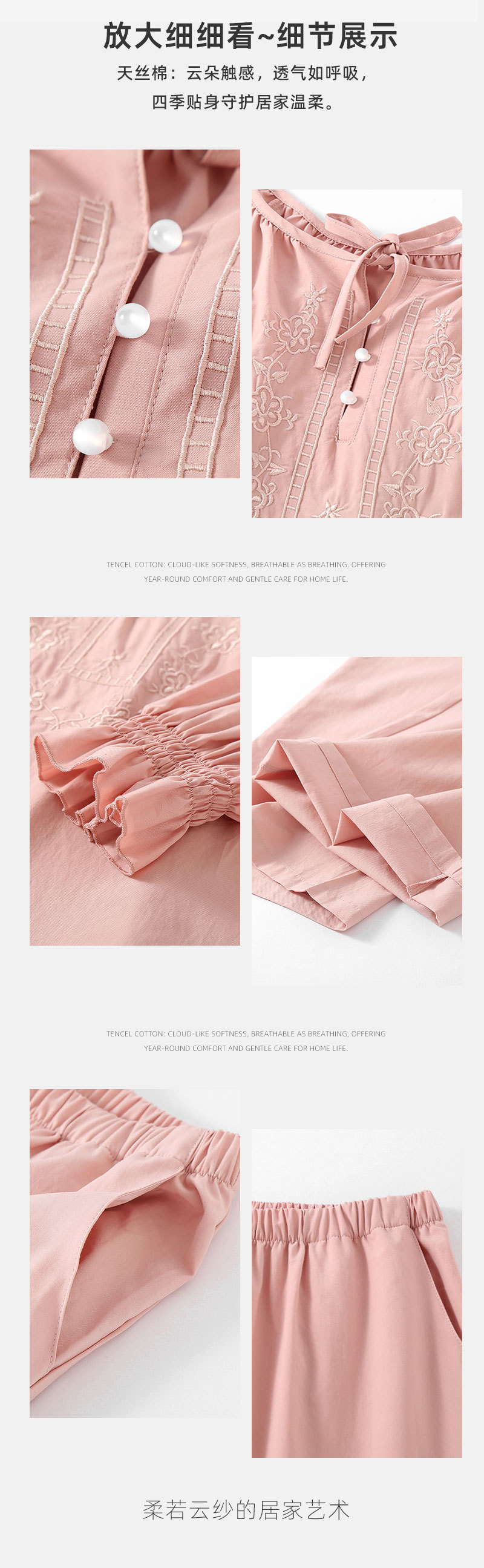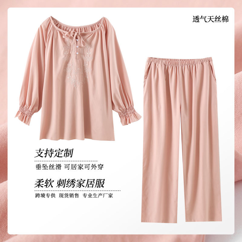 商品名称:(总)洛兰沙家居馆 小香风天丝棉睡衣女春秋薄款国风刺绣长袖宽松大码家居服可外穿