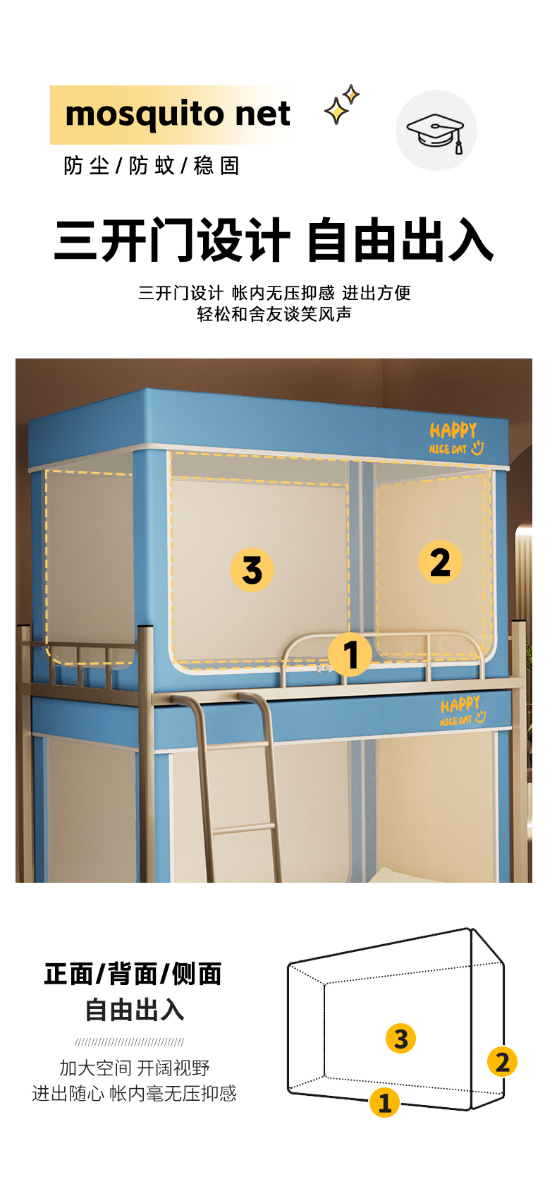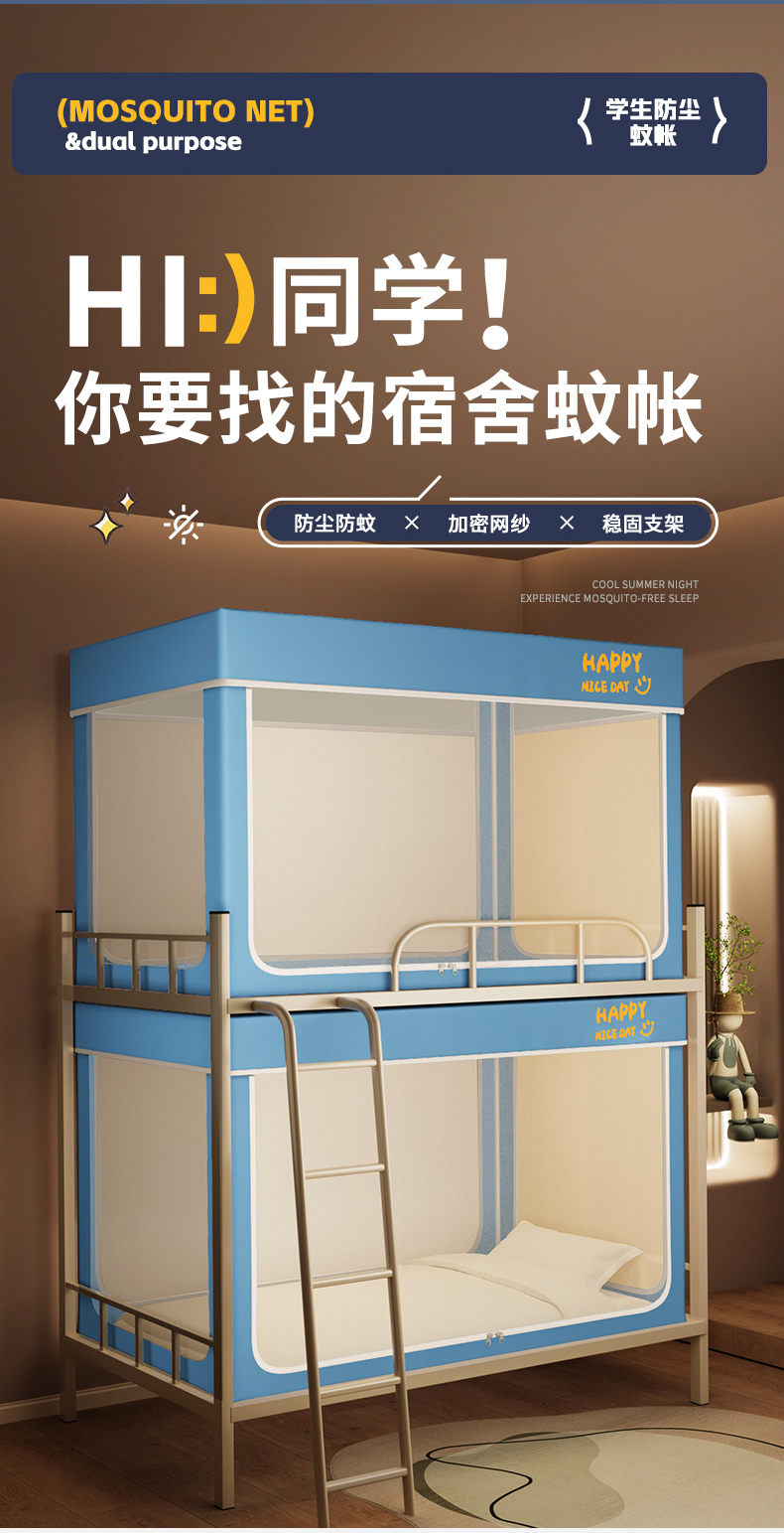 当前位置: 91家纺网 > 商品网购 > 床上用品 > 蚊帐 > 学生蚊帐 > 壹和 2026新款初高中生宿舍专用防蚊防尘蚊帐 蓝色